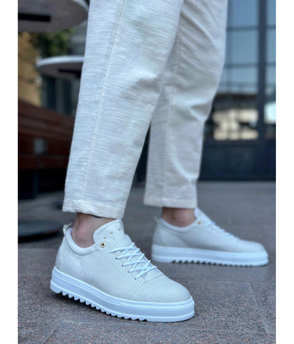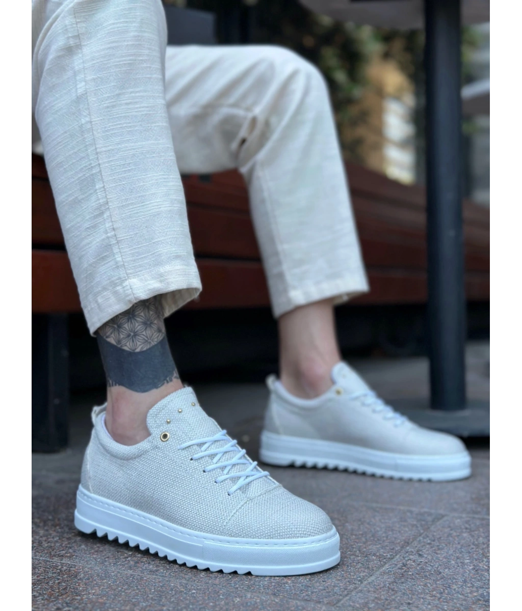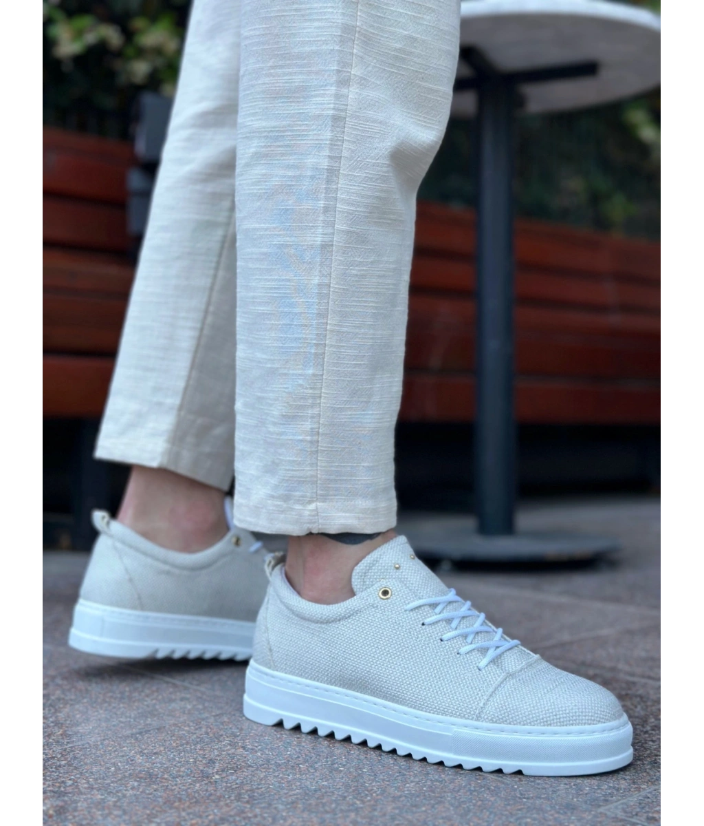 Shoecide Sb0152 Bağcıklı Yüksek Taban Krem Keten Erkek Ayakkabı