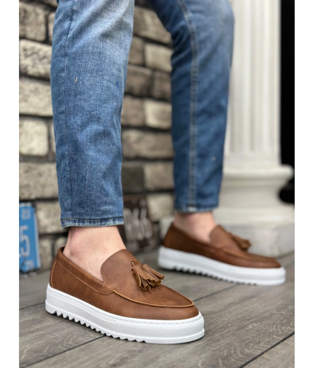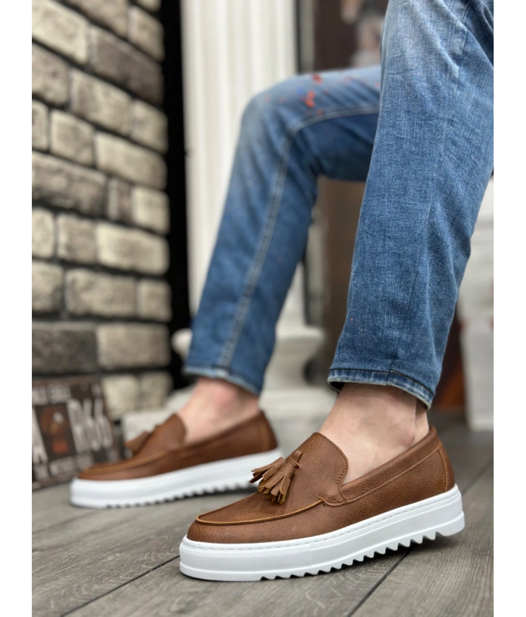 Shoecide Sb0154 Bağcıksız Yüksek Taban Cilt Taba Püsküllü Erkek Ayakkabı