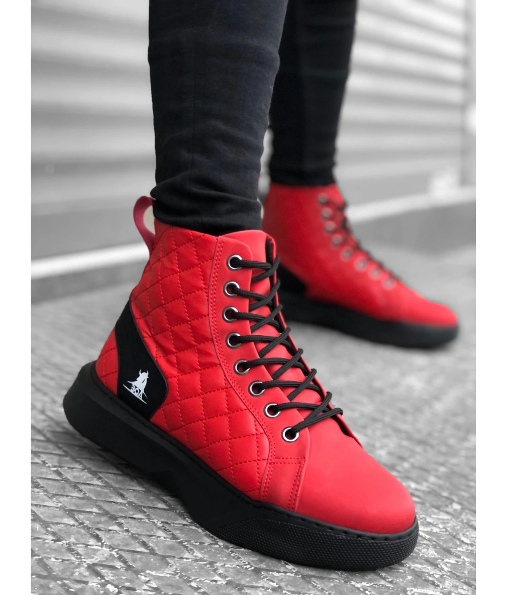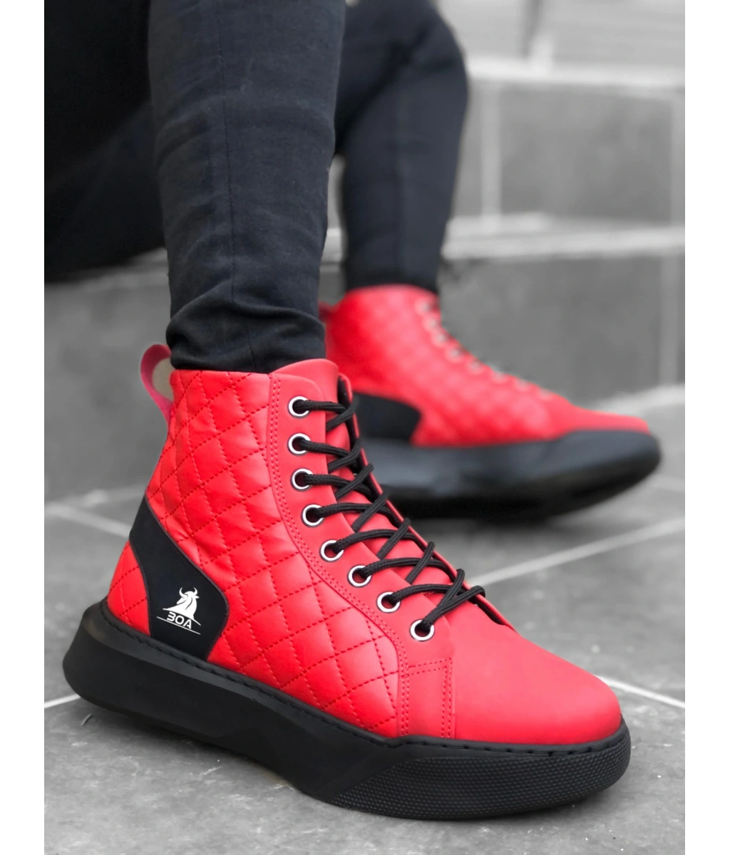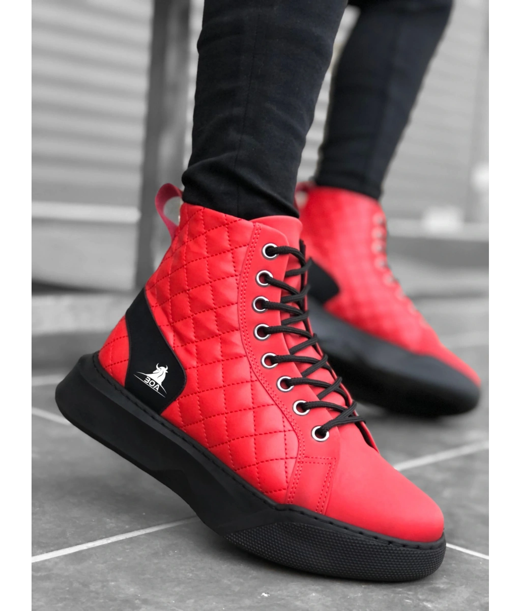 Shoecide Sb0159 Bağcıklı Kırmızı Kapitone Erkek Yüksek Taban Spor Bot