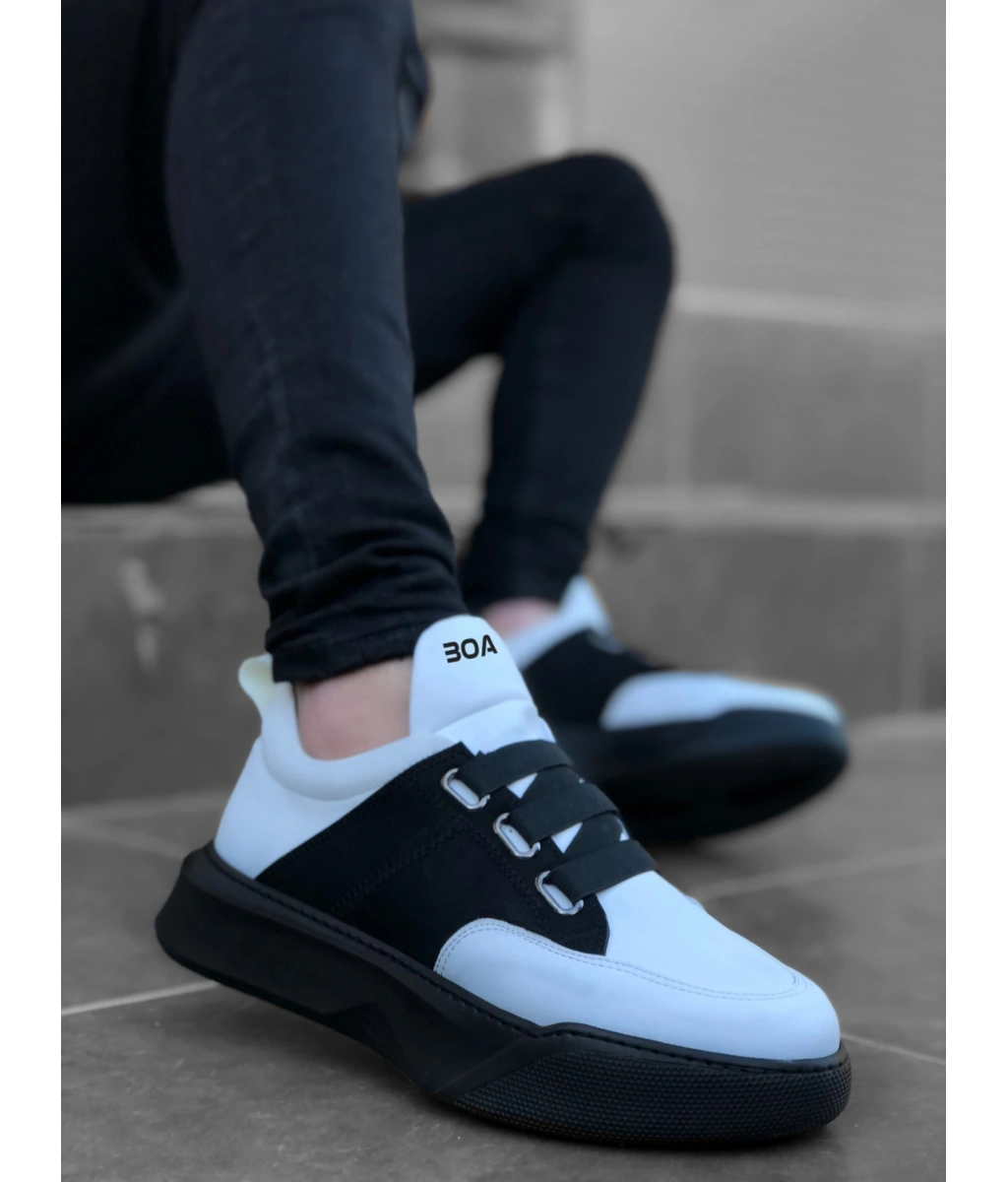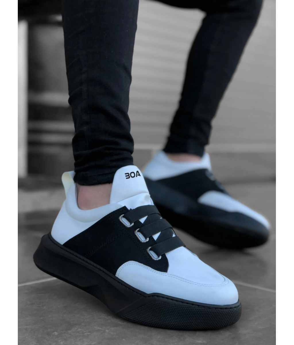 Shoecide Sb0245 Beyaz Akıllı Lastik Bağcık Yüksek Siyah Taban Günlük Erkek Ayakkabı