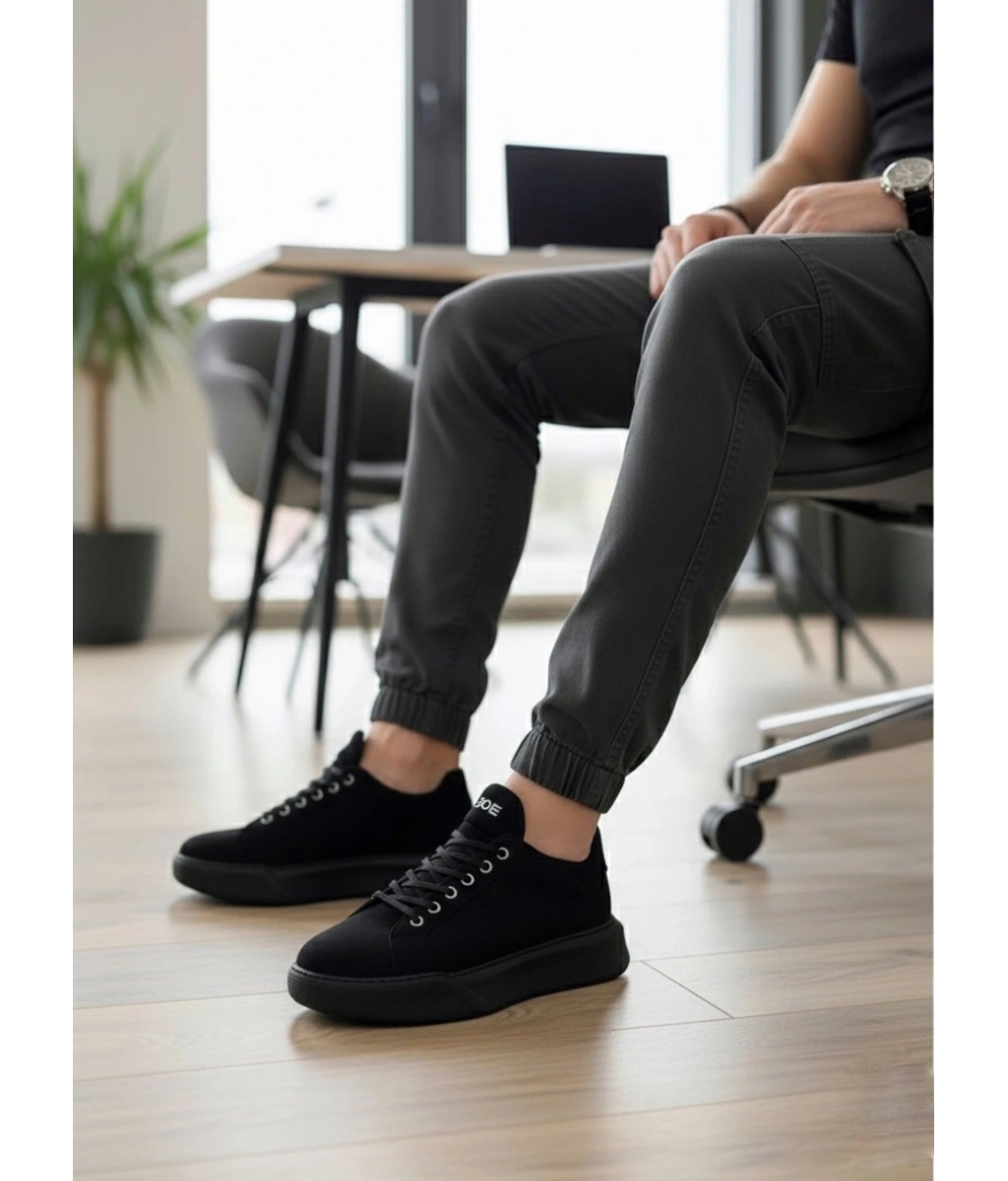 Shoecide Sb0161 Bağcıklı Erkek Yüksek Taban Siyah Spor Ayakkabı