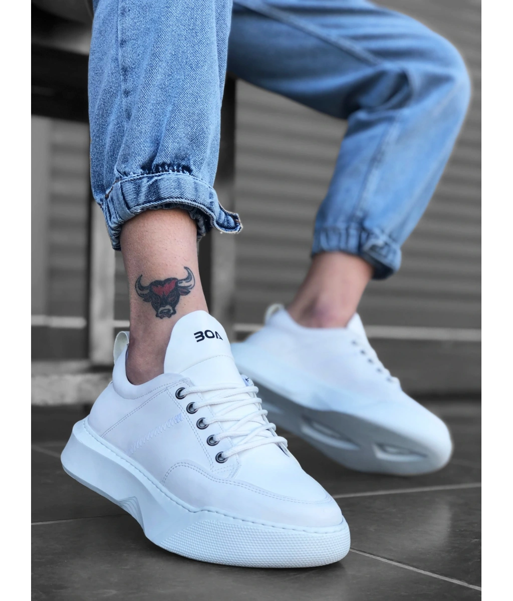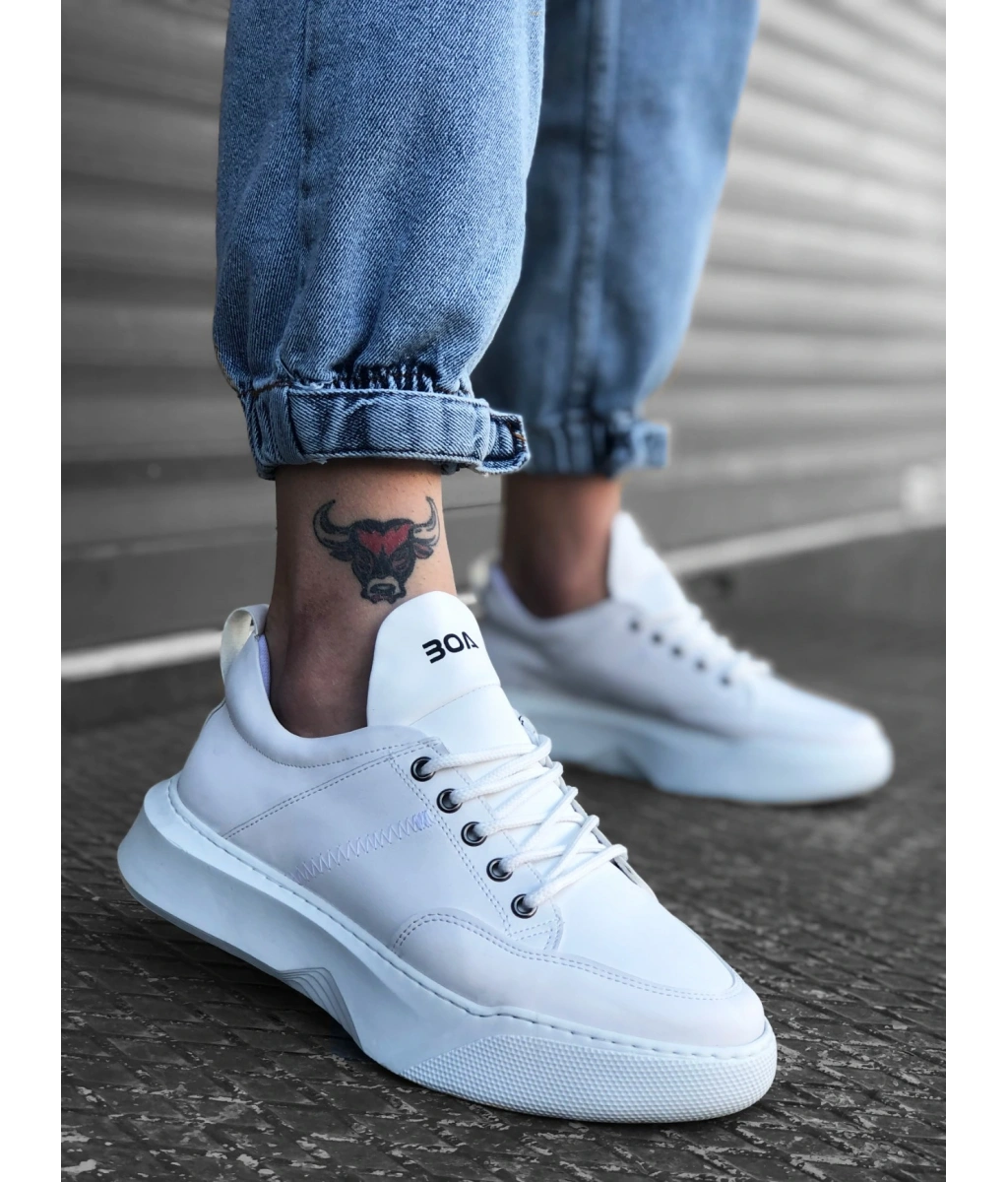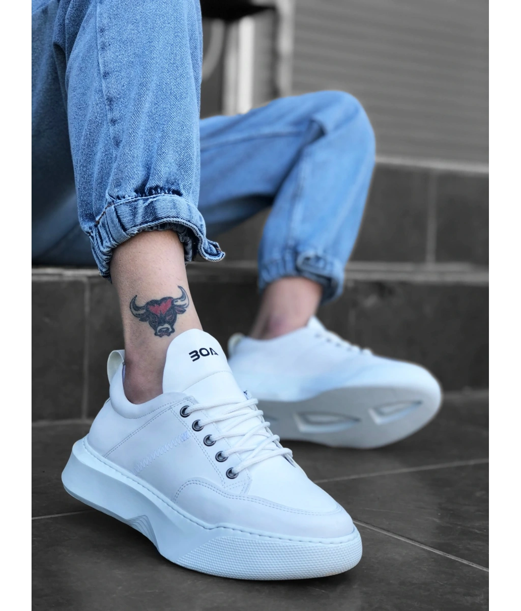 Shoecide Sb0163 Bağcıklı Erkek Yüksek Taban Beyaz Spor Ayakkabı