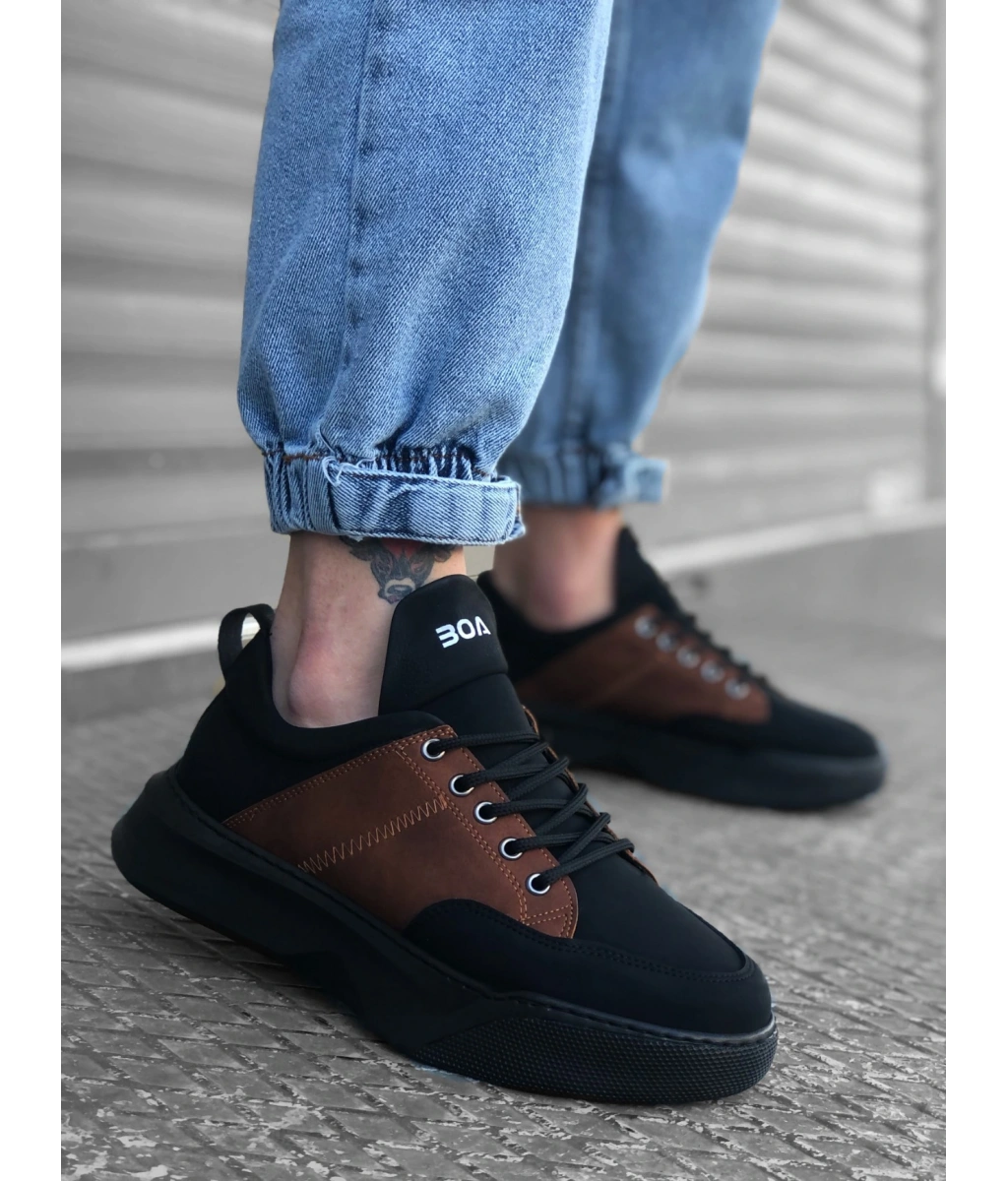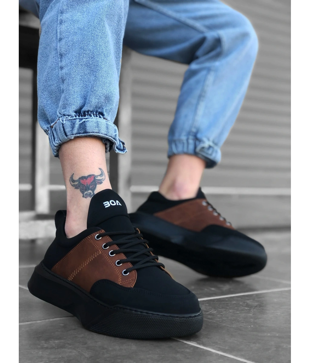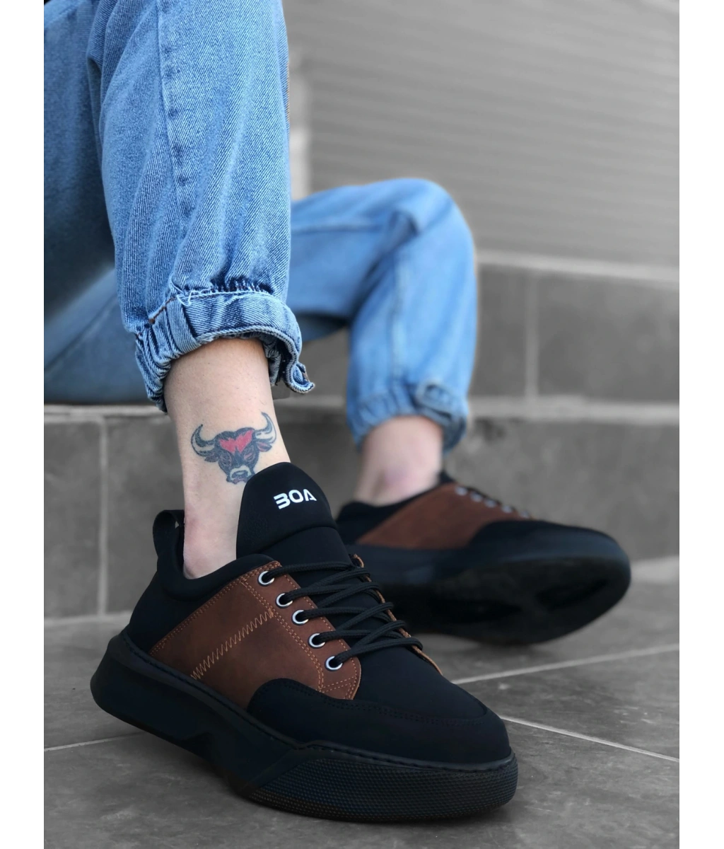 Shoecide Sb0163 Bağcıklı Erkek Yüksek Taban Siyah Taba Spor Ayakkabı