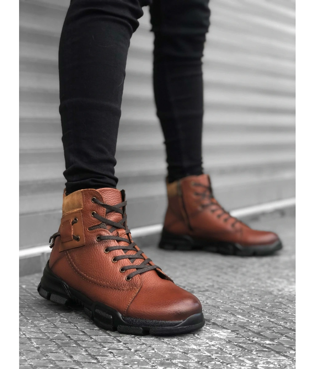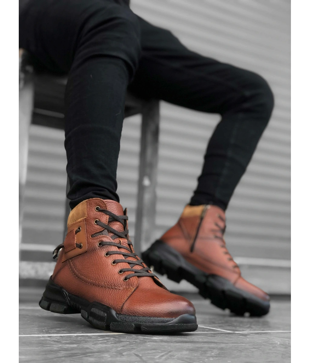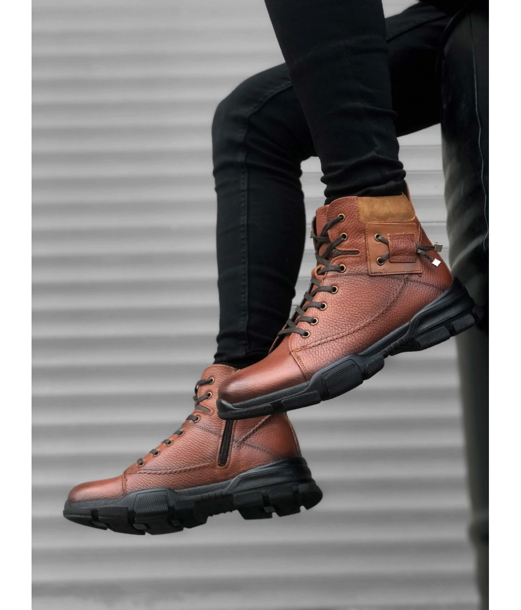 Shoecide Sb0184 İçi Dışı Hakiki Deri Taba Erkek Fermuarlı Yarım Bot
