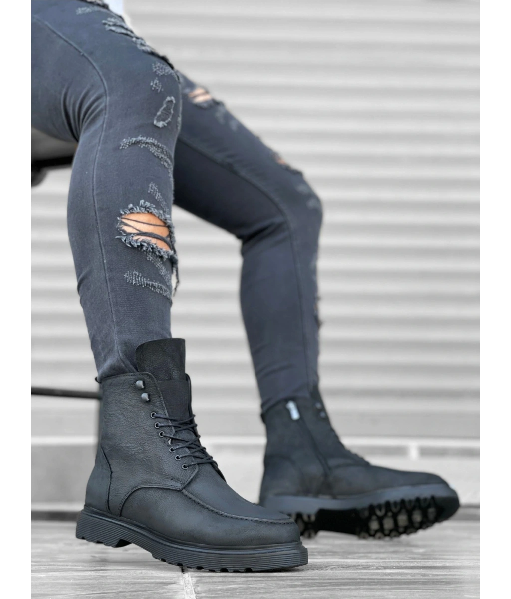 Shoecide Wg07 Kömür Renk Uzun Bağcıklı Bot