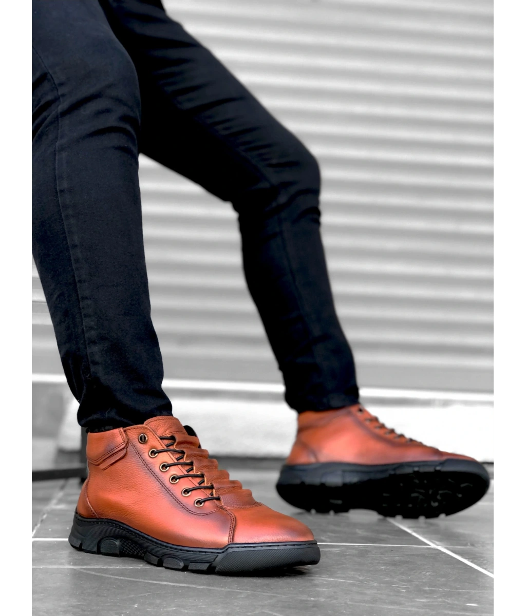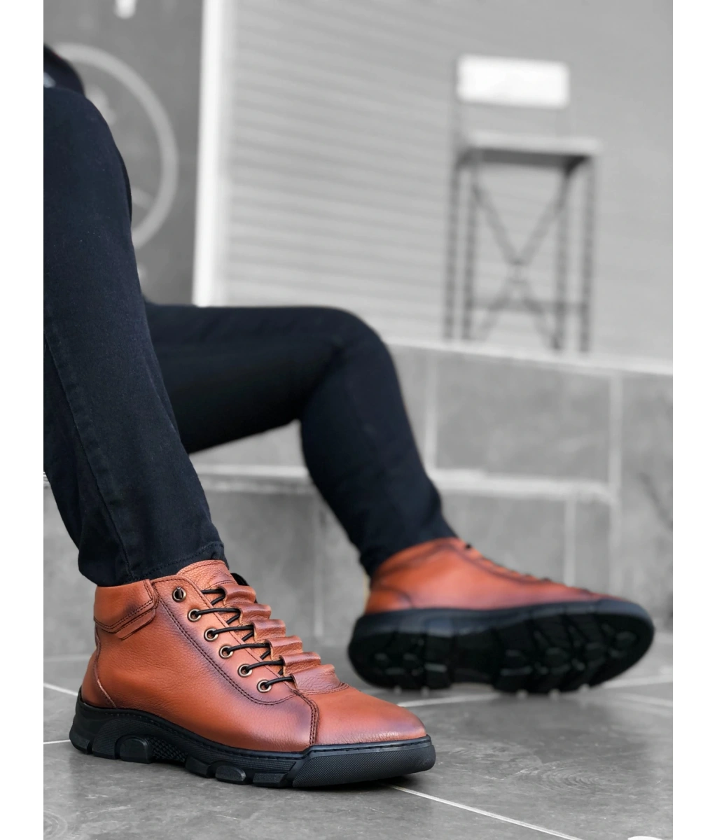 Shoecide Sb0213 Gizli Bağcıklı Hakiki Deri Taba Erkek Yarım Bilek Bot