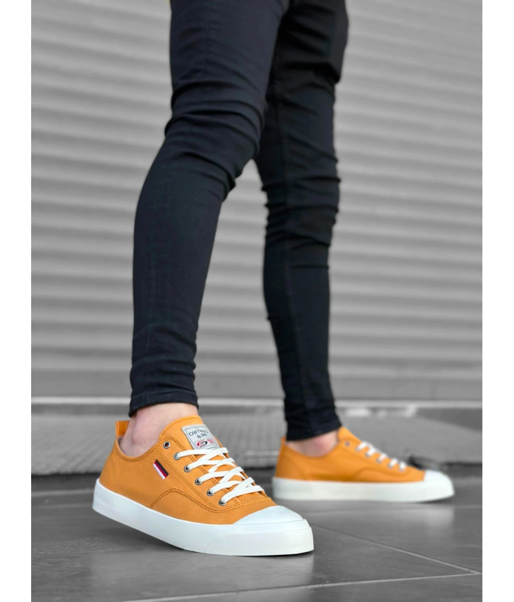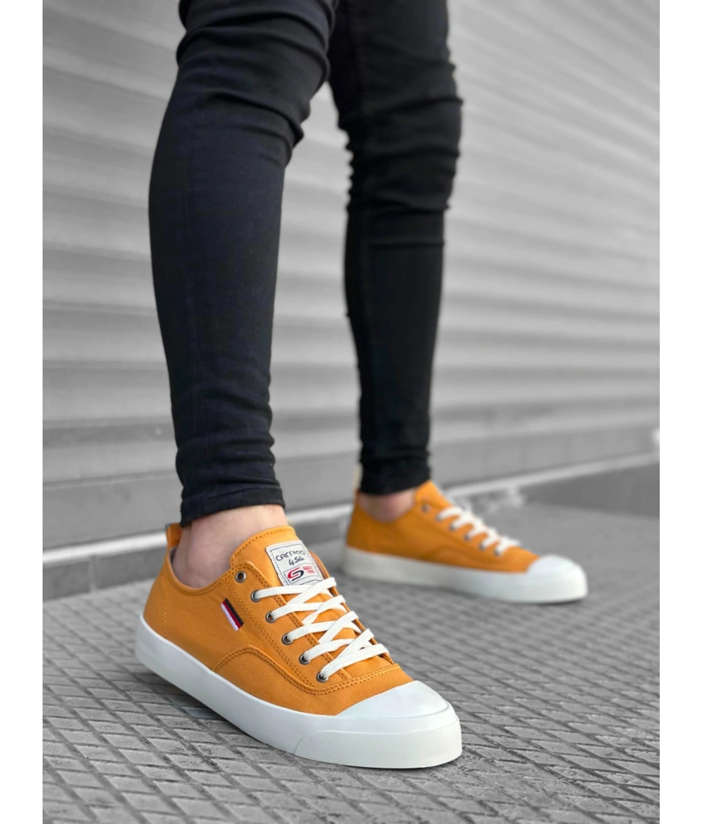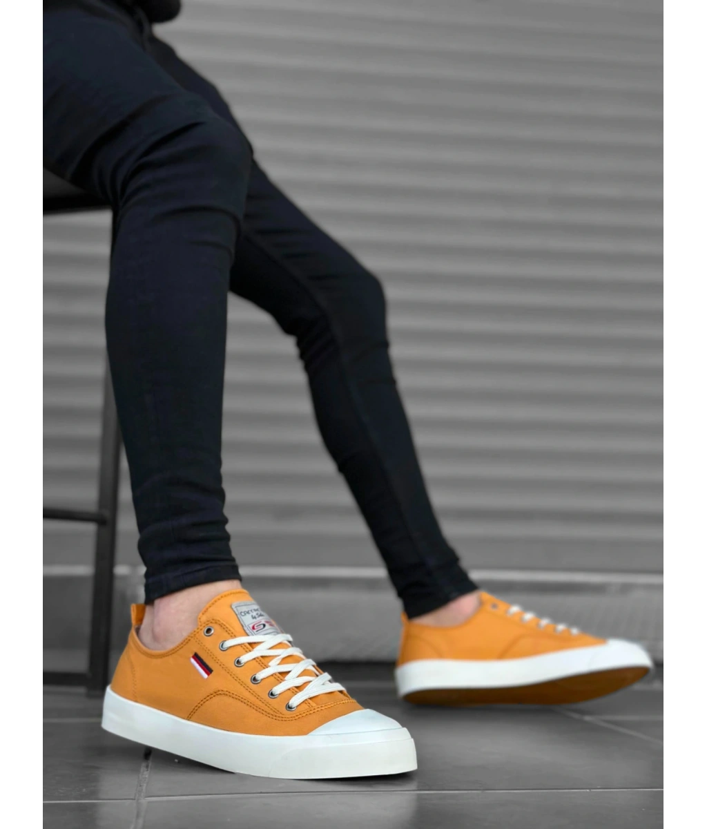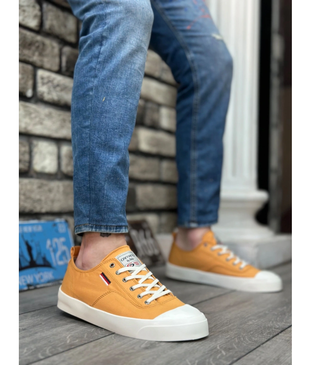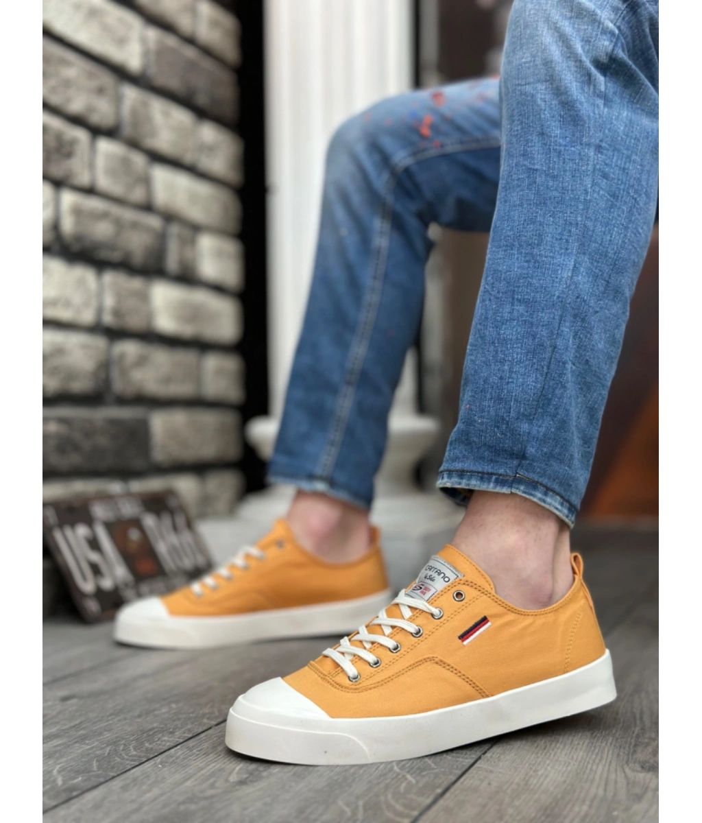 Shoecide Sb0223 Boa Rahat Düz Taban Keten Bağcıklı Sarı Günlük Erkek Ayakkabı