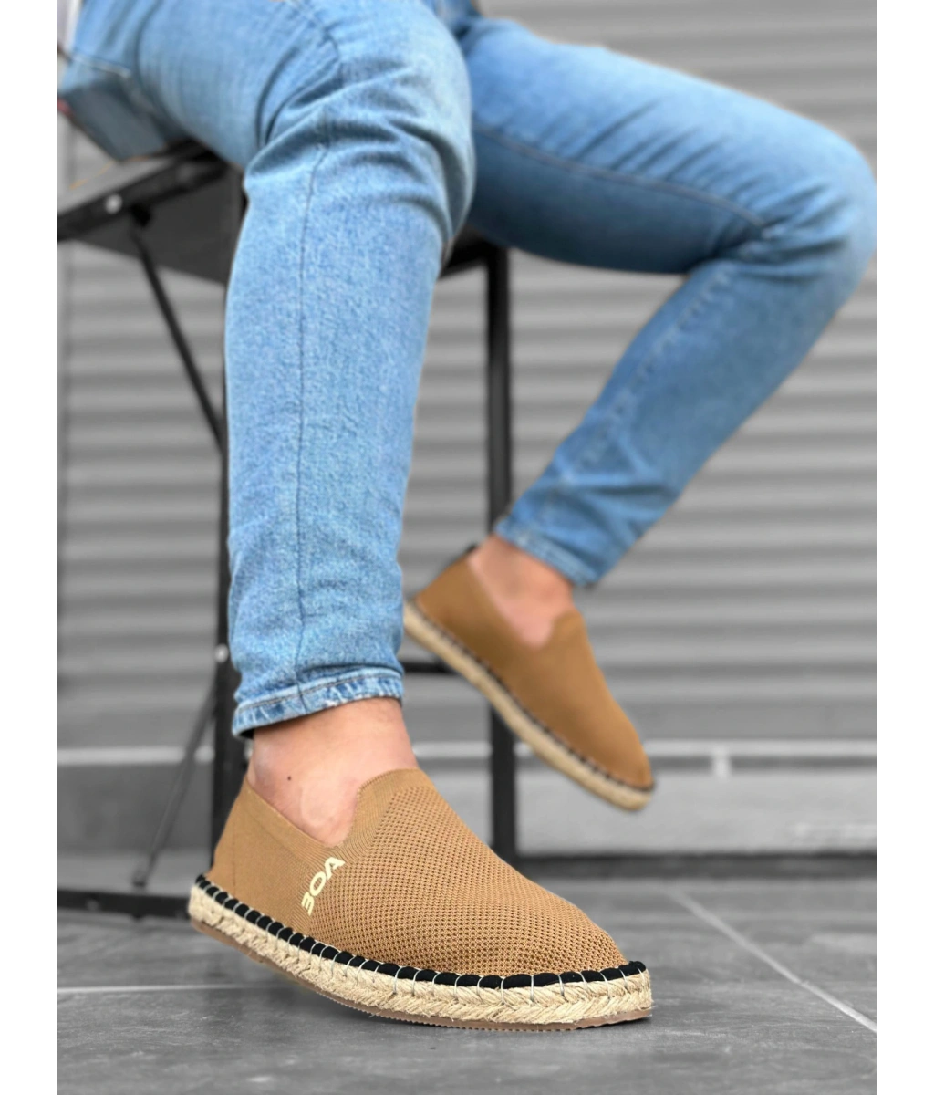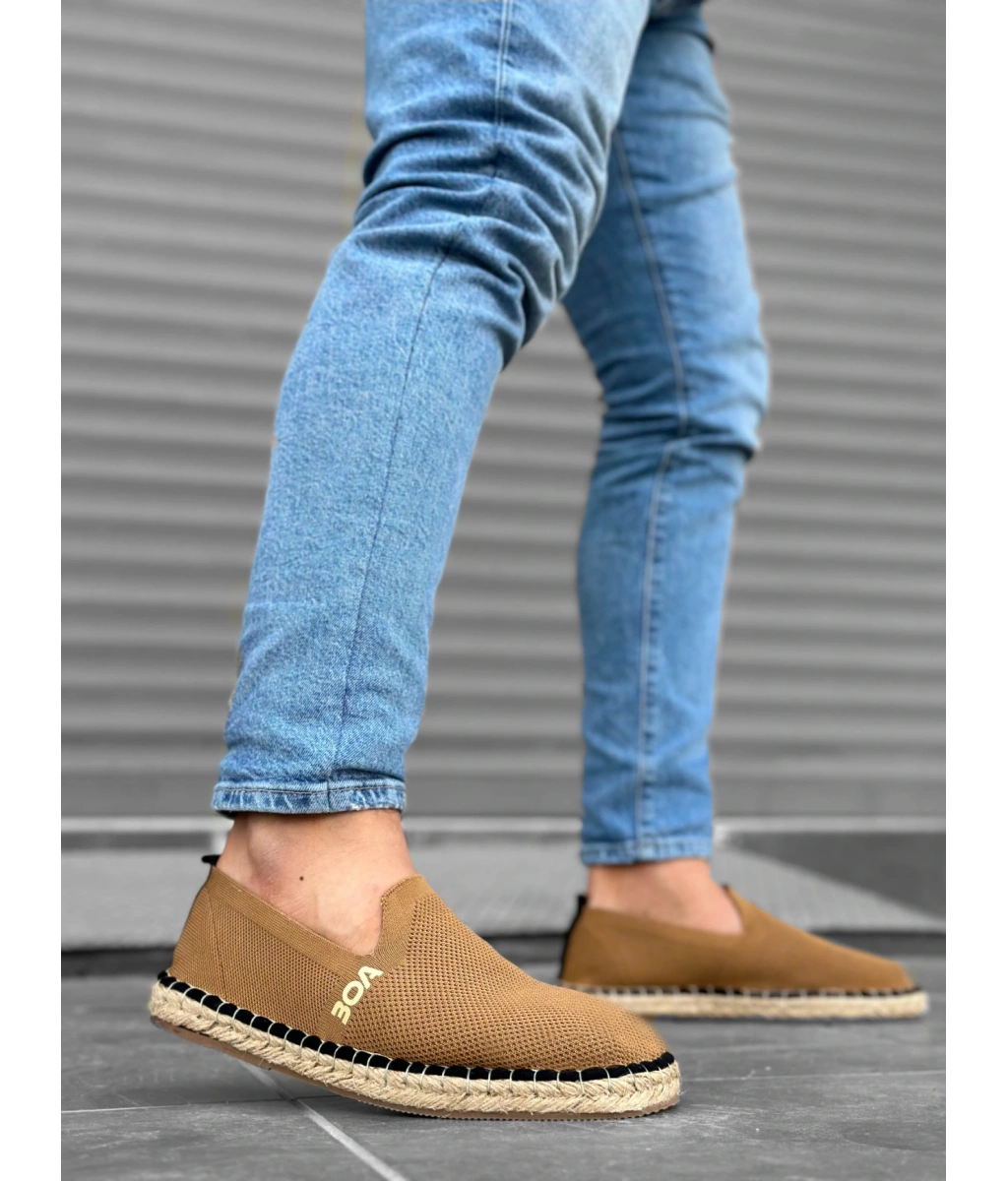 Shoecide Sb0224 Boa Rahat Düz Taban Espadril Örme Triko Taba Günlük Erkek Ayakkabı