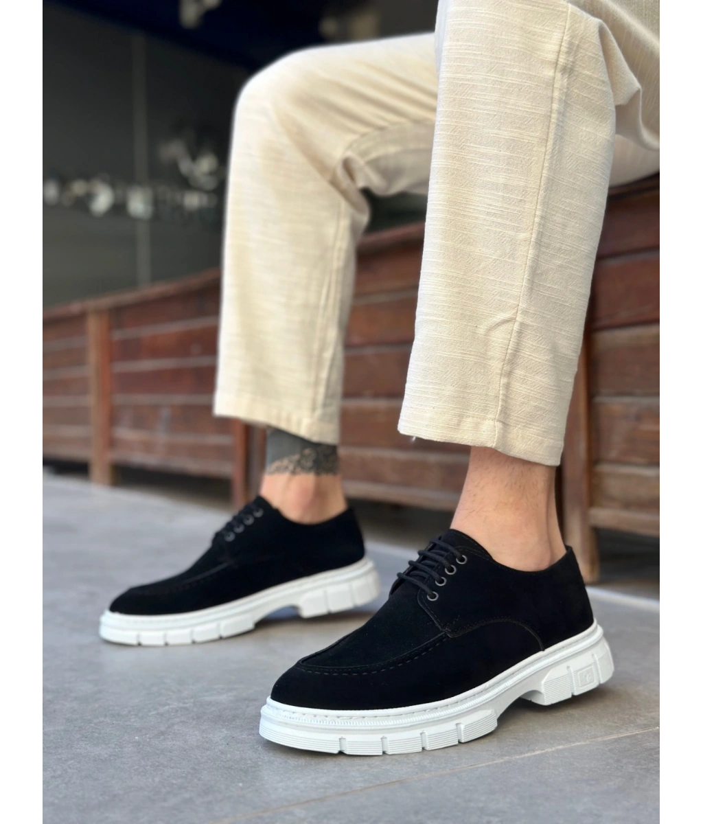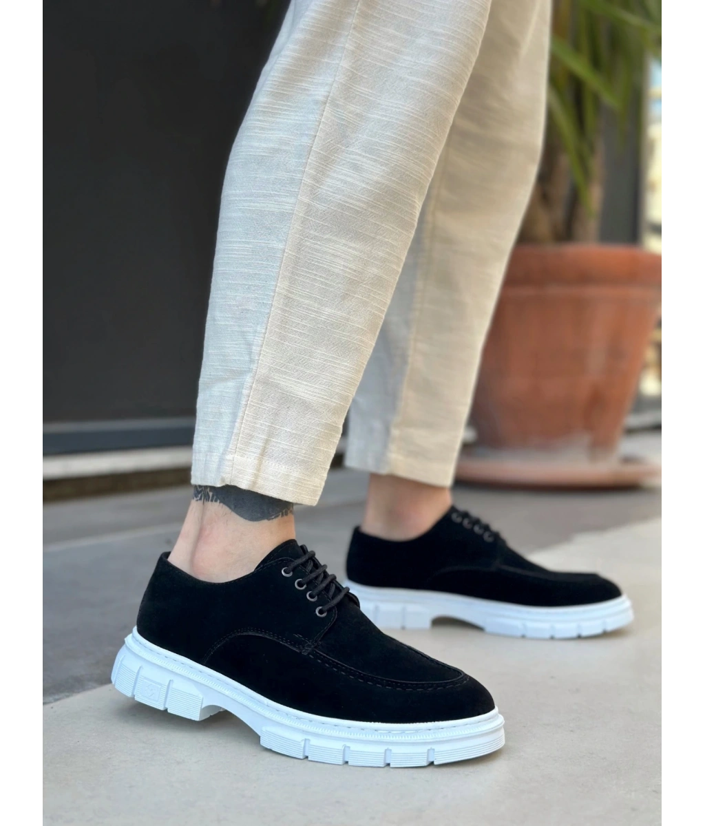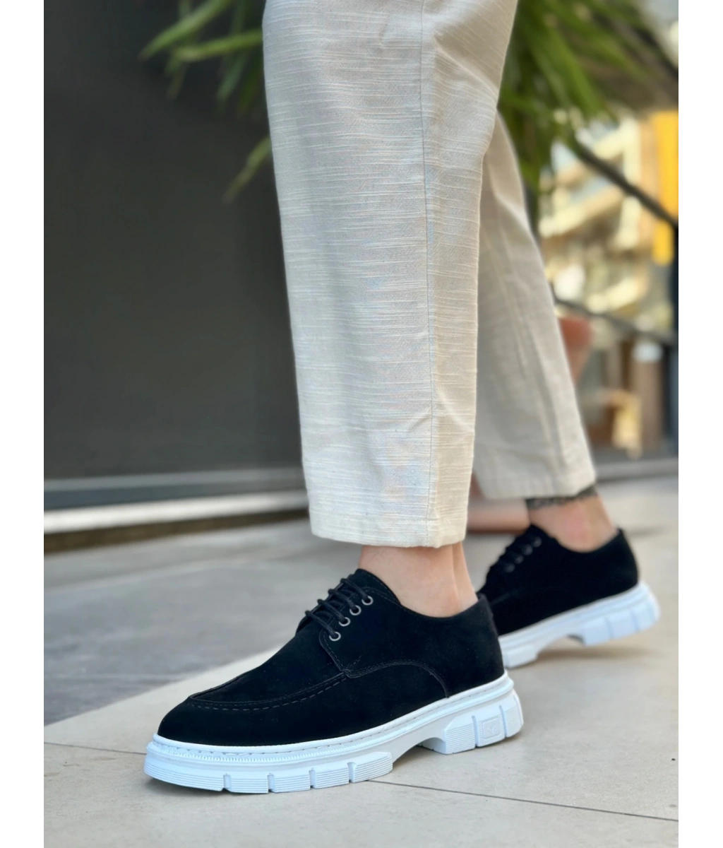 Shoecide Sb0237 Bağcıklı Klasik Yüksek Taban Siyah Süet Casual Erkek Ayakkabı