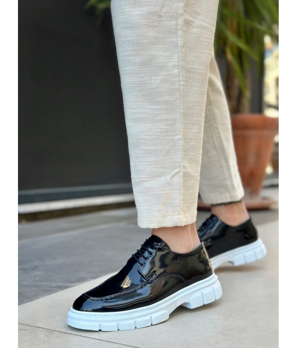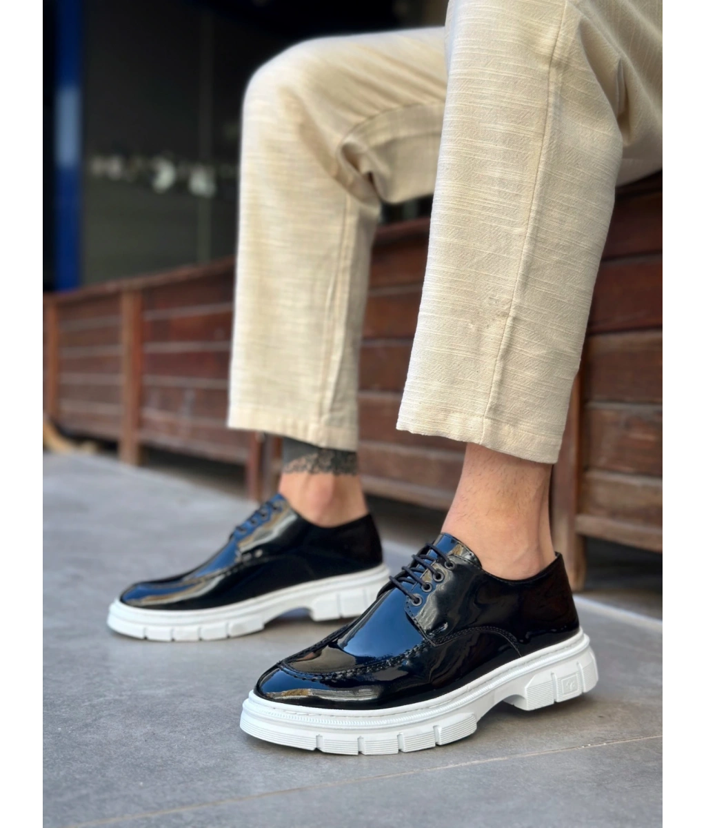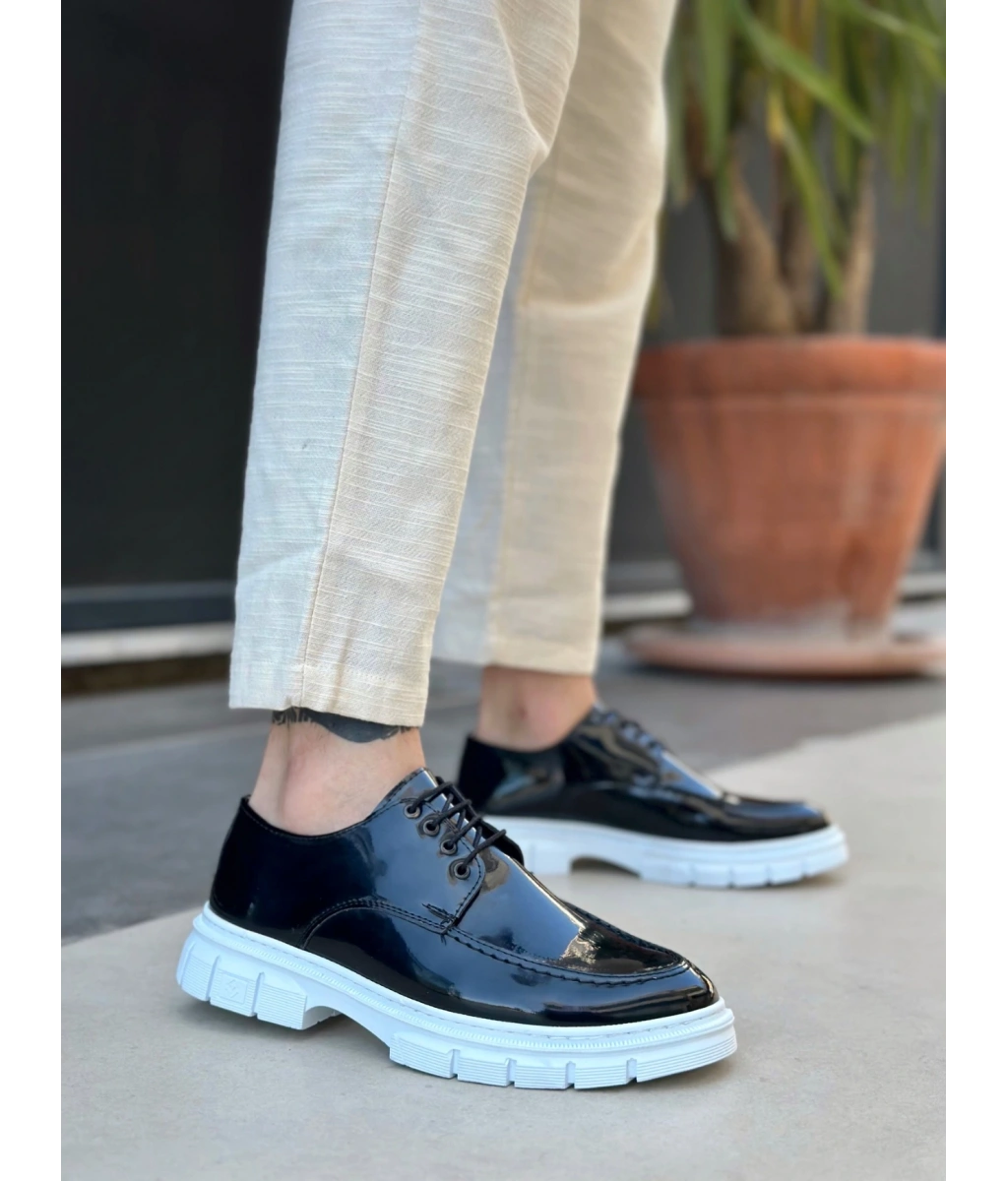 Shoecide Sb0237 Bağcıklı Rugan Klasik Yüksek Taban Siyah Casual Erkek Ayakkabı