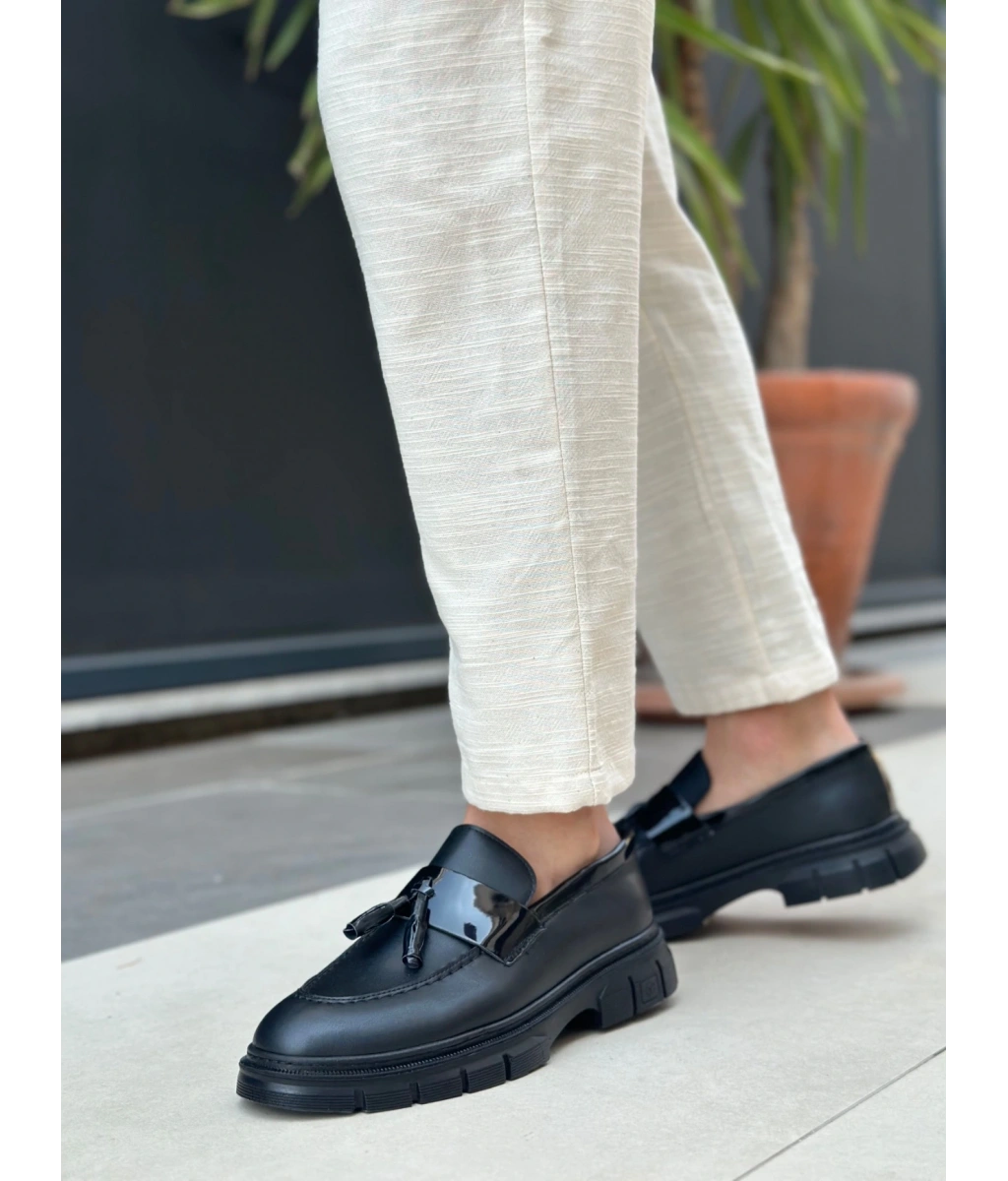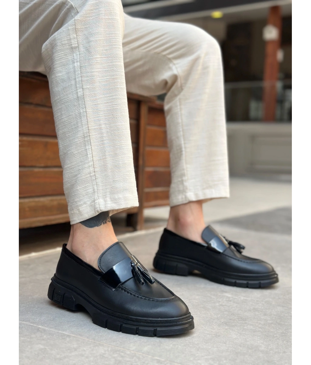 Shoecide Sb0240 Yüksek Taban Klasik Parlak Püsküllü Siyah Taban Erkek Ayakkabı