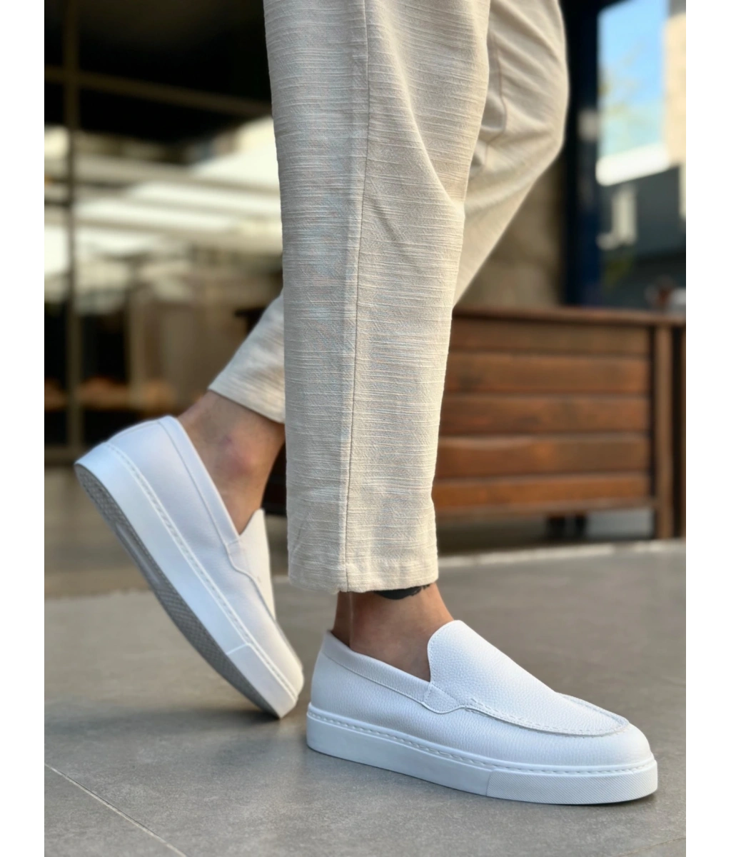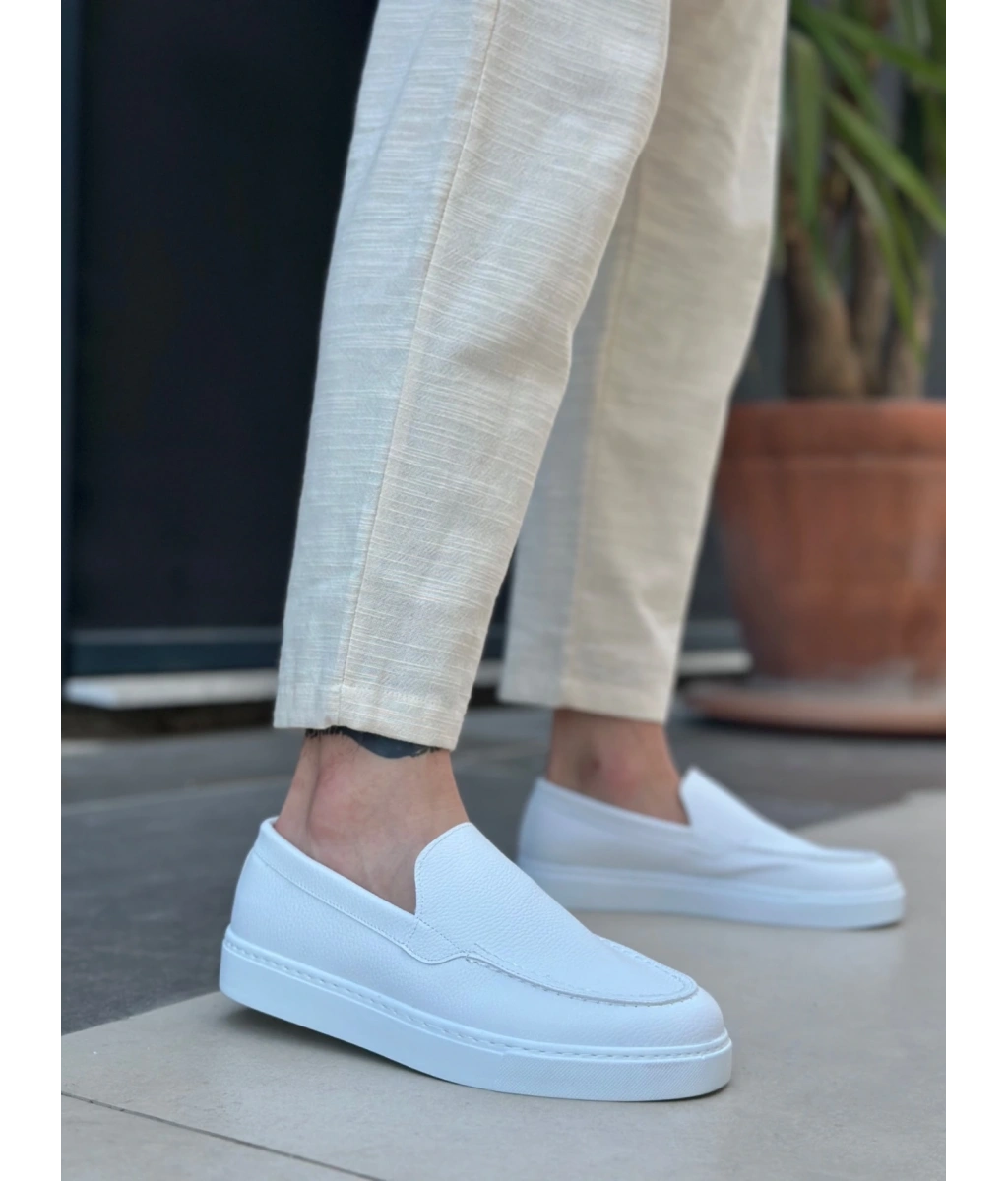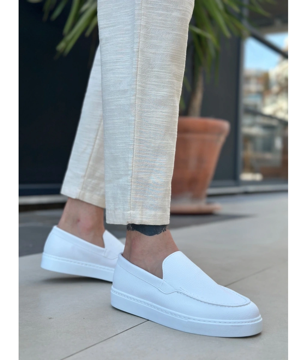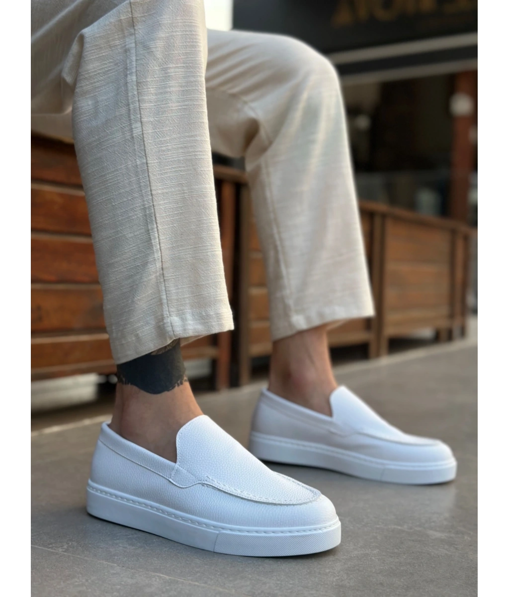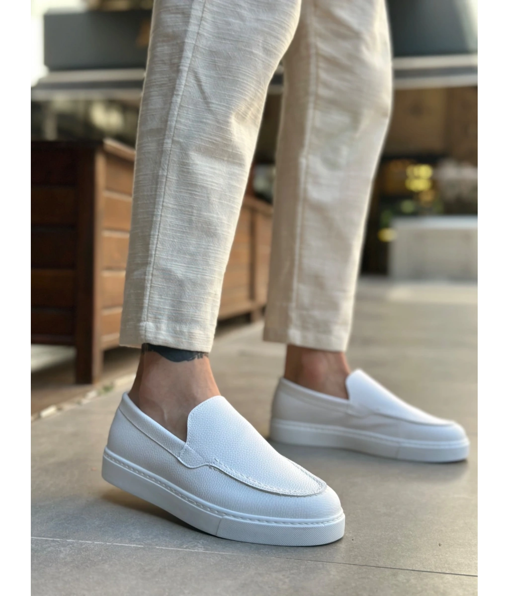 Shoecide Sb0241 Bağcıksız Yüksek Taban Beyaz Cilt Erkek Ayakkabı