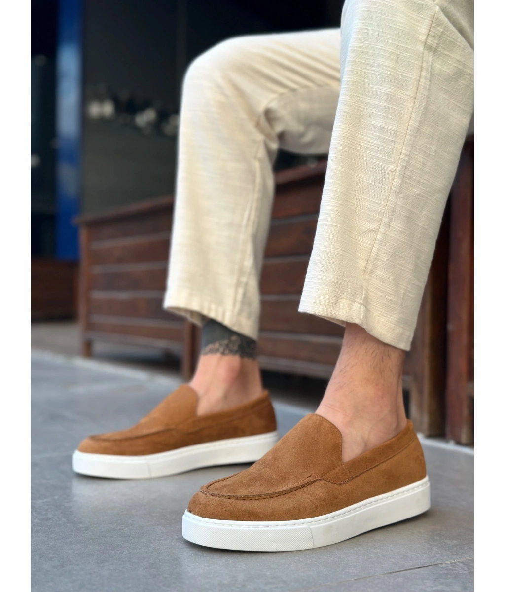 Shoecide Sb0241 Bağcıksız Yüksek Taban Taba Süet Erkek Ayakkabı