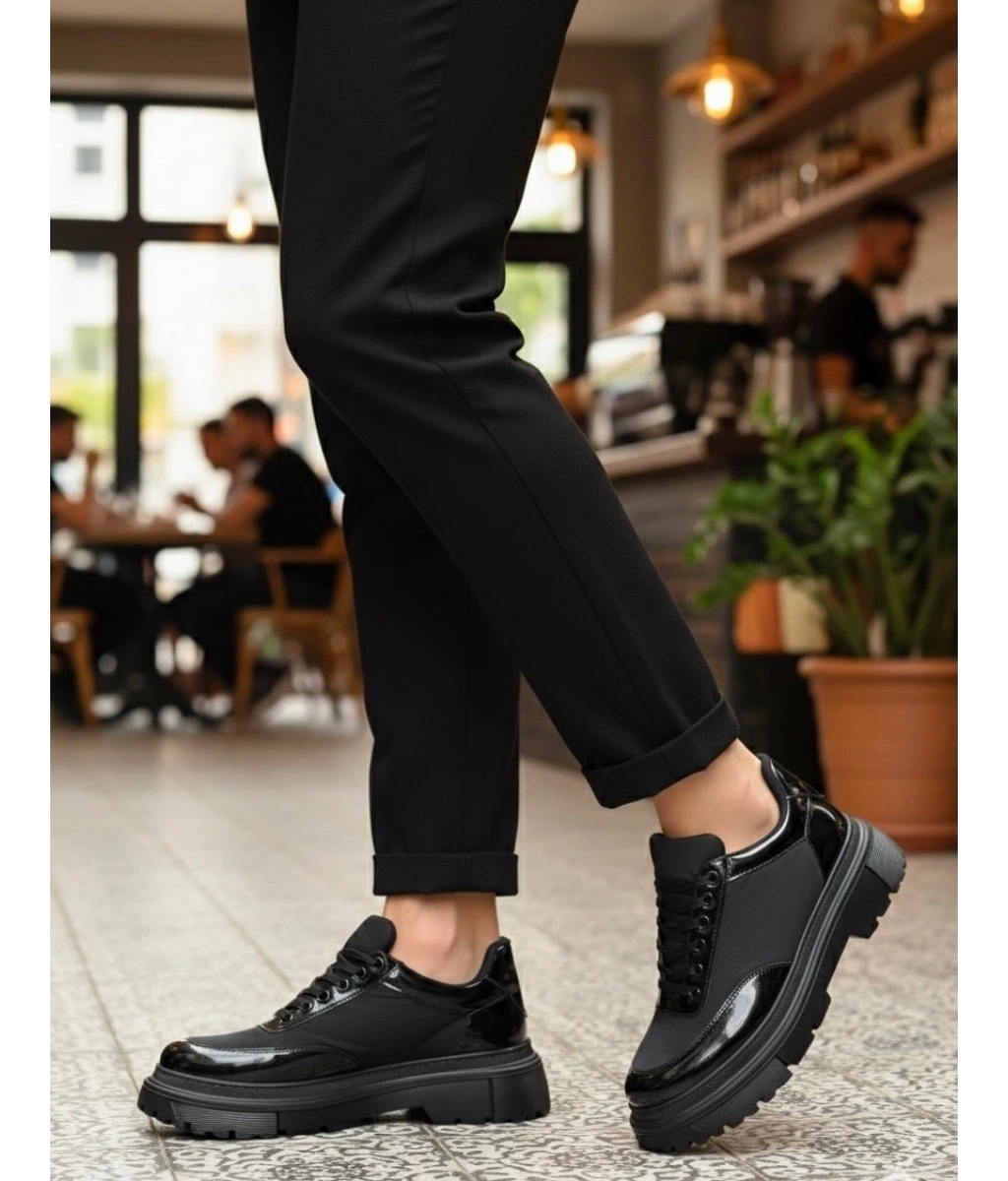 Shoecide Sb0243 Bağcıklı Rugan Paraşüt Detaylı Yüksek Siyah Taban Erkek Ayakkabı