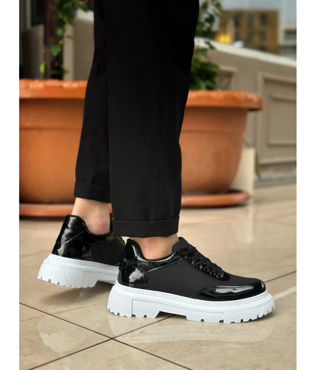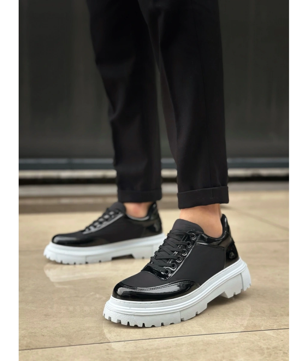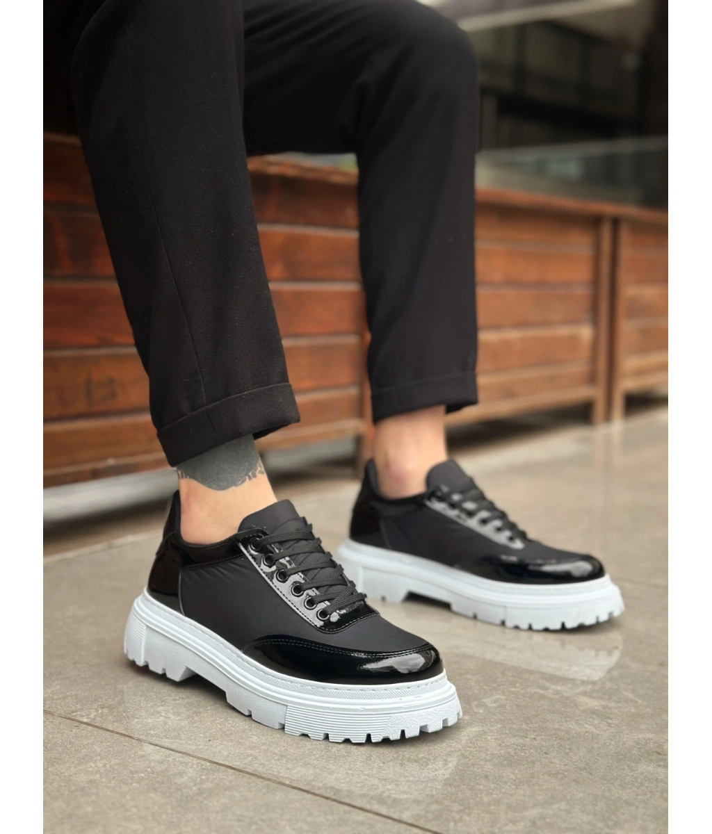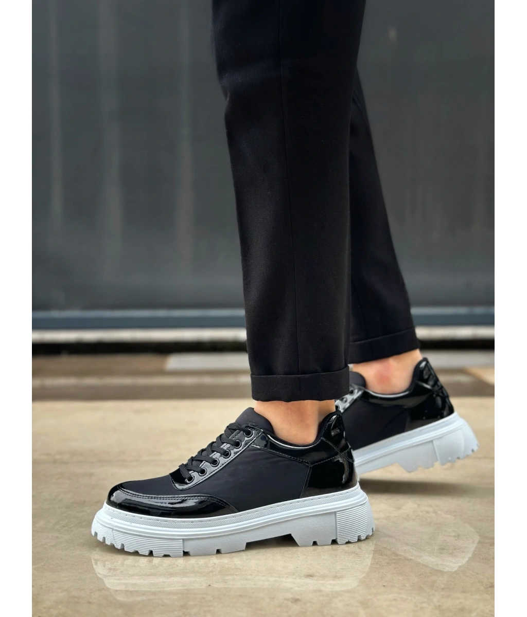 Shoecide Sb0243 Bağcıklı Rugan Paraşüt Detaylı Yüksek Siyah Taban Erkek Ayakkabı
