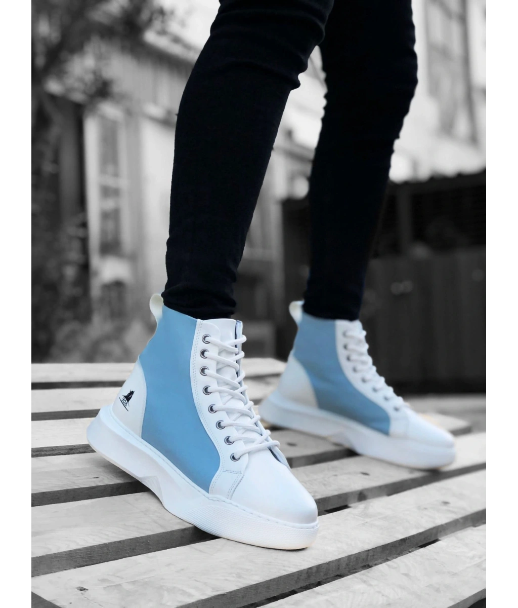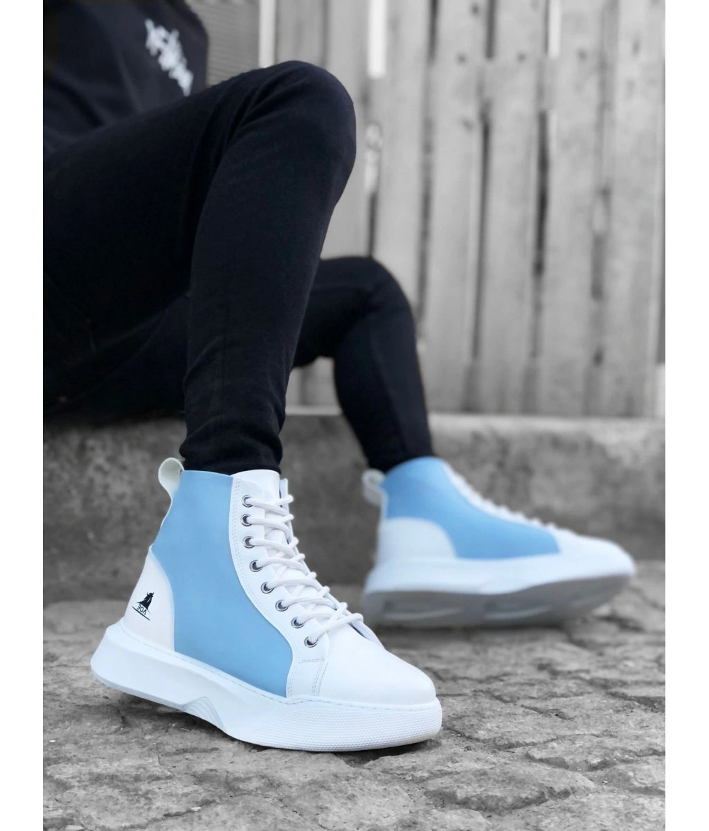 Shoecide Sb0256 Bağcıklı Erkek Yüksek Taban Beyaz Mavi Taban Spor Bot