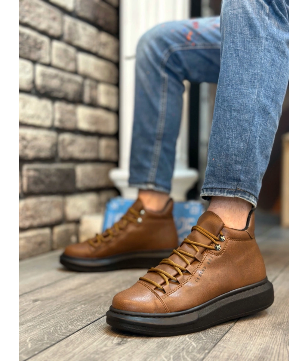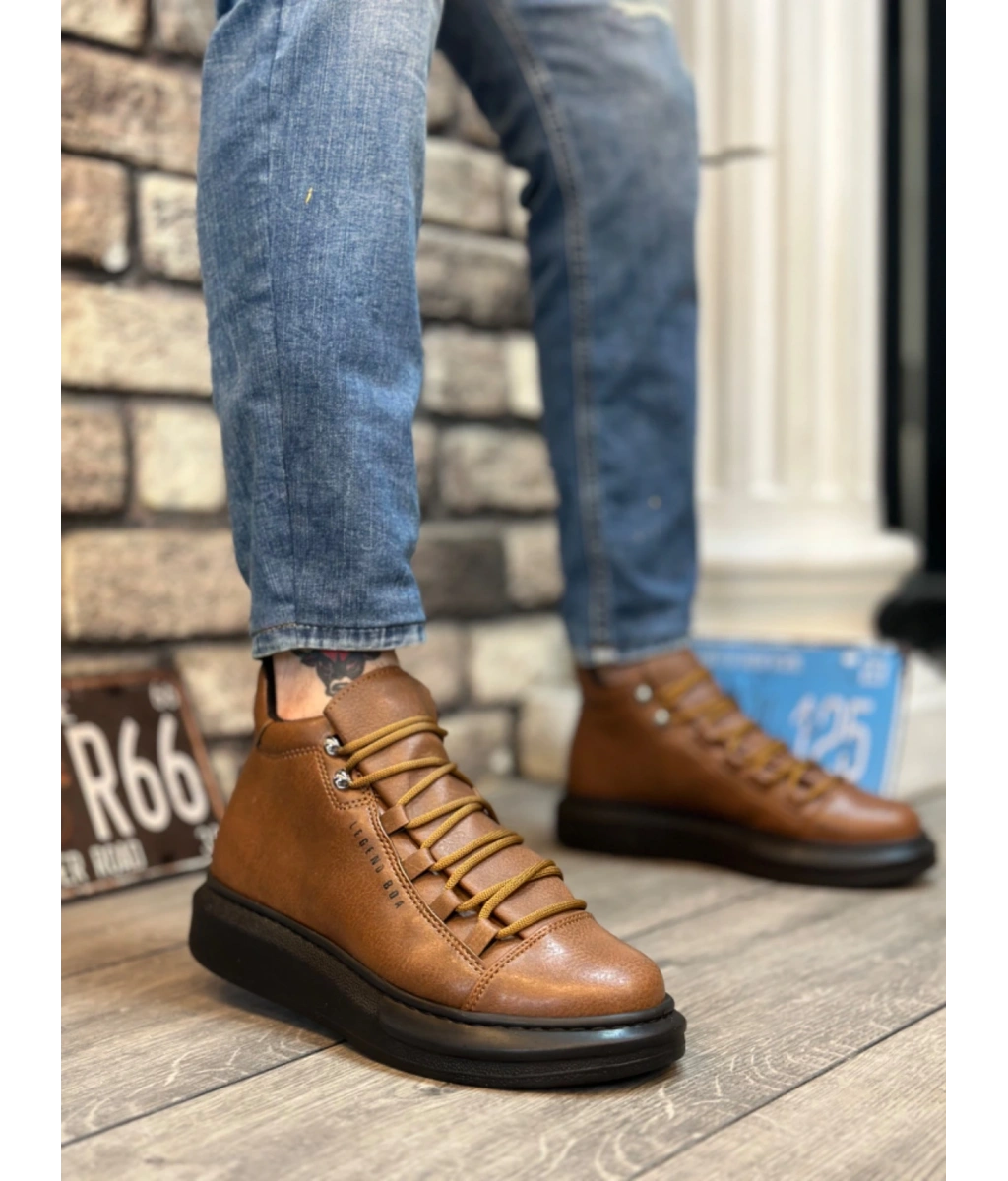 Shoecide Sb0312 Bağcıklı Yüksek Taba Siyah Taban Erkek Tarz Spor Bot