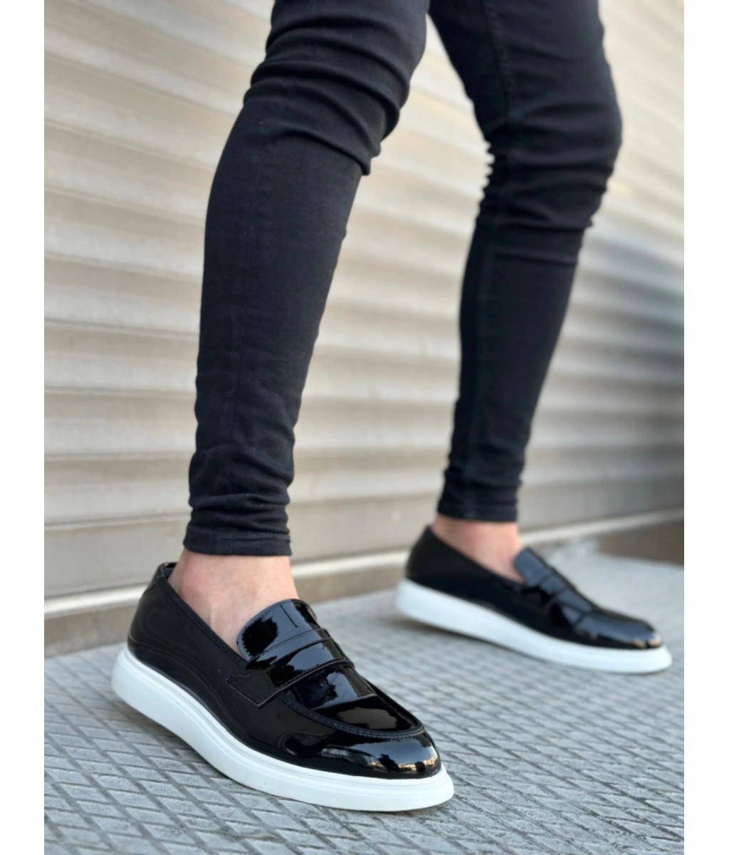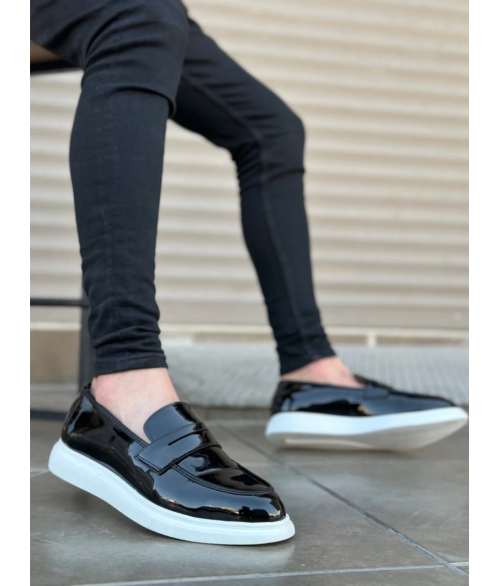Shoecide Sb0316 Bağcıksız Yüksek Beyaz Taban Klasik Rugan Corcik Erkek Ayakkabı