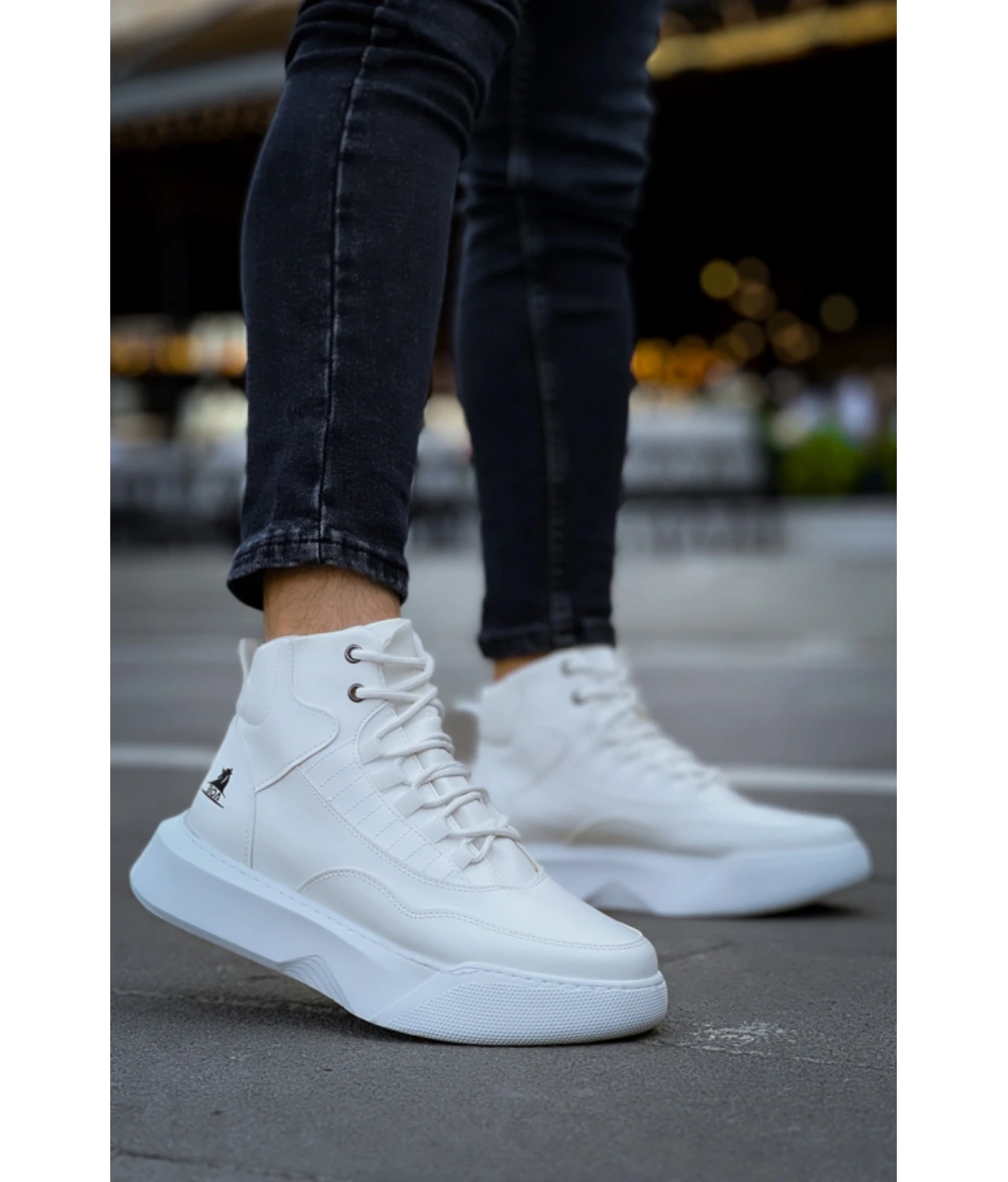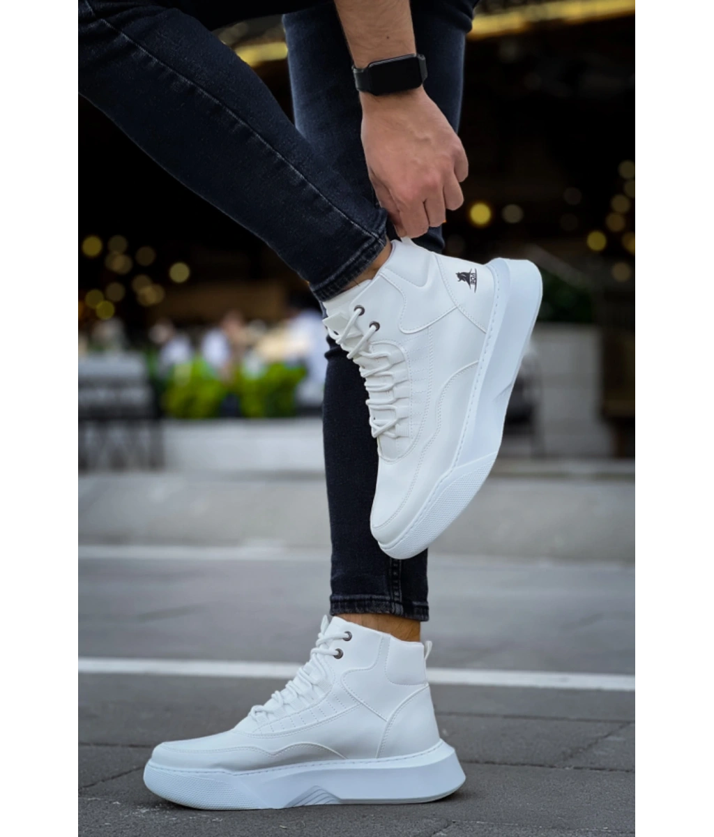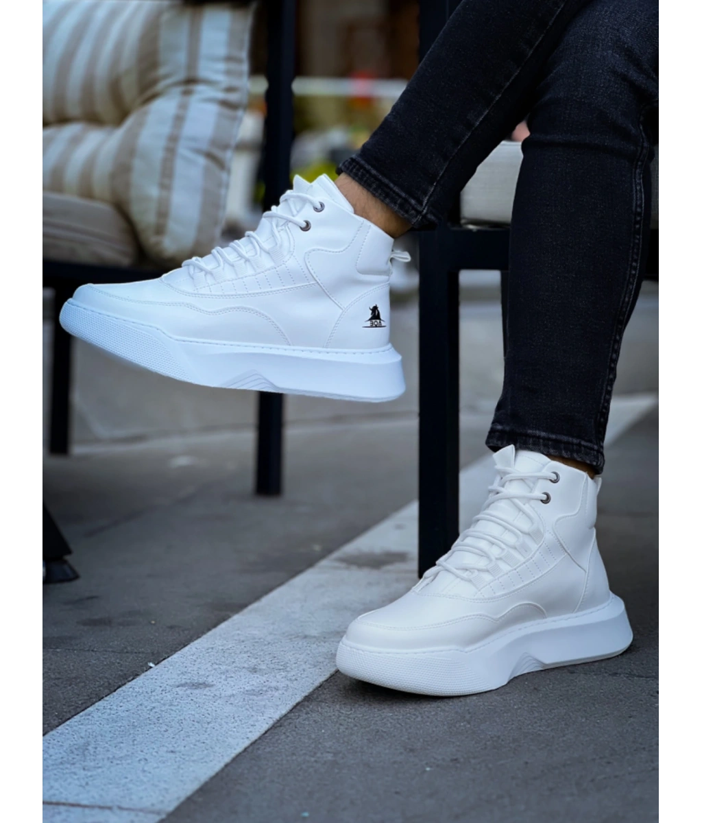 Shoecide Sb0318 Bağcıklı Erkek Yüksek Taban Beyaz Spor Bot
