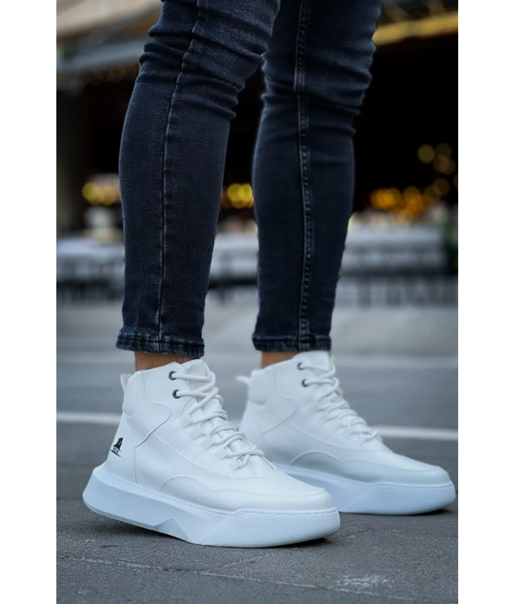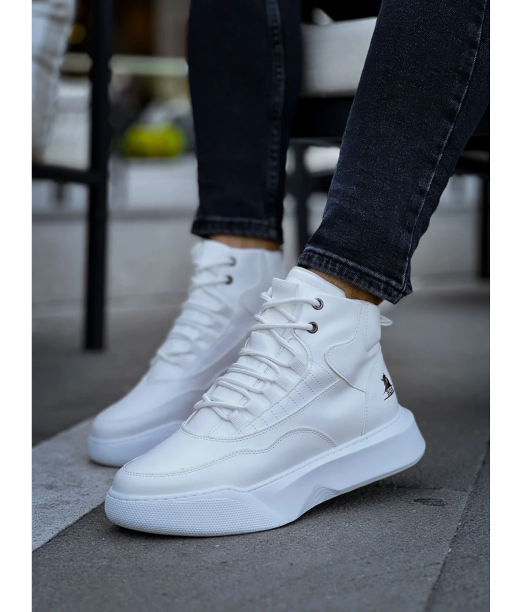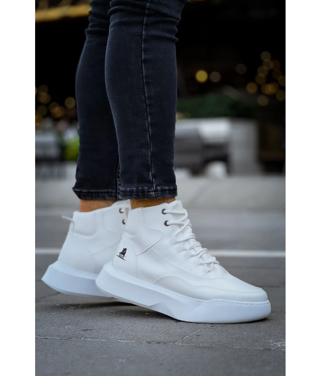 Shoecide Sb0318 Bağcıklı Erkek Yüksek Taban Beyaz Spor Bot