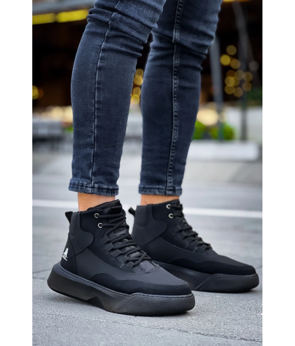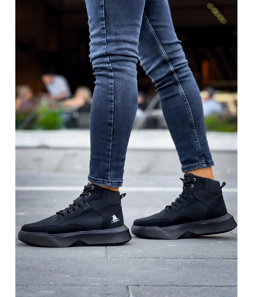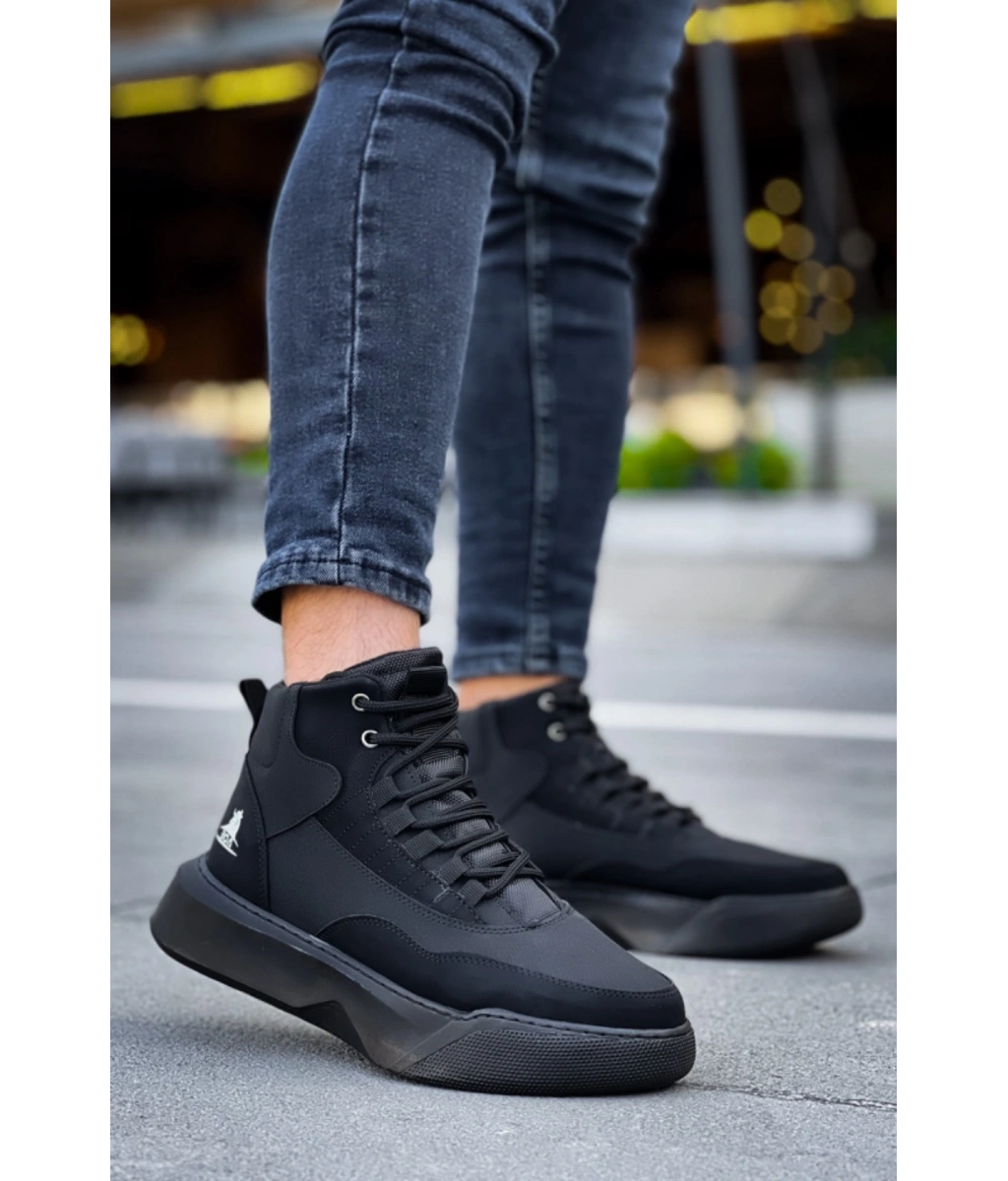 Shoecide Sb0318 Bağcıklı Erkek Yüksek Taban Siyah Taban Spor Bot