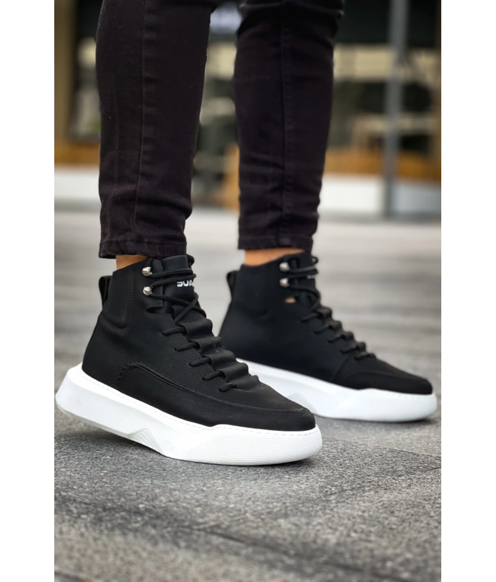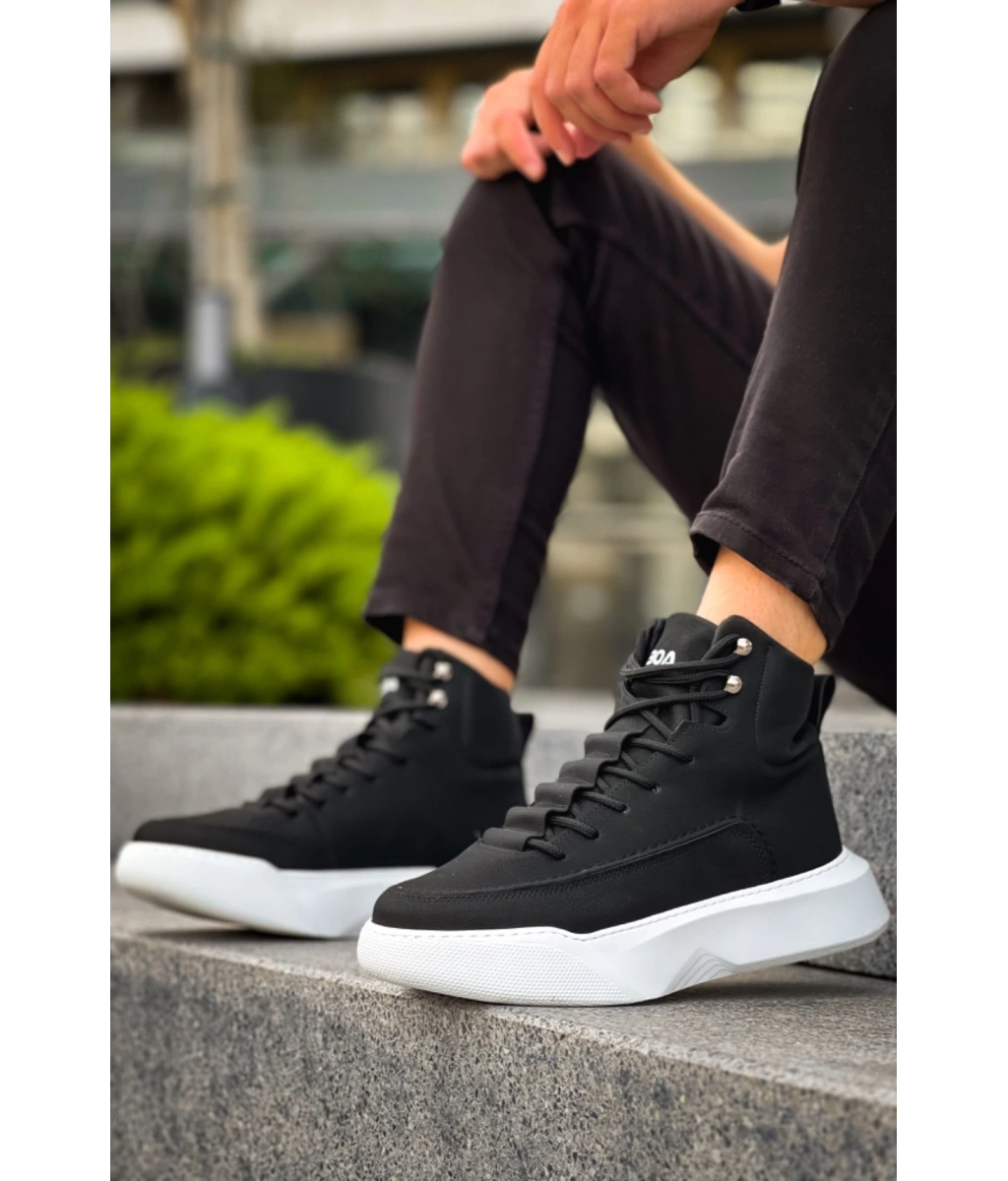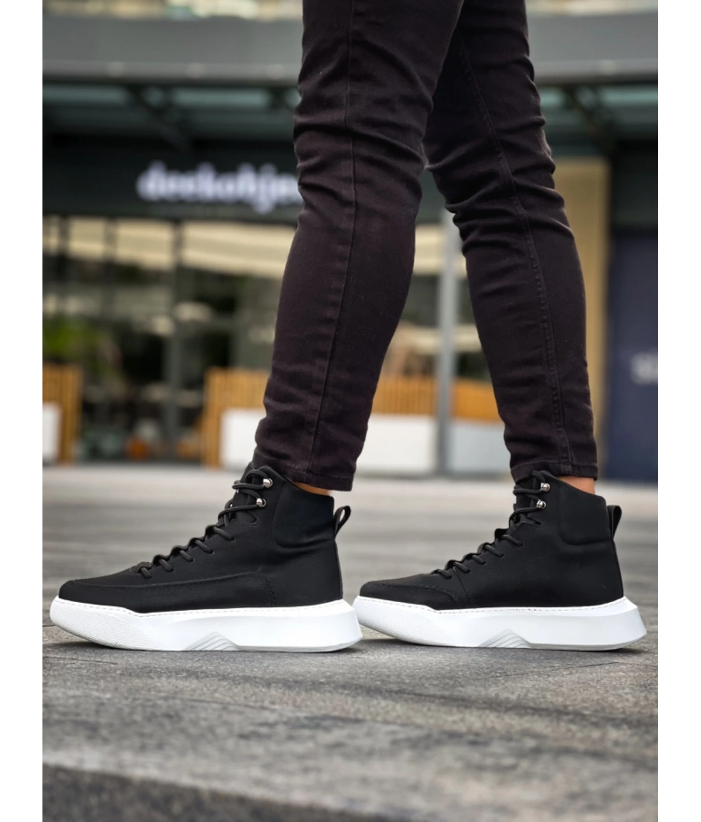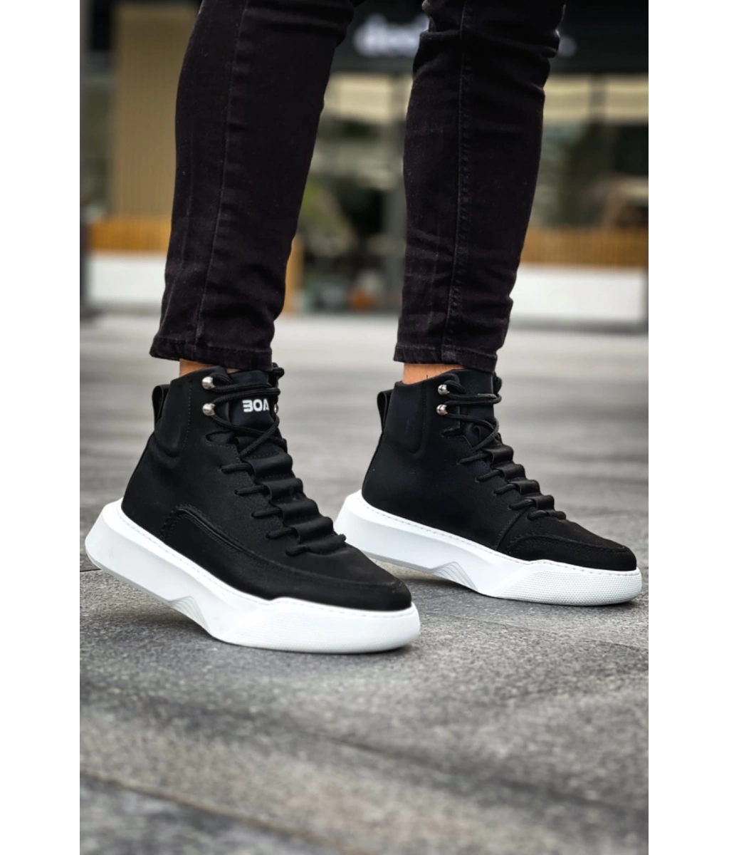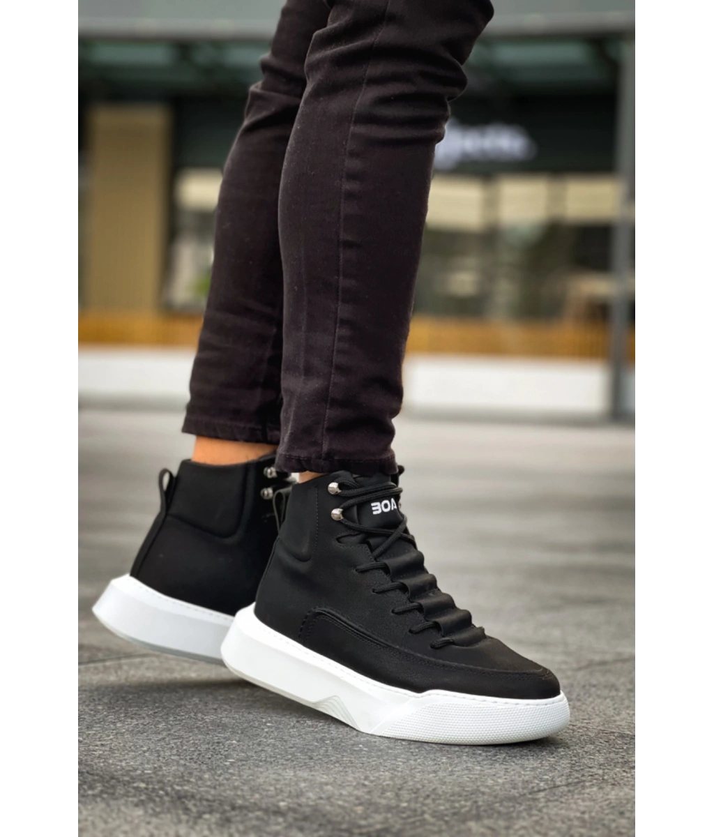 Shoecide Sb0713 Bağcıklı Yüksek Siyah Beyaz Taban Erkek Tarz Spor Bot