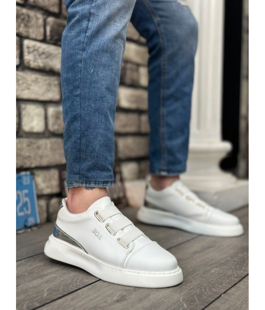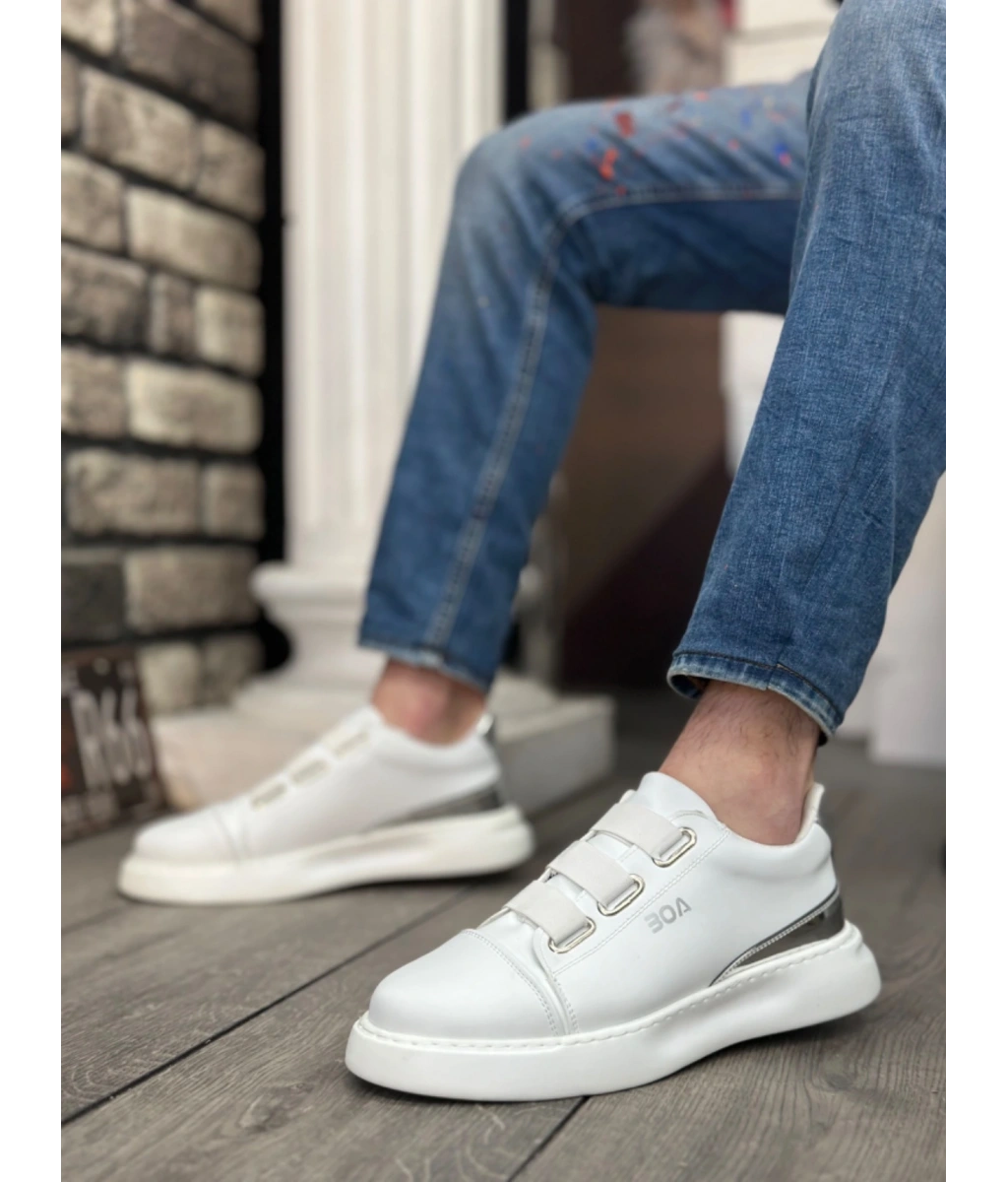 Shoecide Sb0329 3 Bant Beyaz Gümüş Detaylı Kalın Taban Casual Erkek Ayakkabı