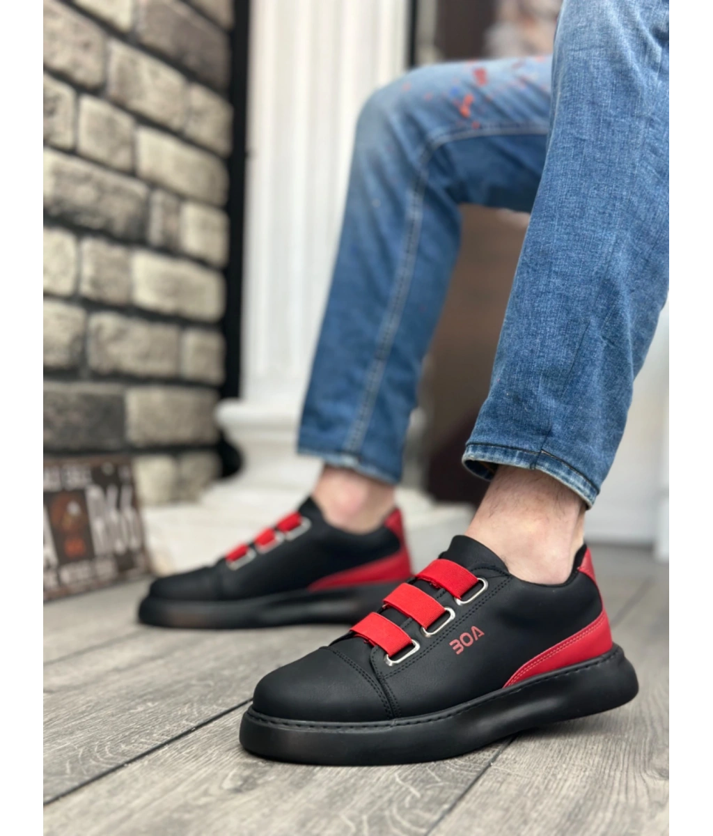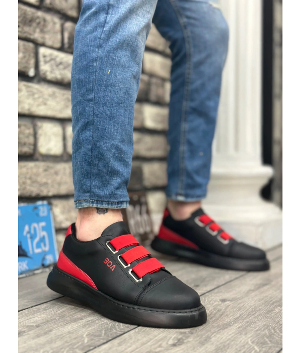 Shoecide Sb0329 3 Bant Siyah Kırmızı Detaylı Kalın Taban Casual Erkek Ayakkabı