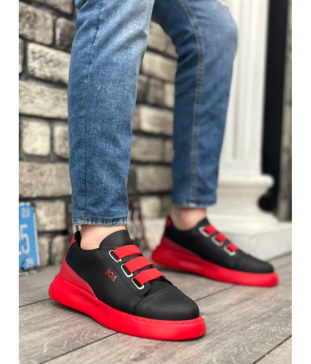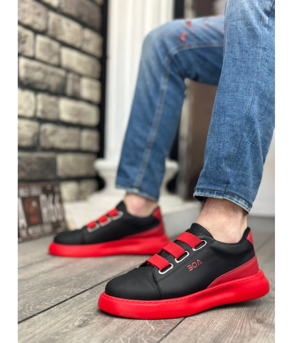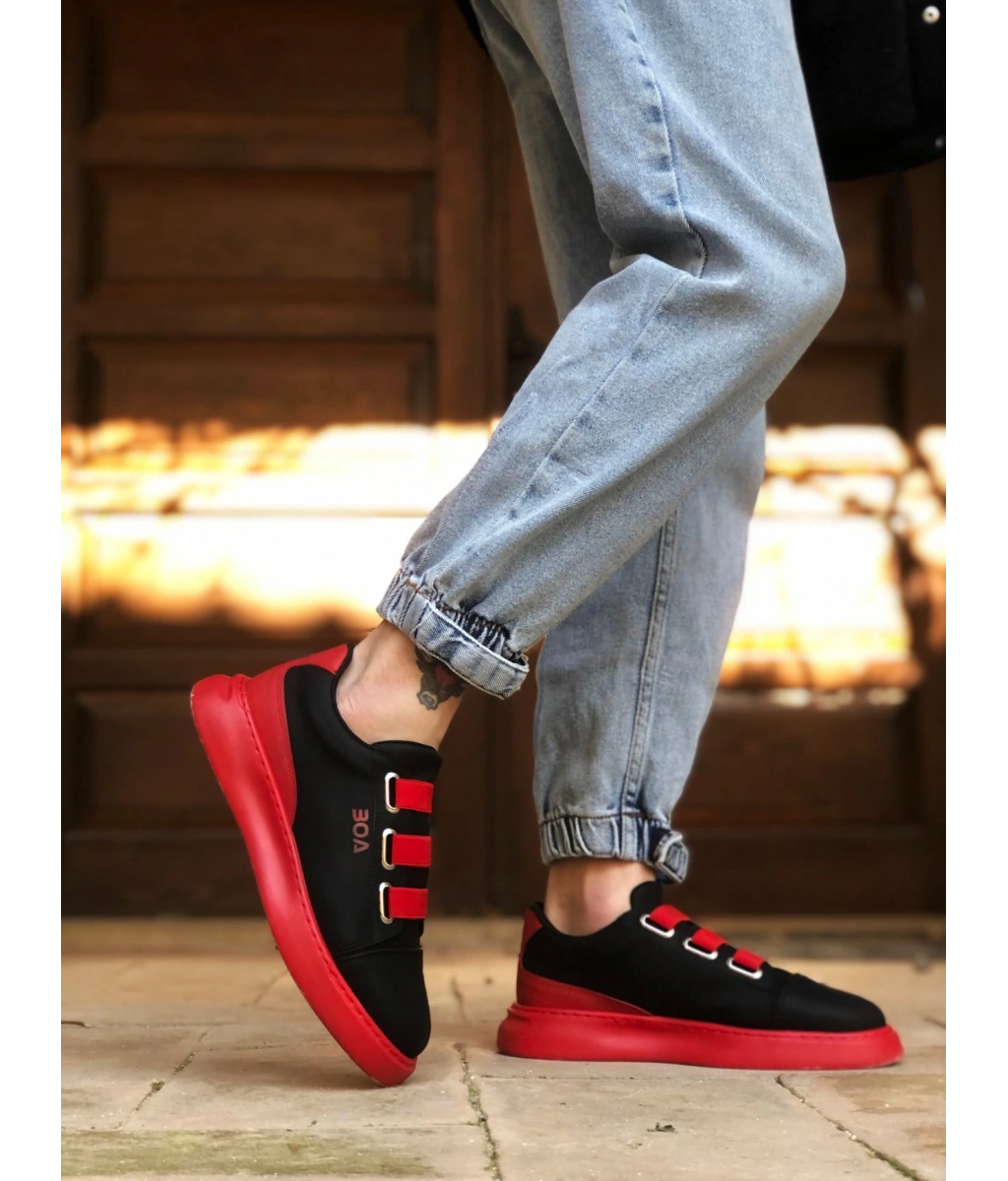 Shoecide Sb0329 3 Bant Siyah Kırmızı Kalın Taban Casual Erkek Ayakkabı