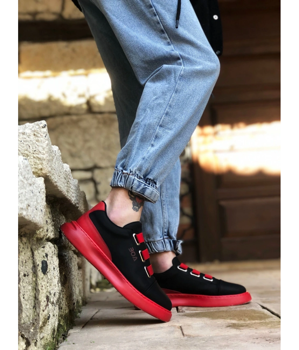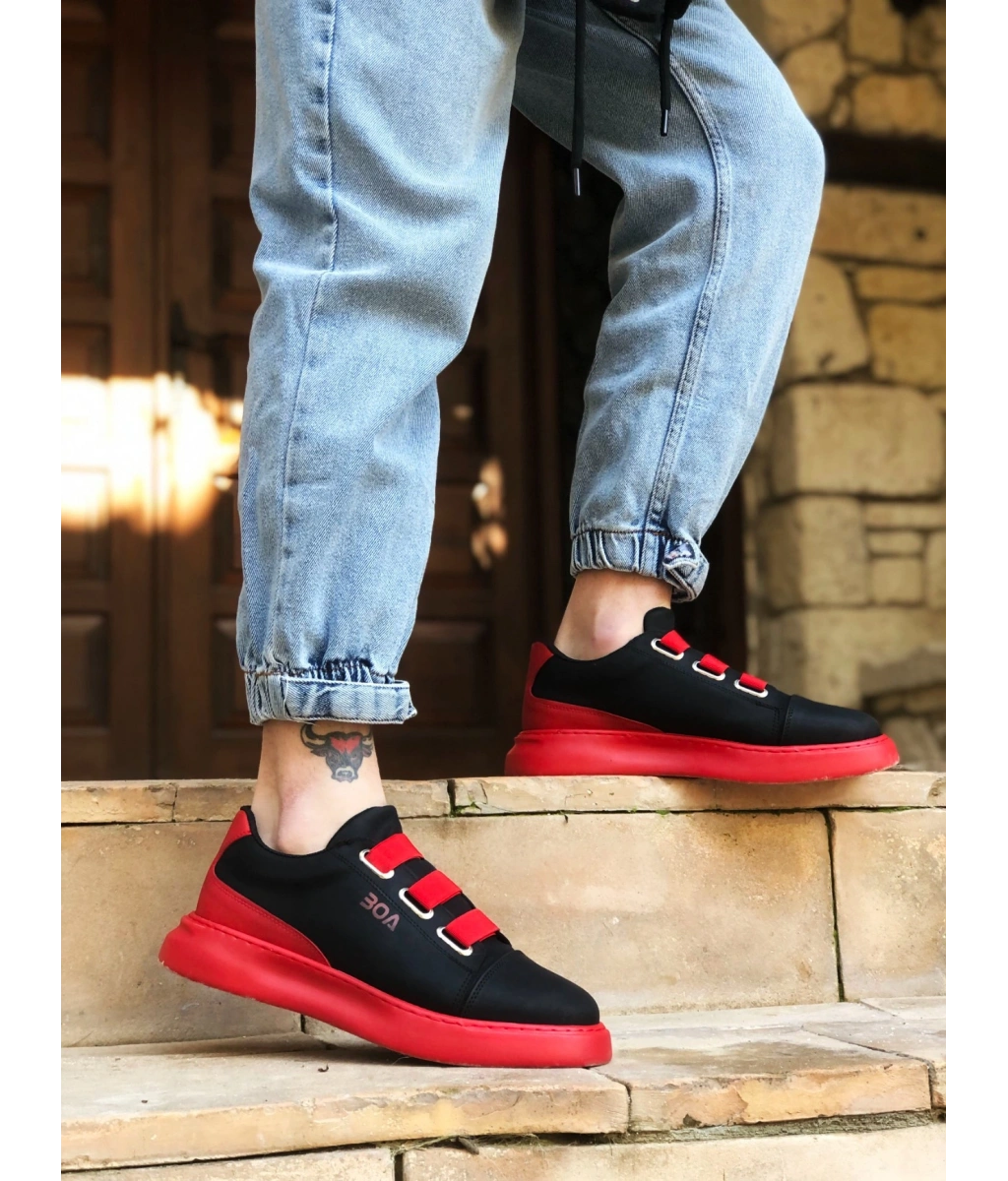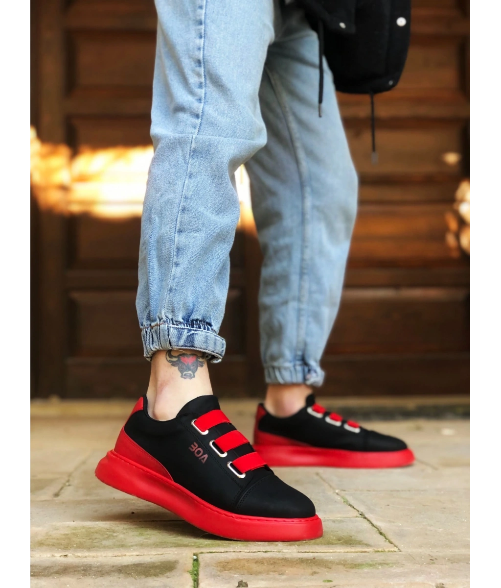 Shoecide Sb0329 3 Bant Siyah Kırmızı Kalın Taban Casual Erkek Ayakkabı