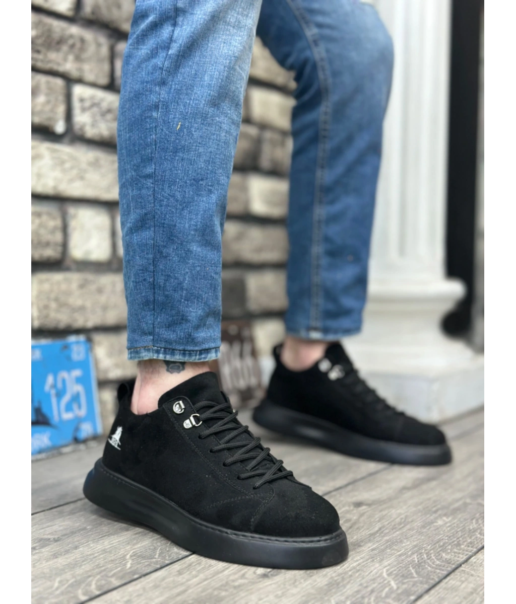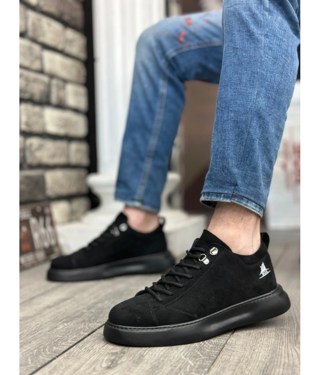 Shoecide Sb0331 Bağcıklı Erkek Yüksek Taban Siyah Süet Siyah Taban Spor Ayakkabı