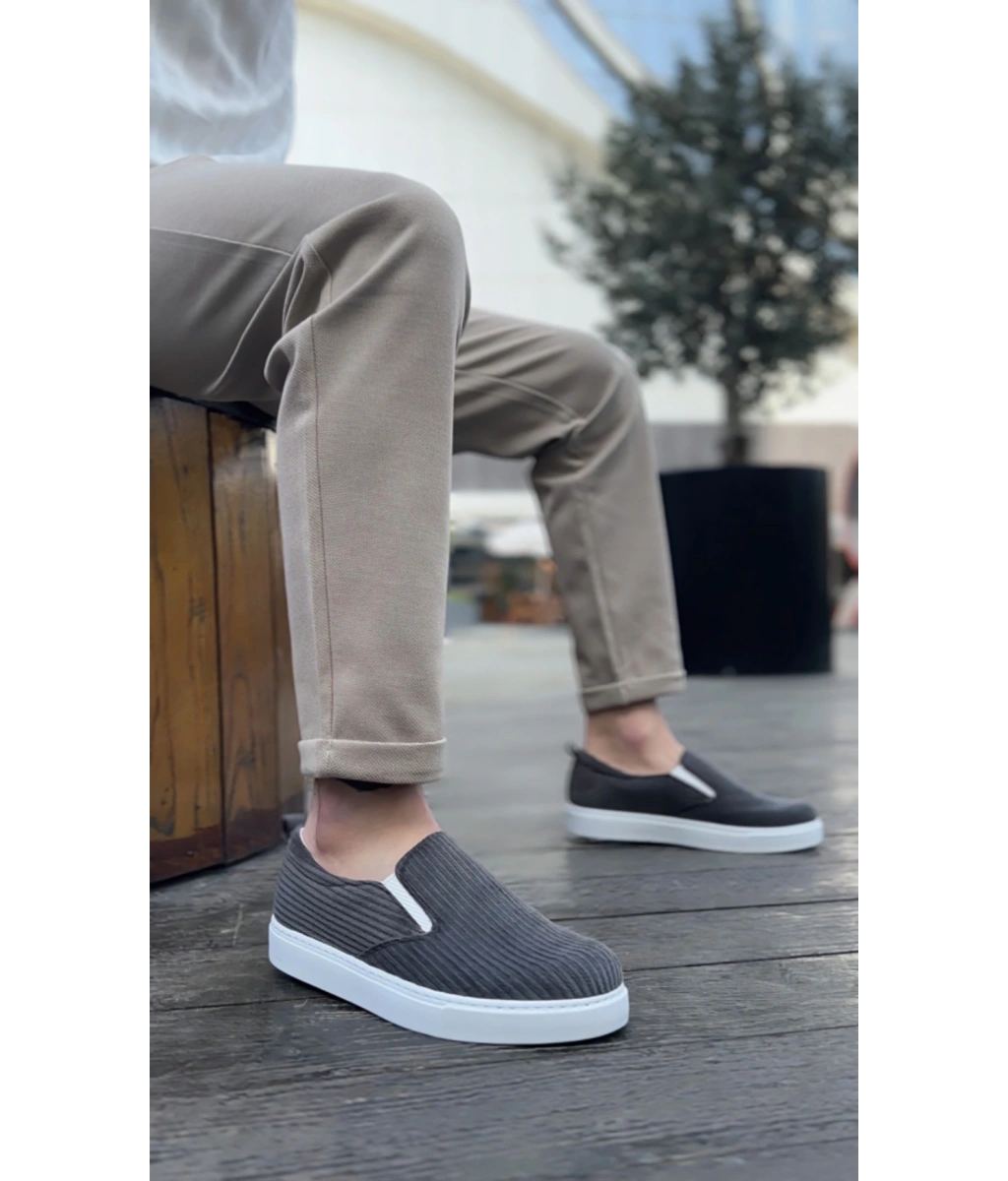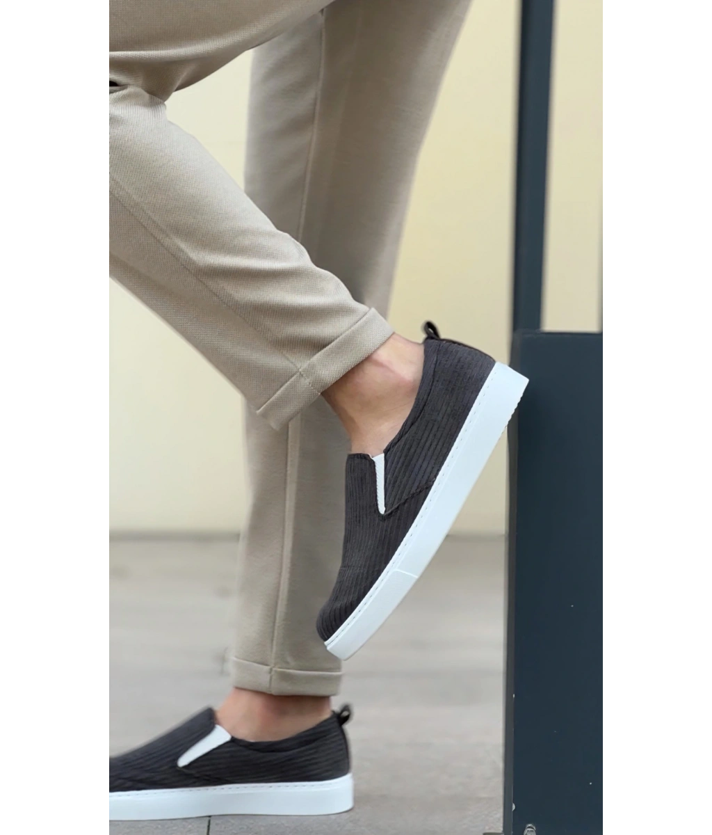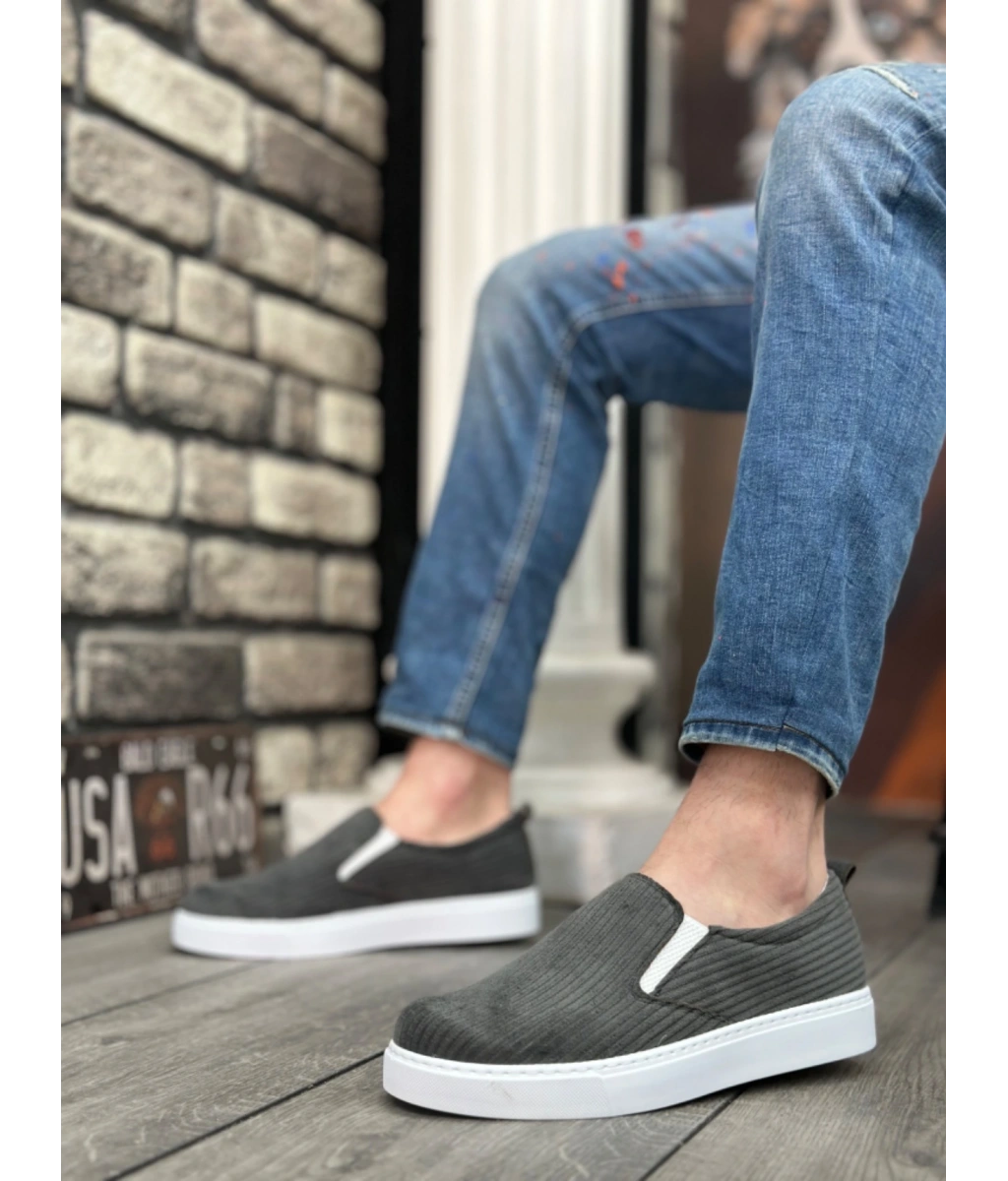 Shoecide Sb0339 Bağcıksız Kadife Gri Beyaz Taban Günlük Erkek Ayakkabı