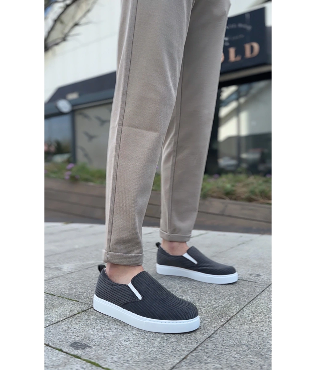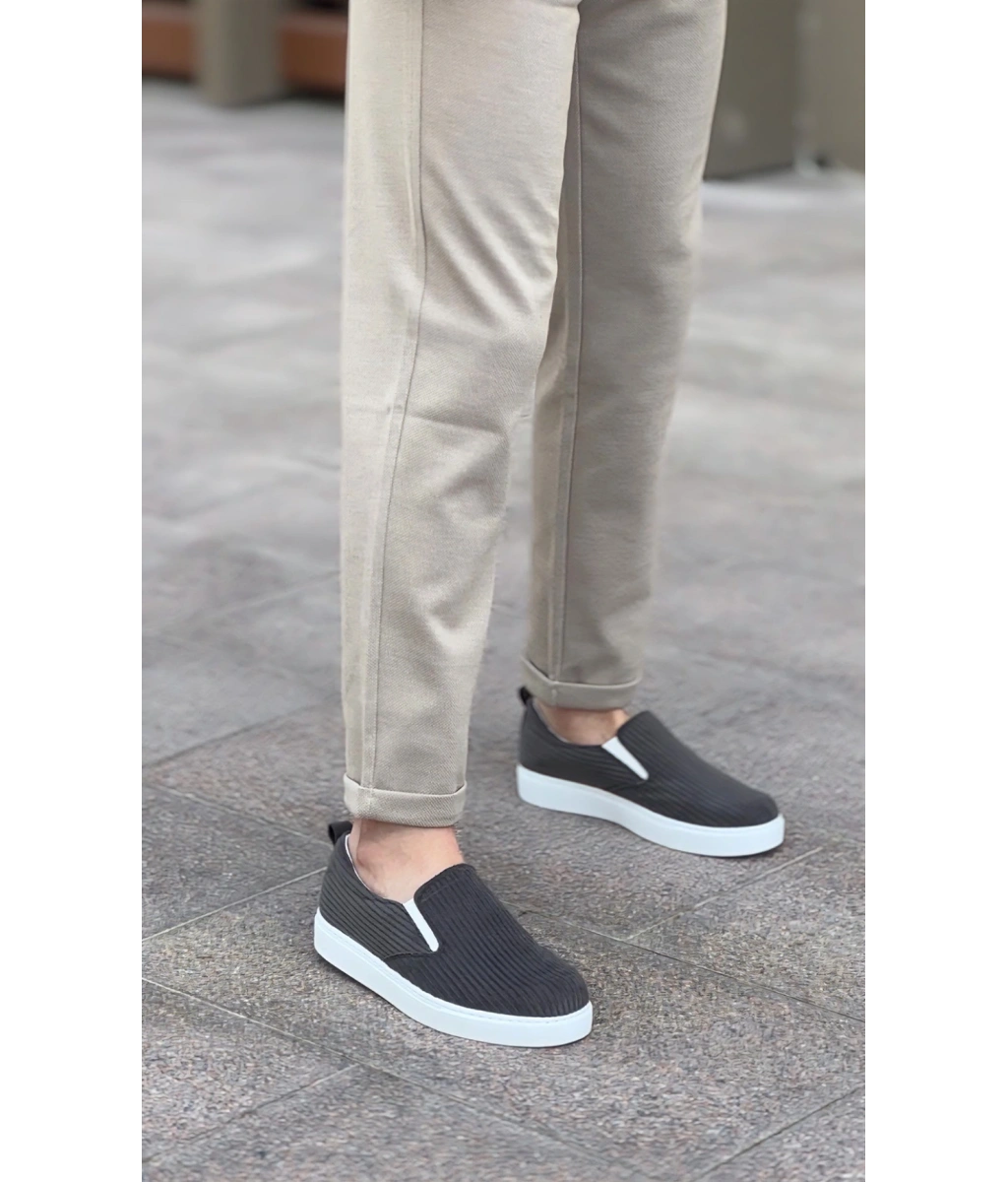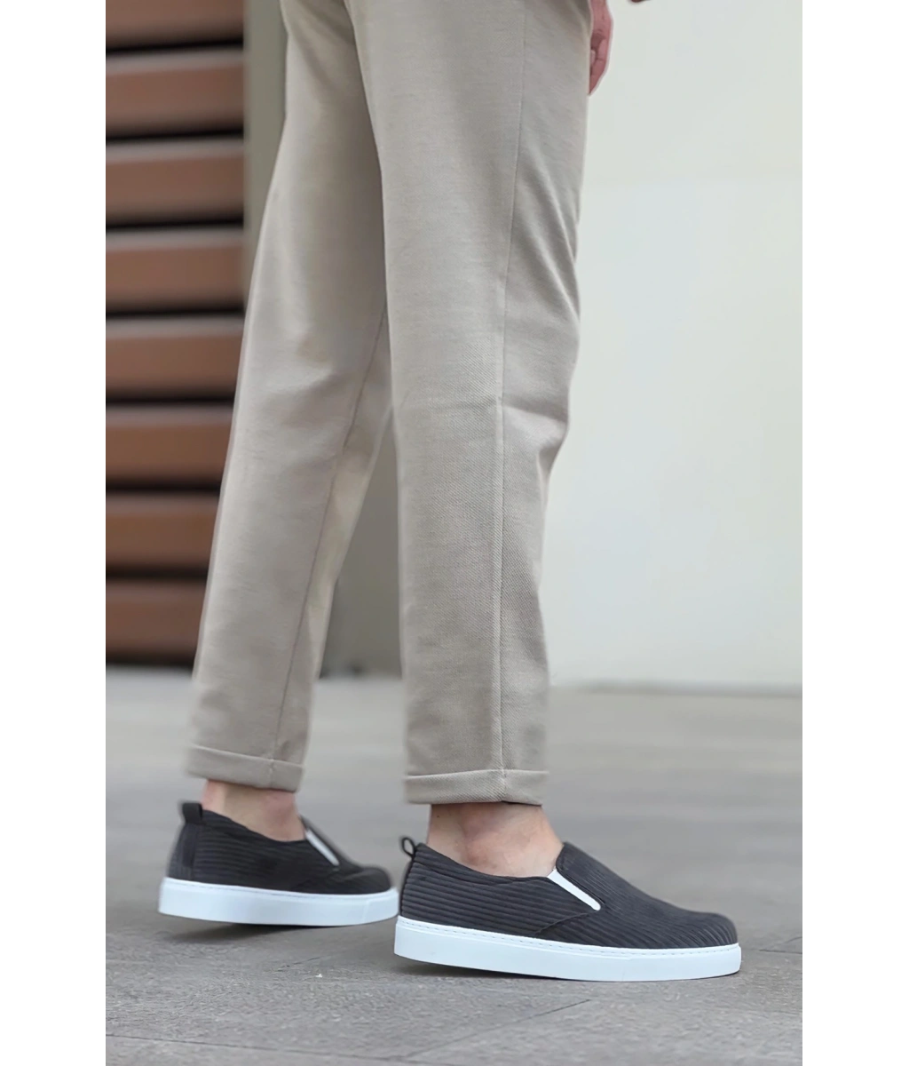 Shoecide Sb0339 Bağcıksız Kadife Gri Beyaz Taban Günlük Erkek Ayakkabı