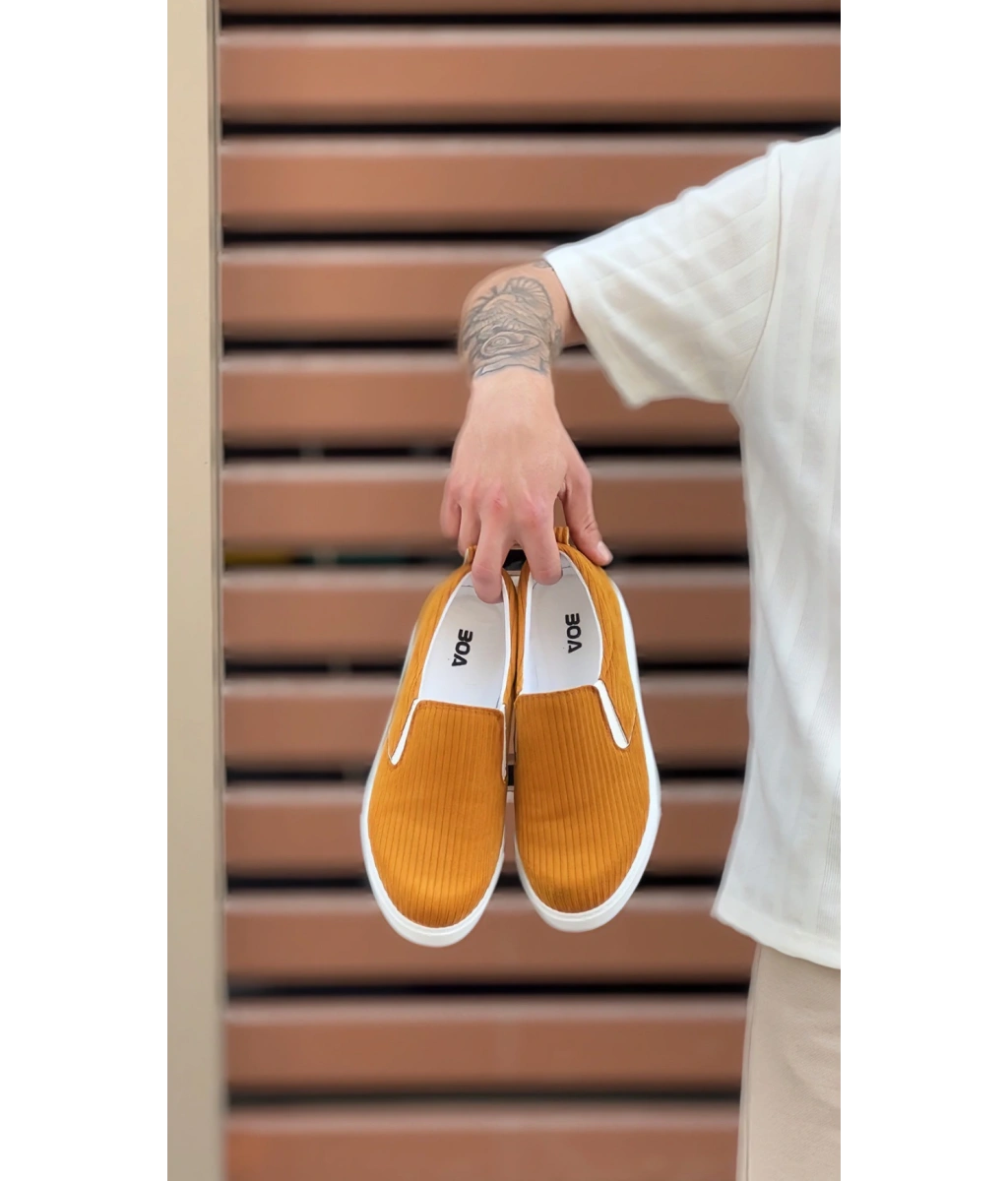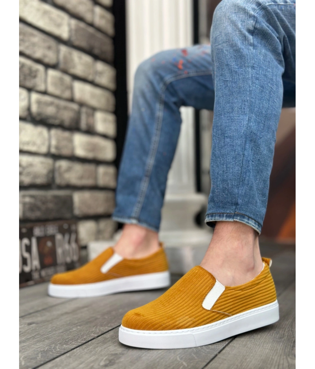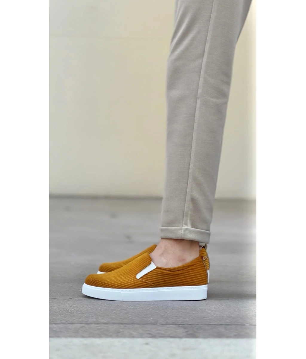 Shoecide Sb0339 Bağcıksız Kadife Hardal Beyaz Taban Günlük Erkek Ayakkabı