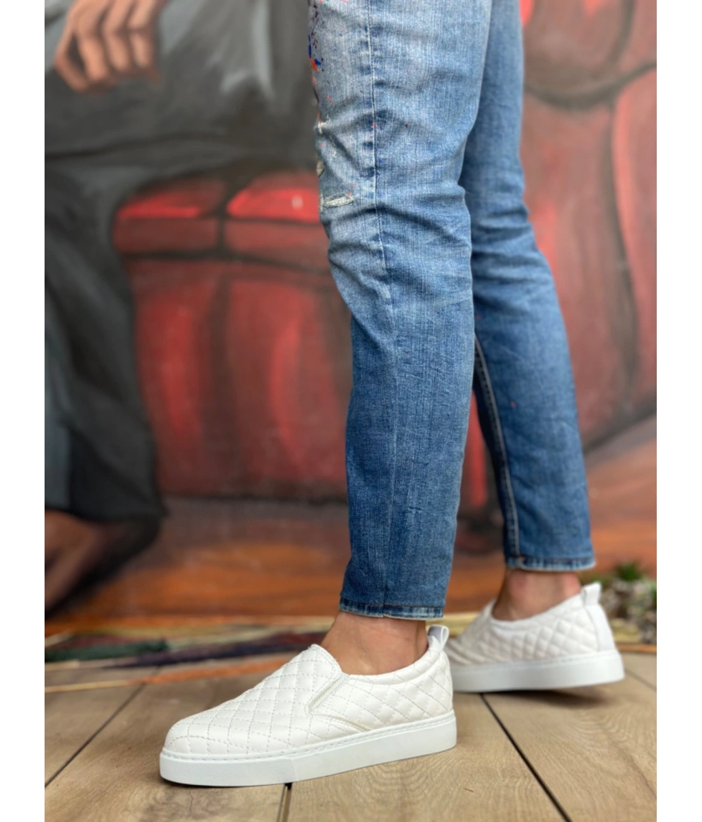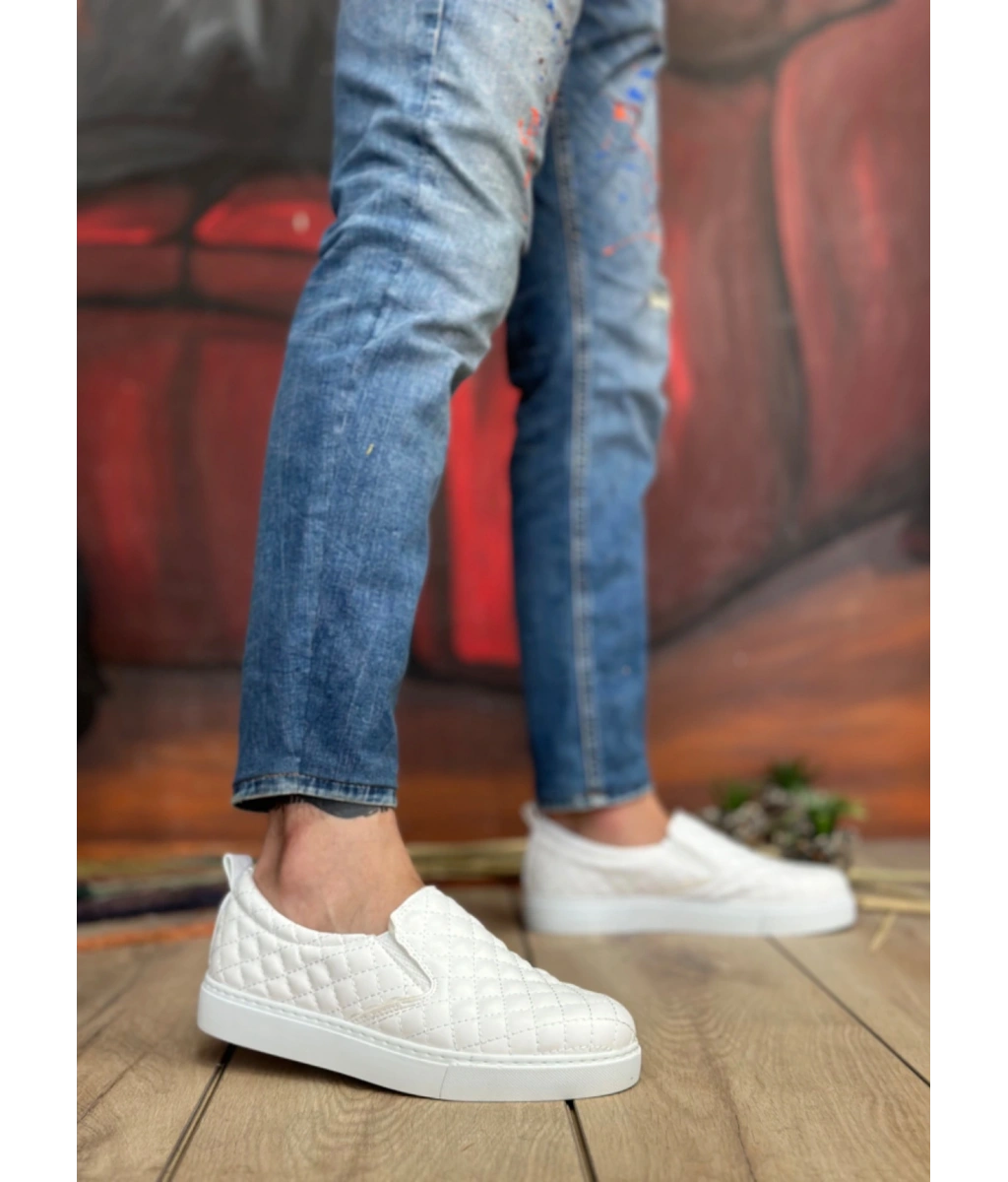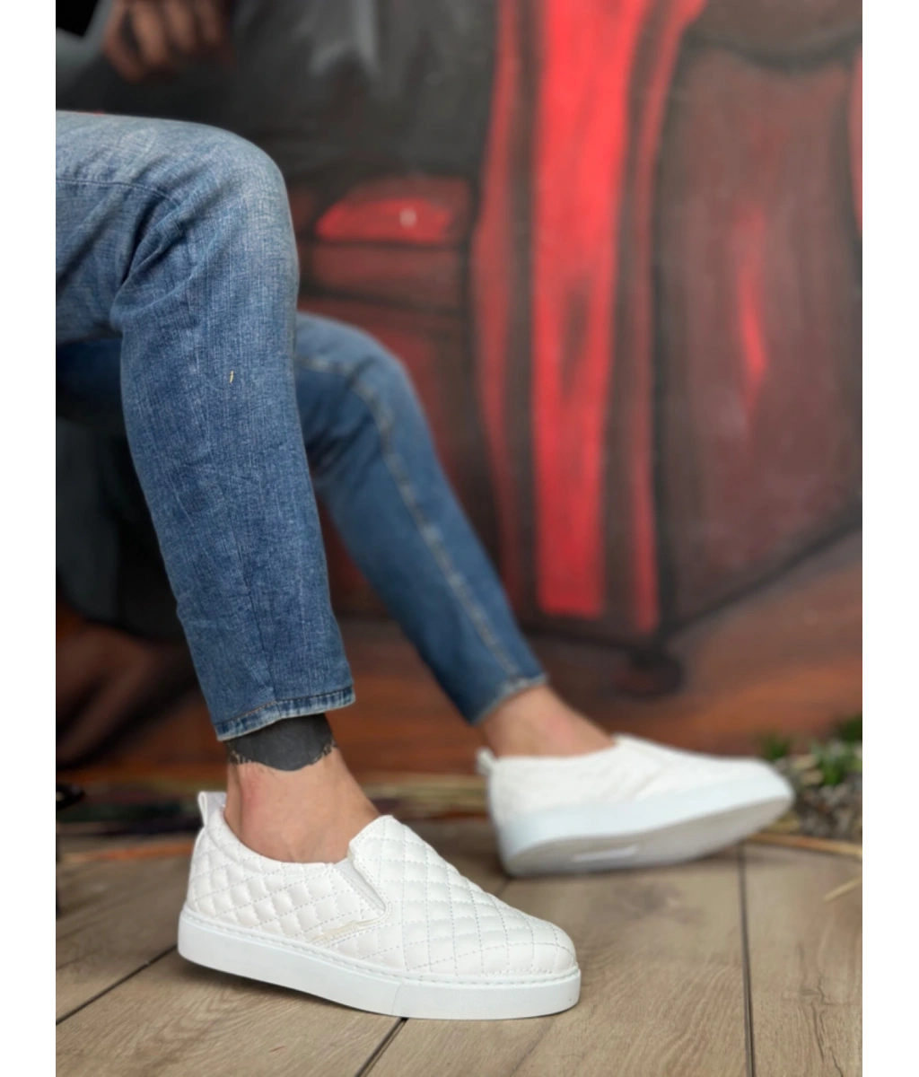 Shoecide Sb0353 Bağcıksız Kapitone Beyaz Günlük Erkek Ayakkabı