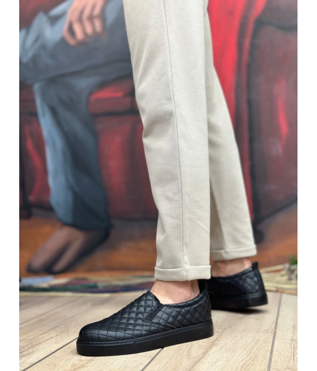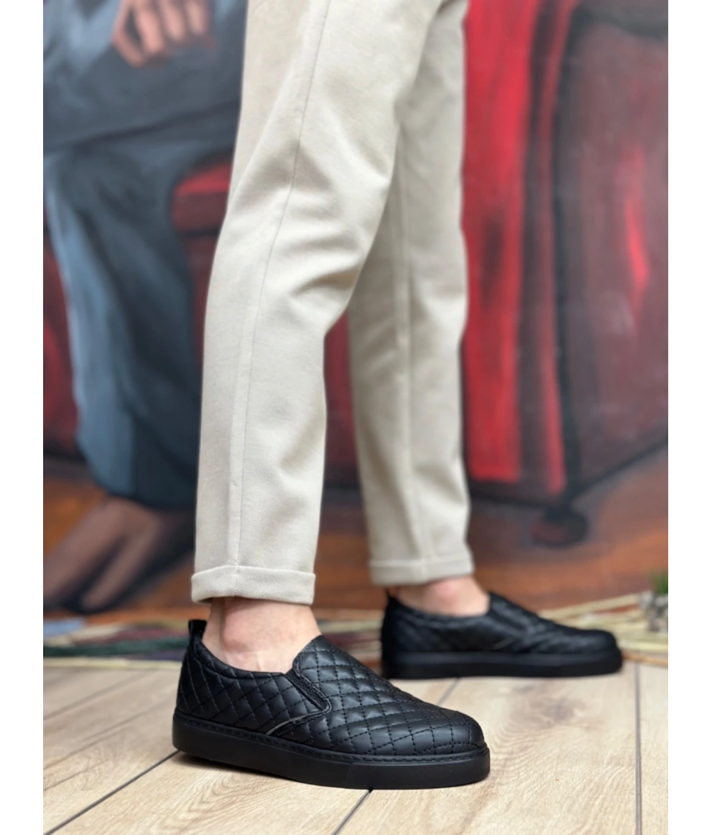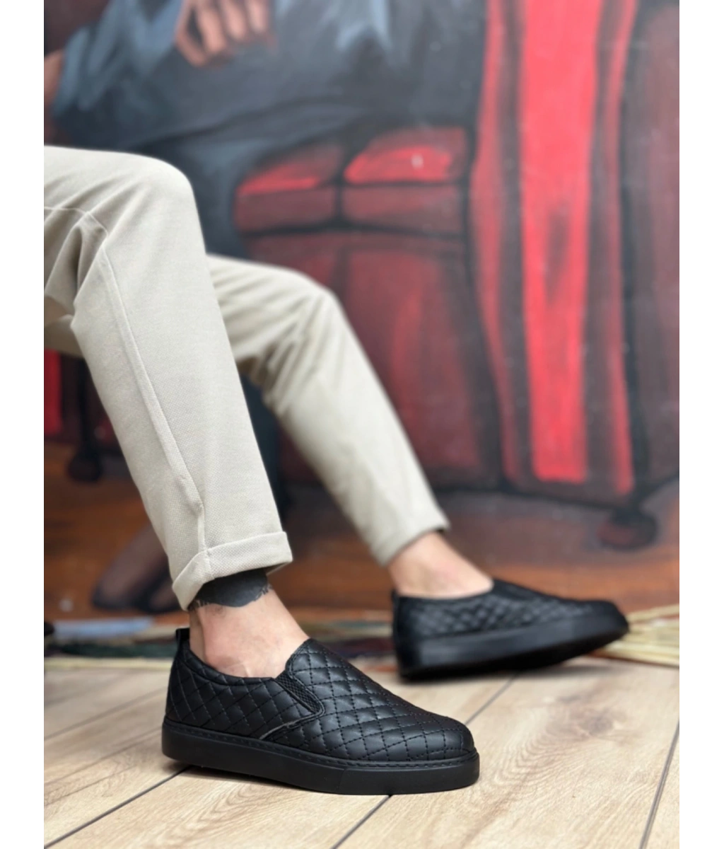 Shoecide Sb0353 Bağcıksız Kapitone Siyah Günlük Erkek Ayakkabı