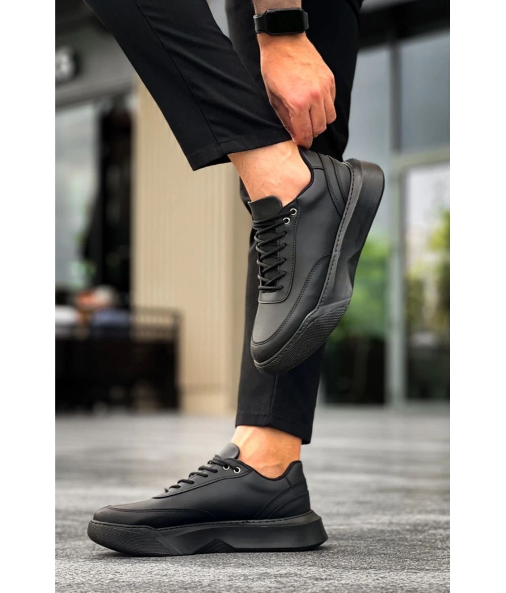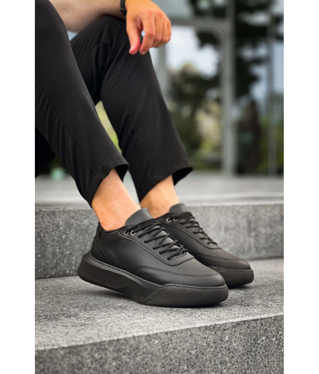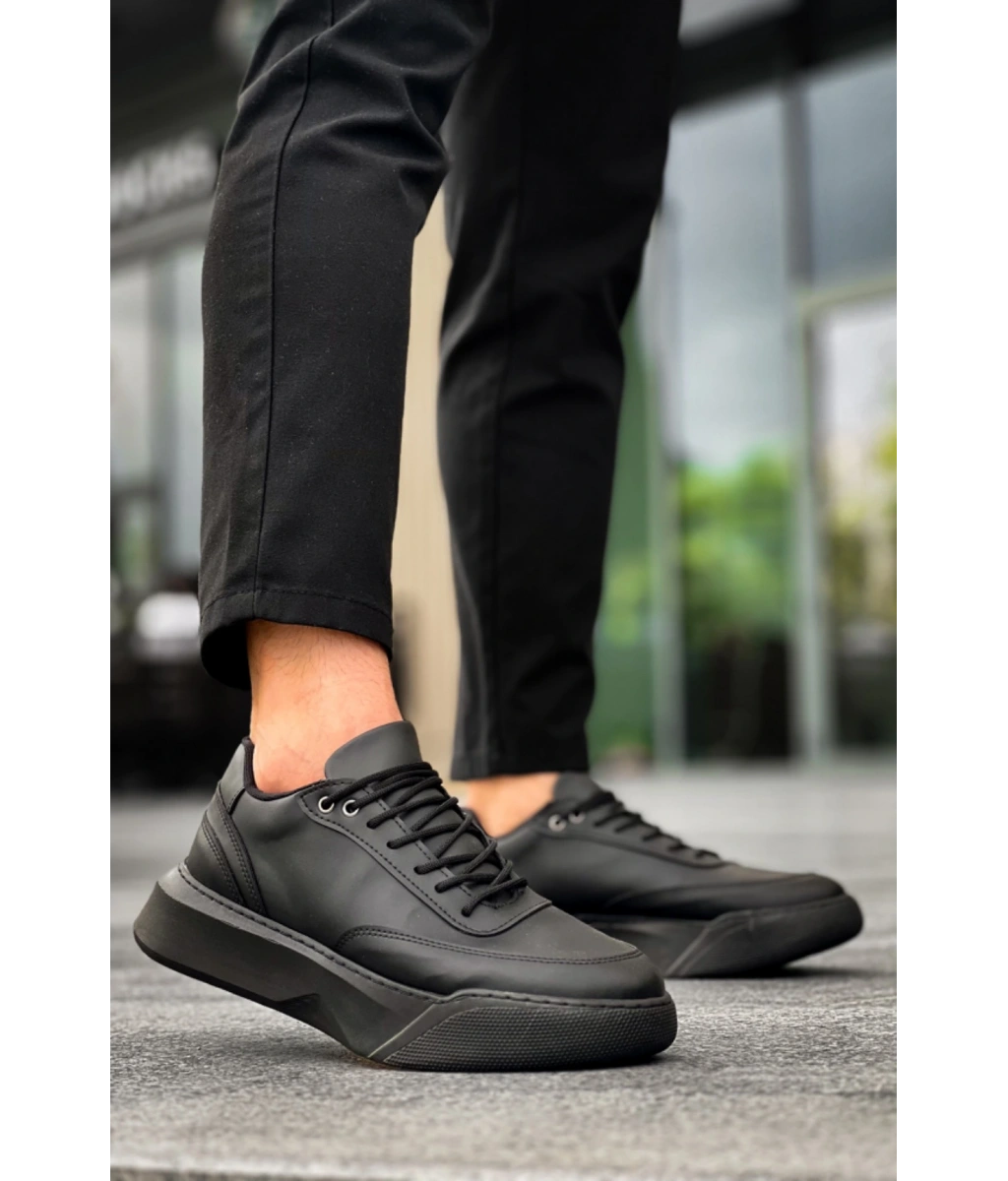 Shoecide Sb0354 Günlük Bağcıklı Erkek Siyah Yüksek Taban Spor Ayakkabı