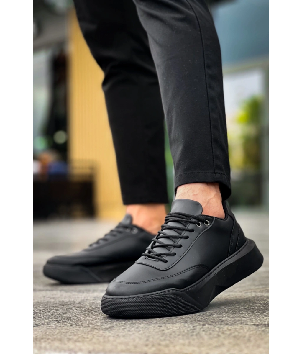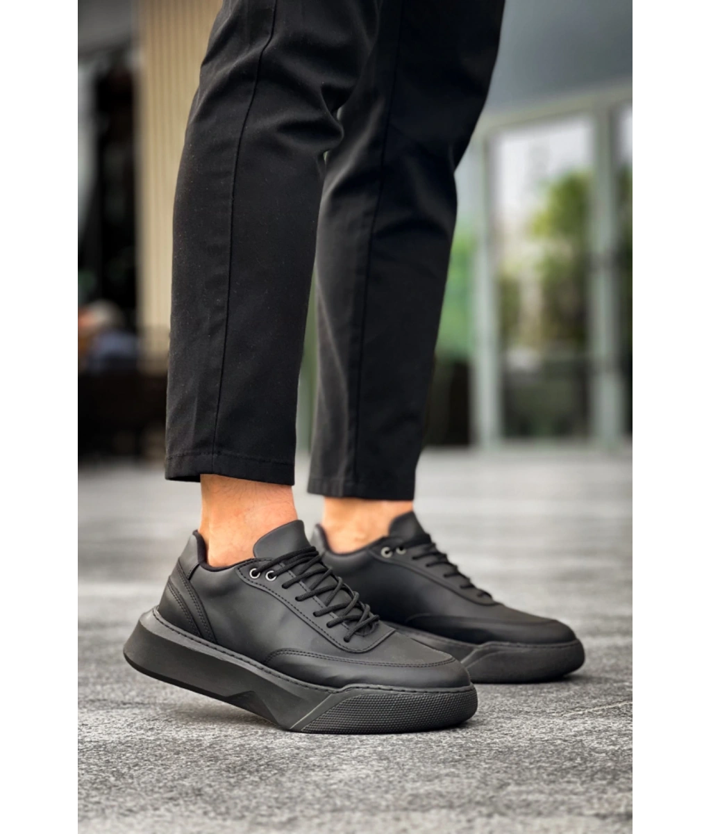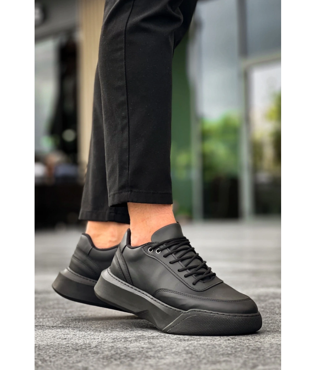 Shoecide Sb0354 Günlük Bağcıklı Erkek Siyah Yüksek Taban Spor Ayakkabı