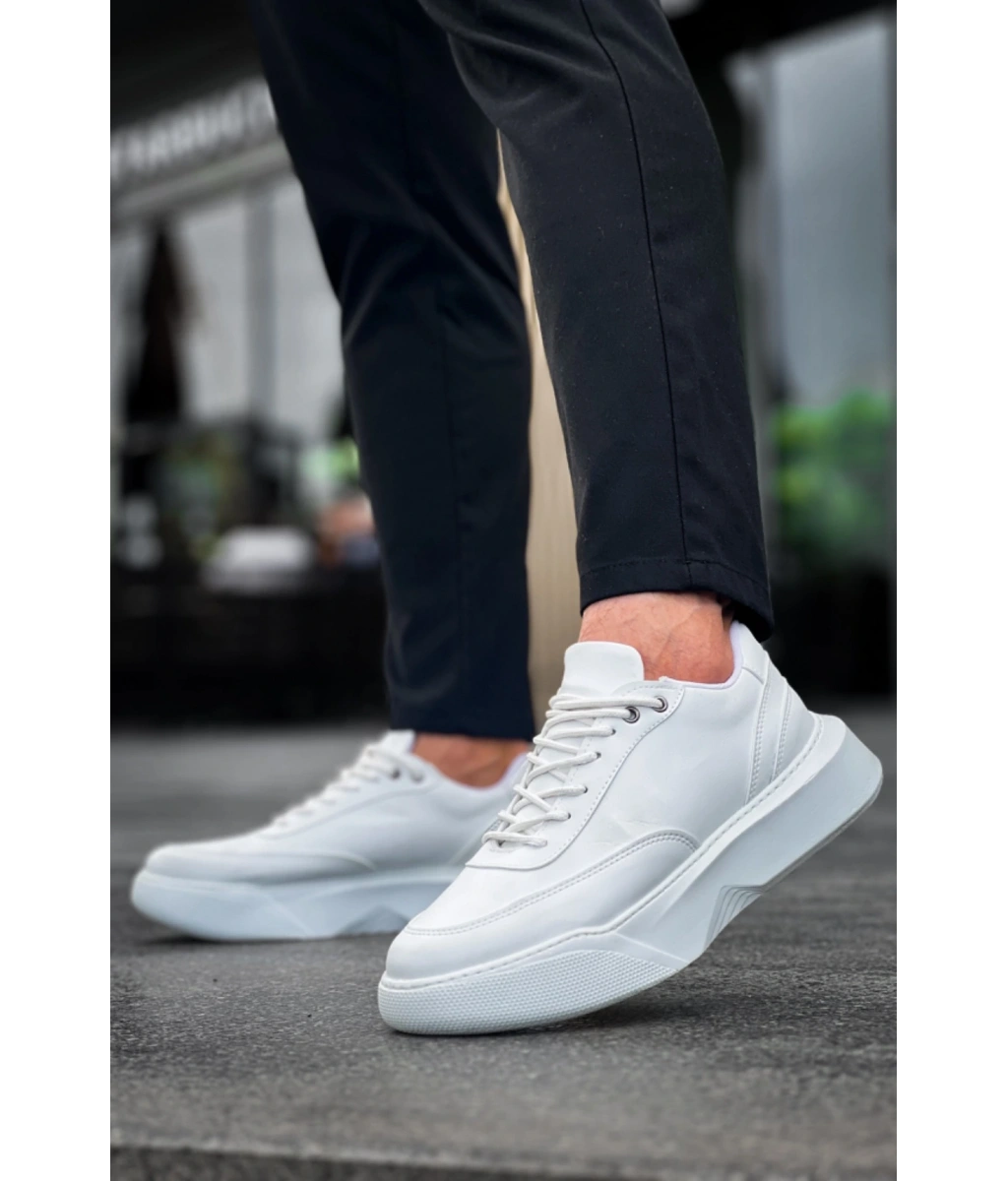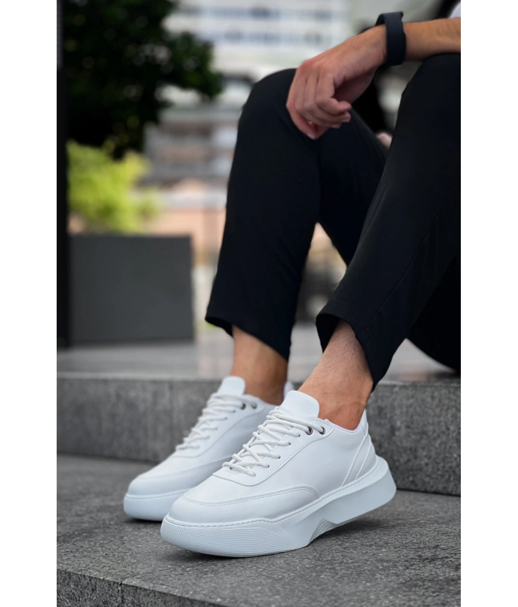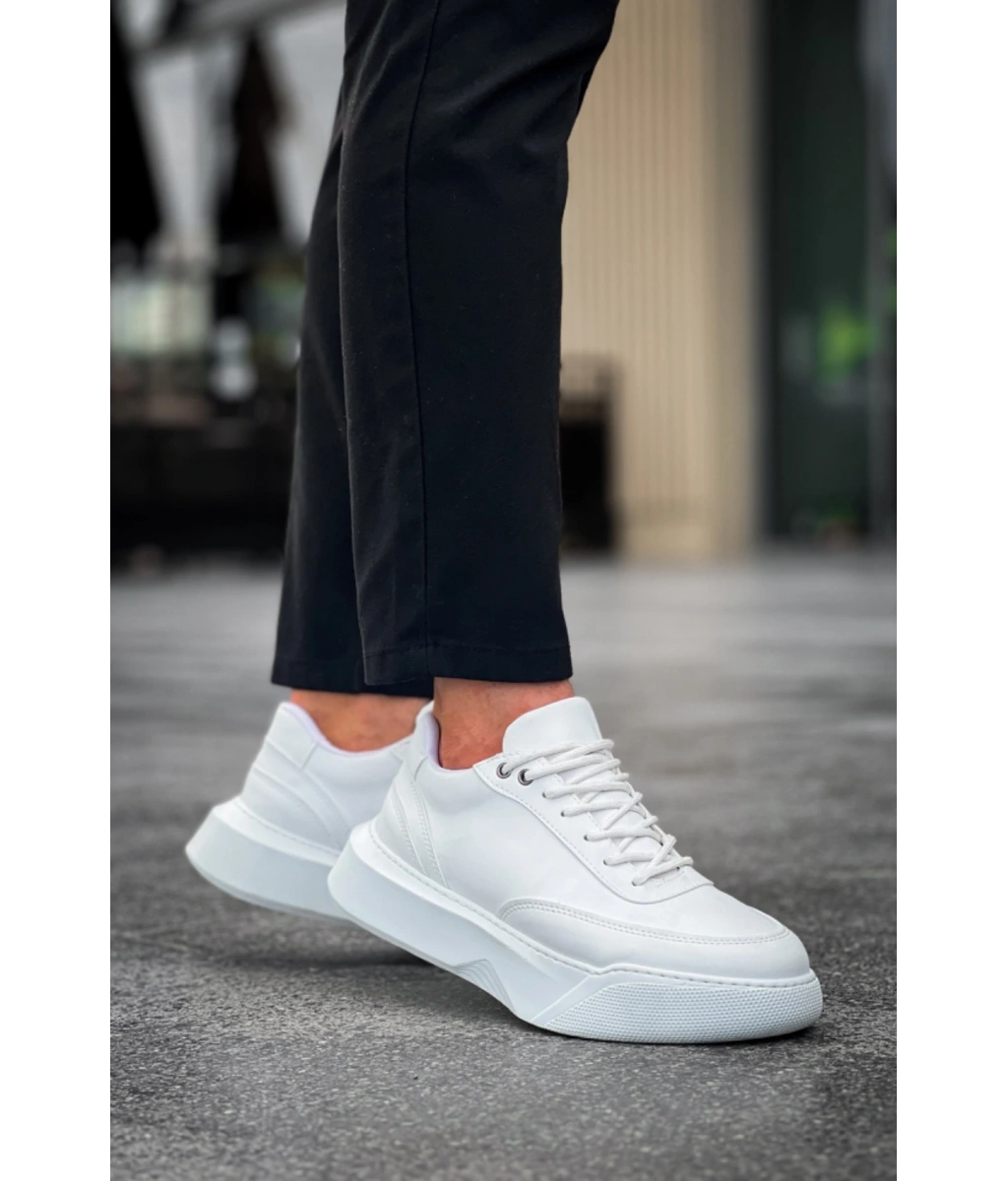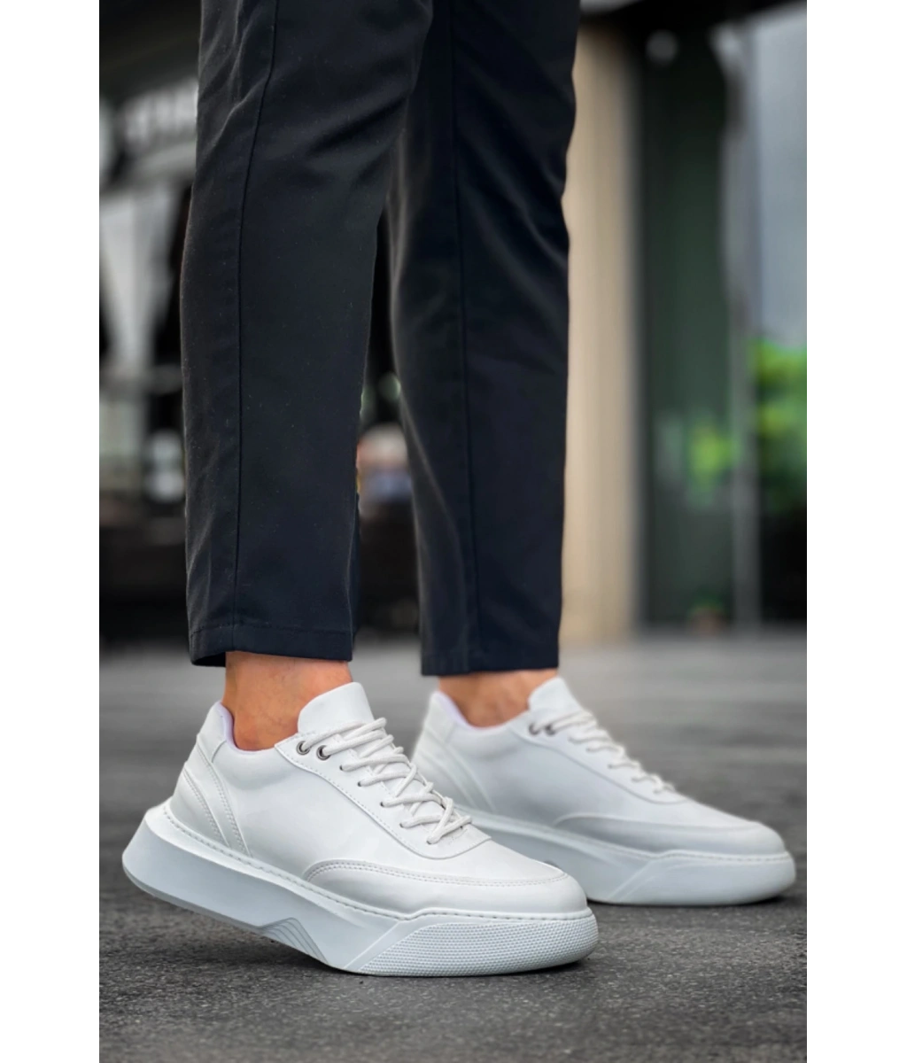 Shoecide Sb0354 Günlük Bağcıklı Erkek Yüksek Taban Beyaz Spor Ayakkabı