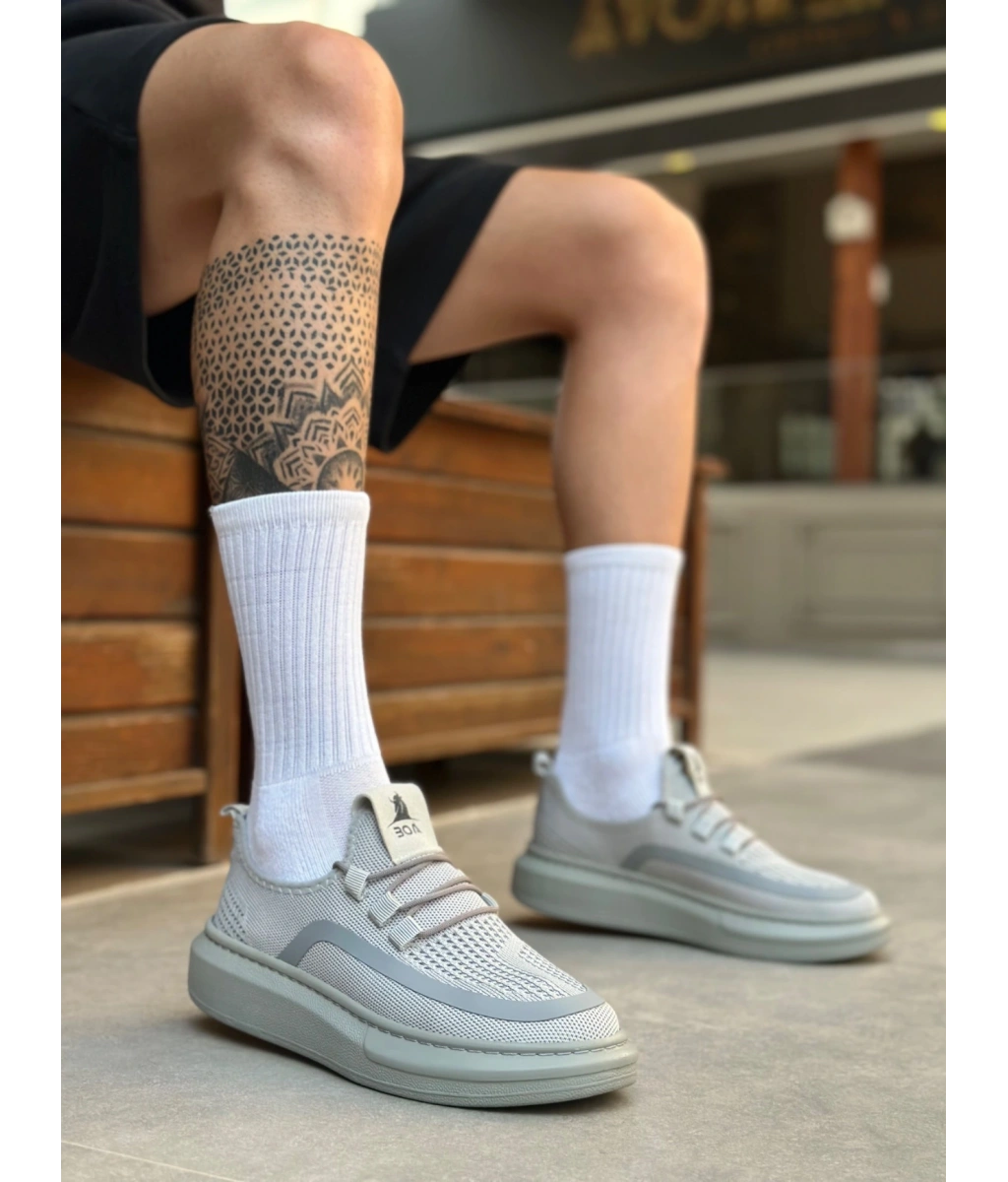 Shoecide Sb0375 Özel Örme Triko Tarz Gri Renk Spor Ayakkabı