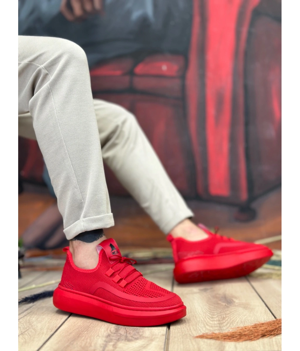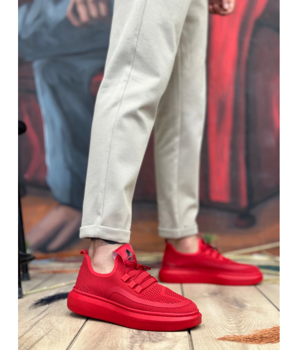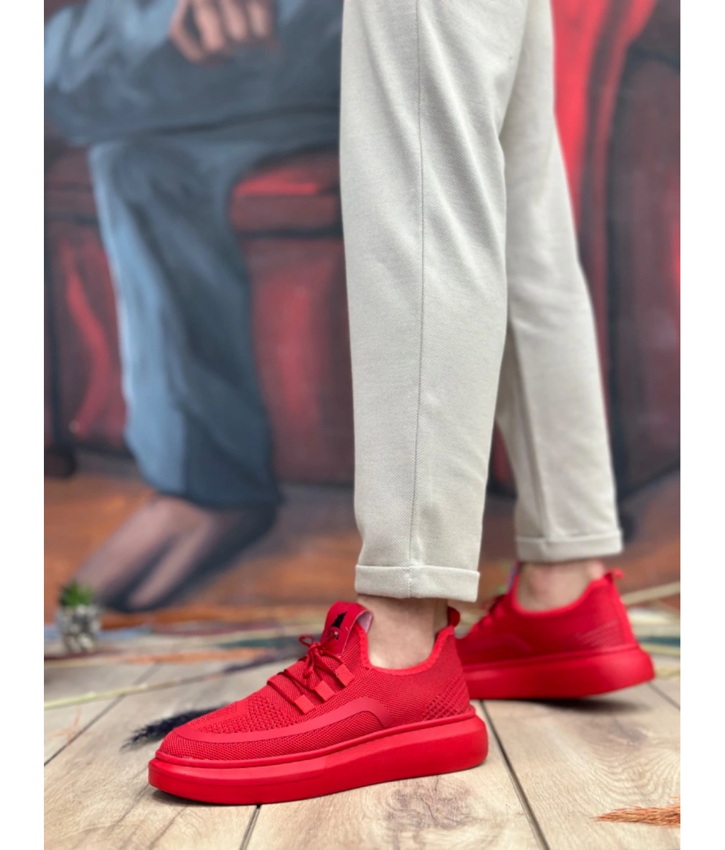 Shoecide Sb0375 Özel Örme Triko Tarz Kırmızı Renk Spor Ayakkabı