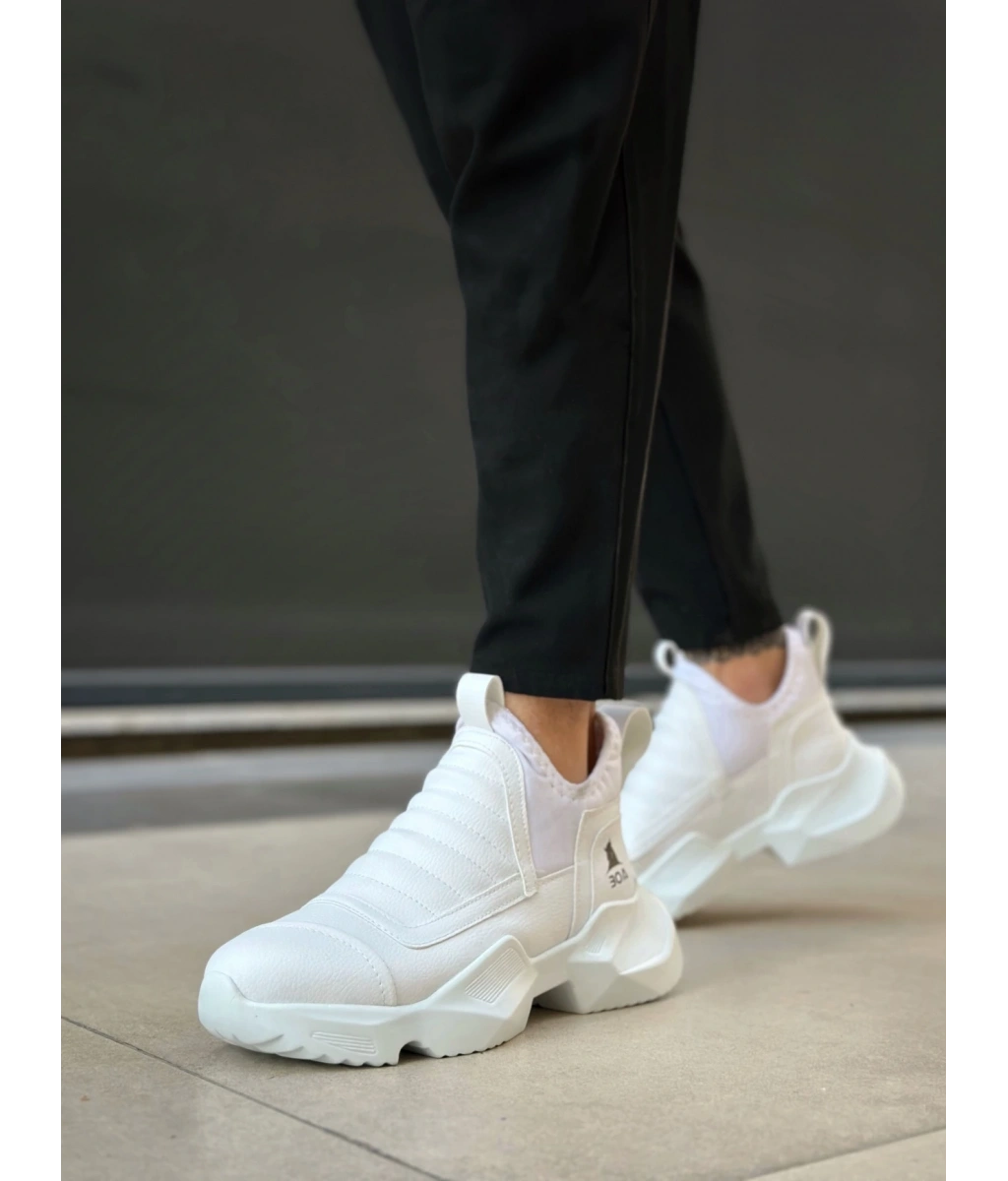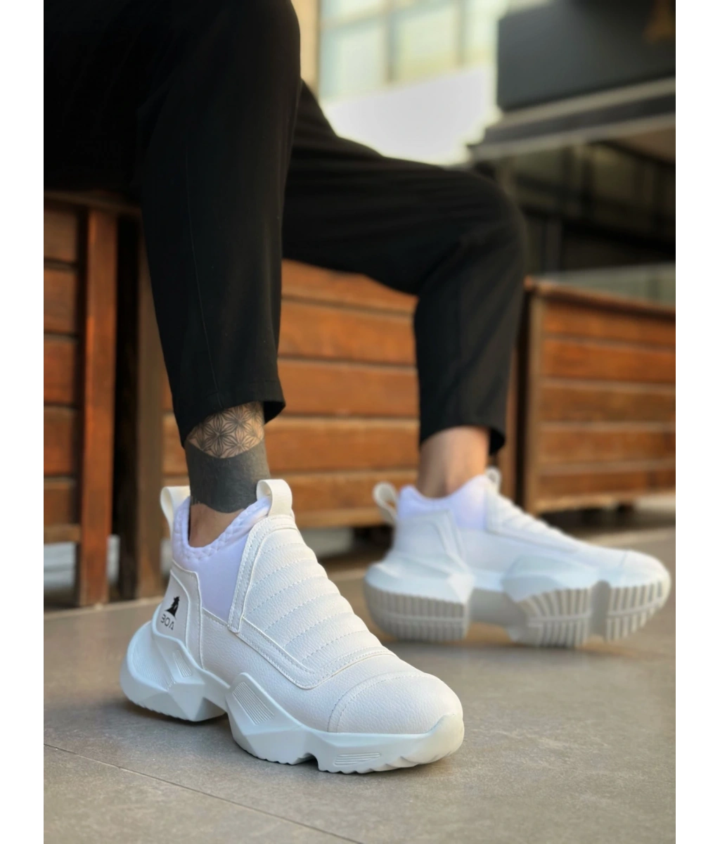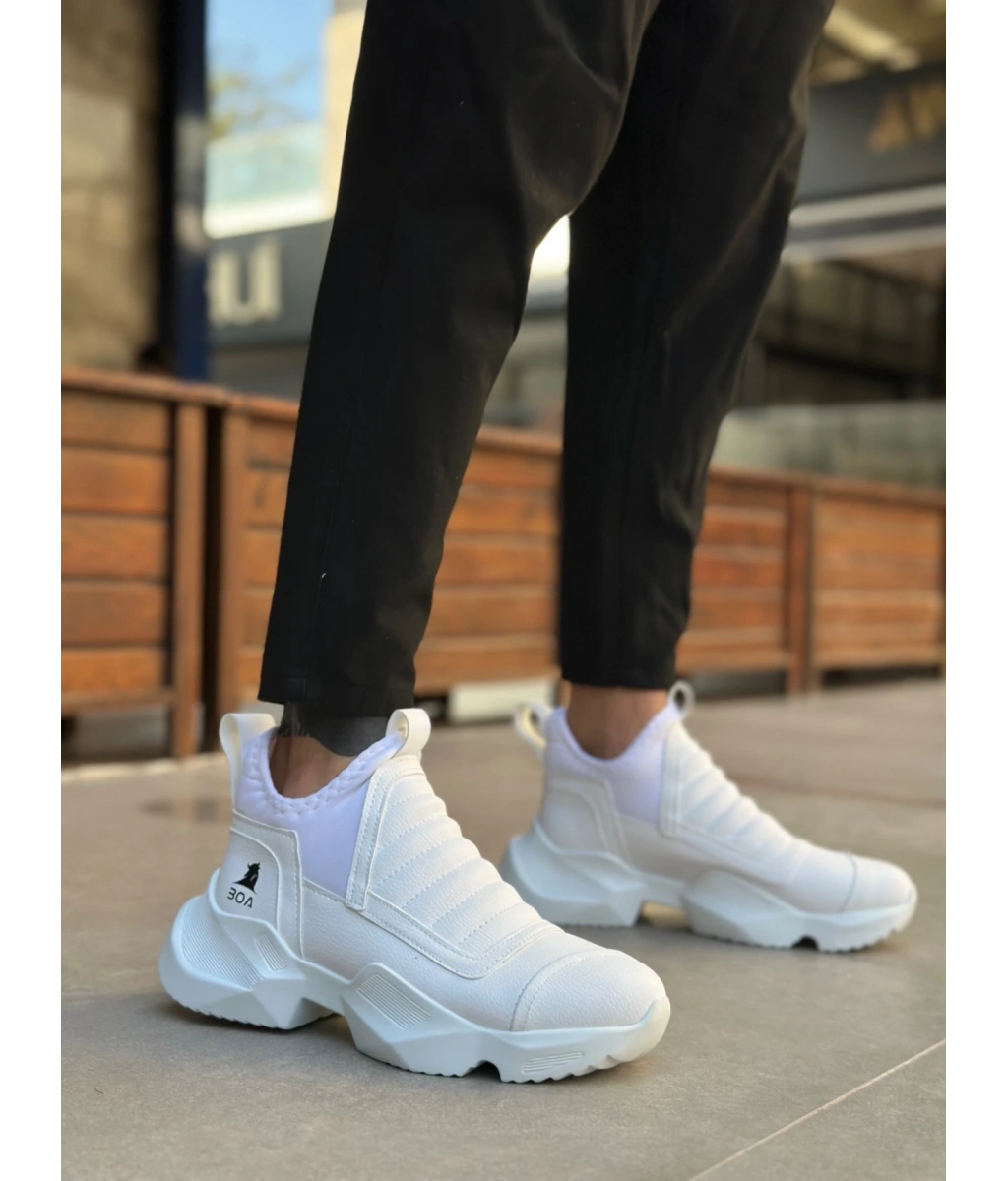 Shoecide Sb0401 Bağcıksız Rahat Kalın Taban Beyaz Erkek Spor Yarım Bilek Bot