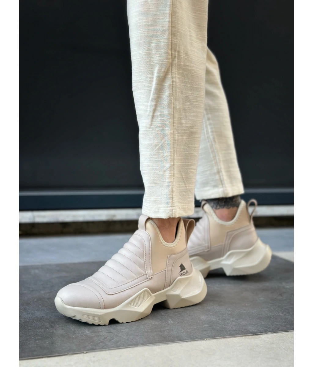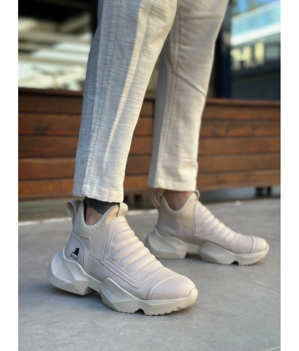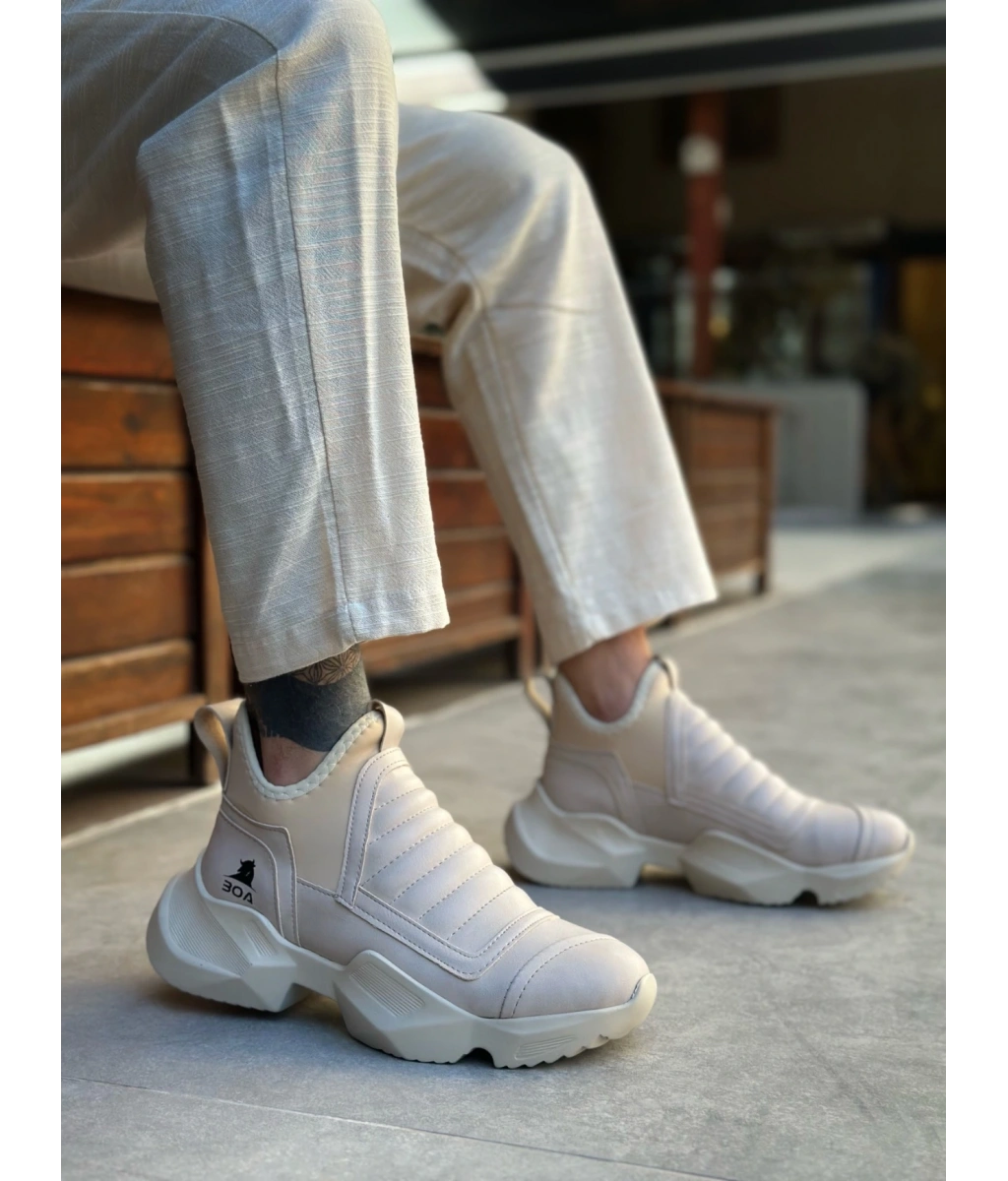 Shoecide Sb0401 Bağcıksız Rahat Yüksek Taban Krem Erkek Spor Yarım Bilek Bot