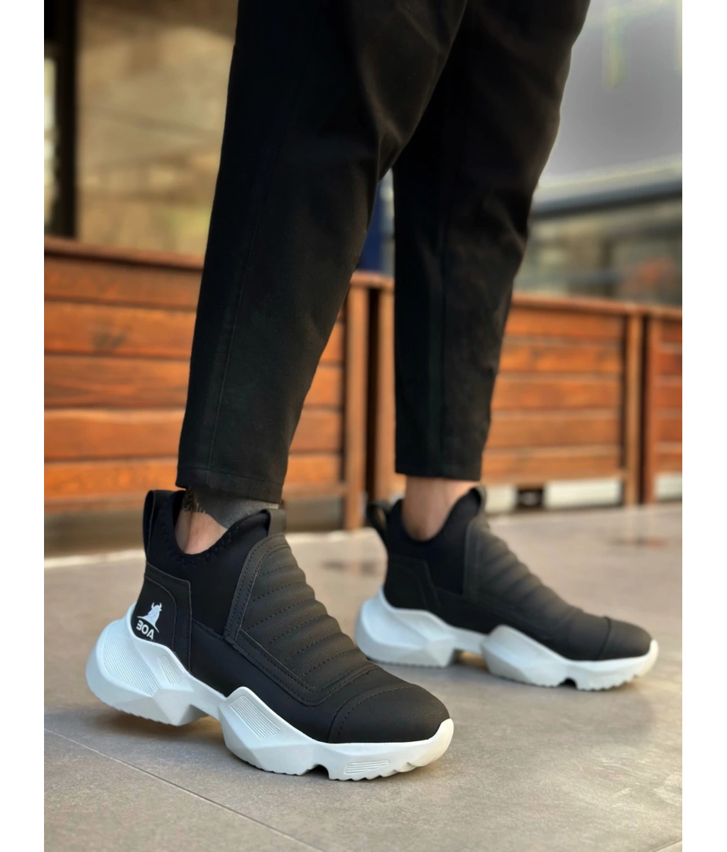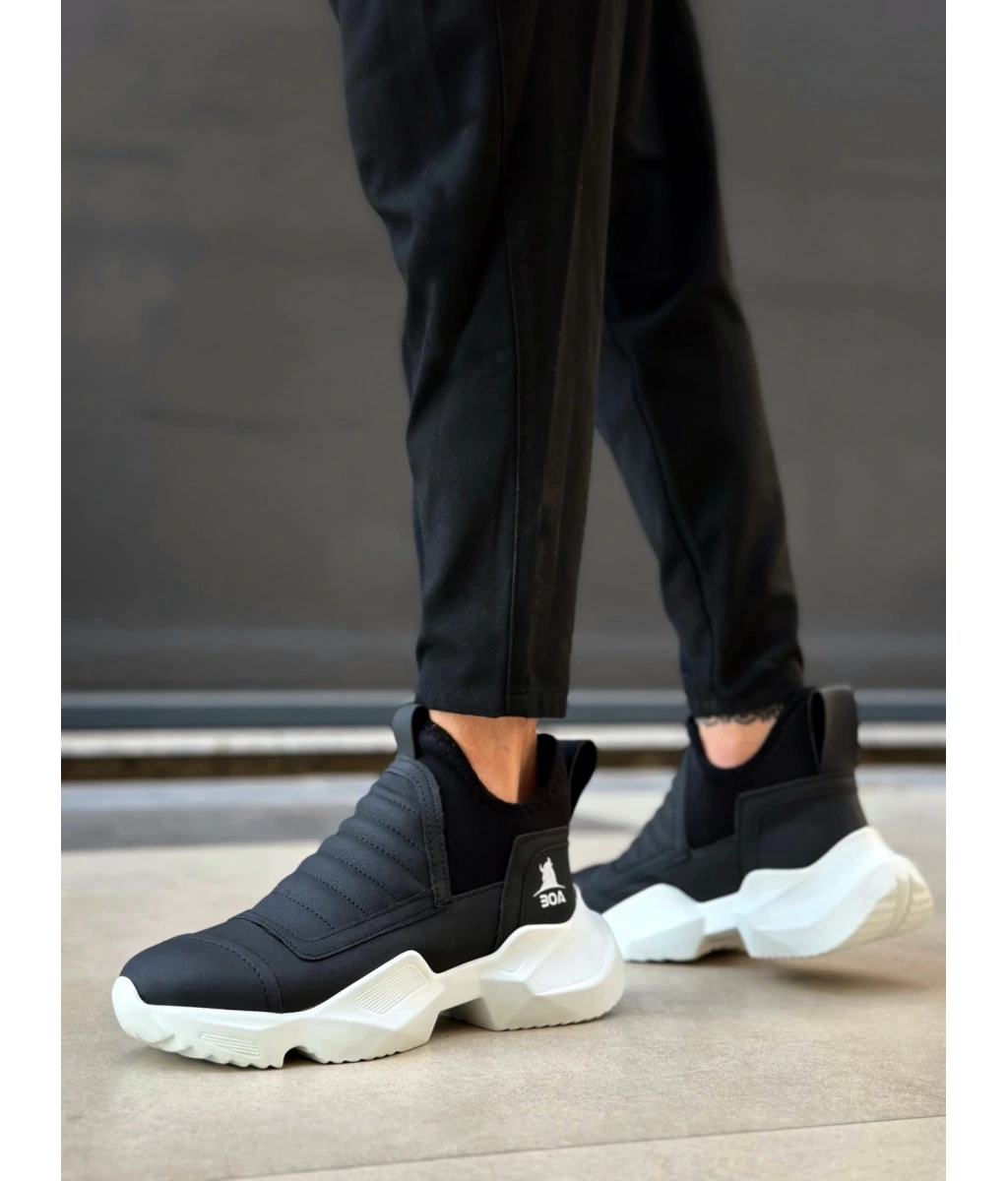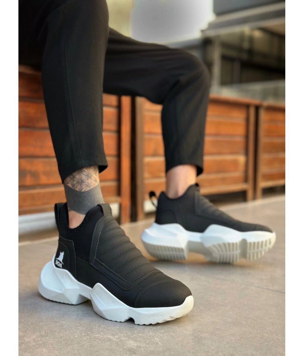 Shoecide Sb0401 Bağcıksız Rahat Yüksek Taban Siyah Erkek Spor Yarım Bilek Bot