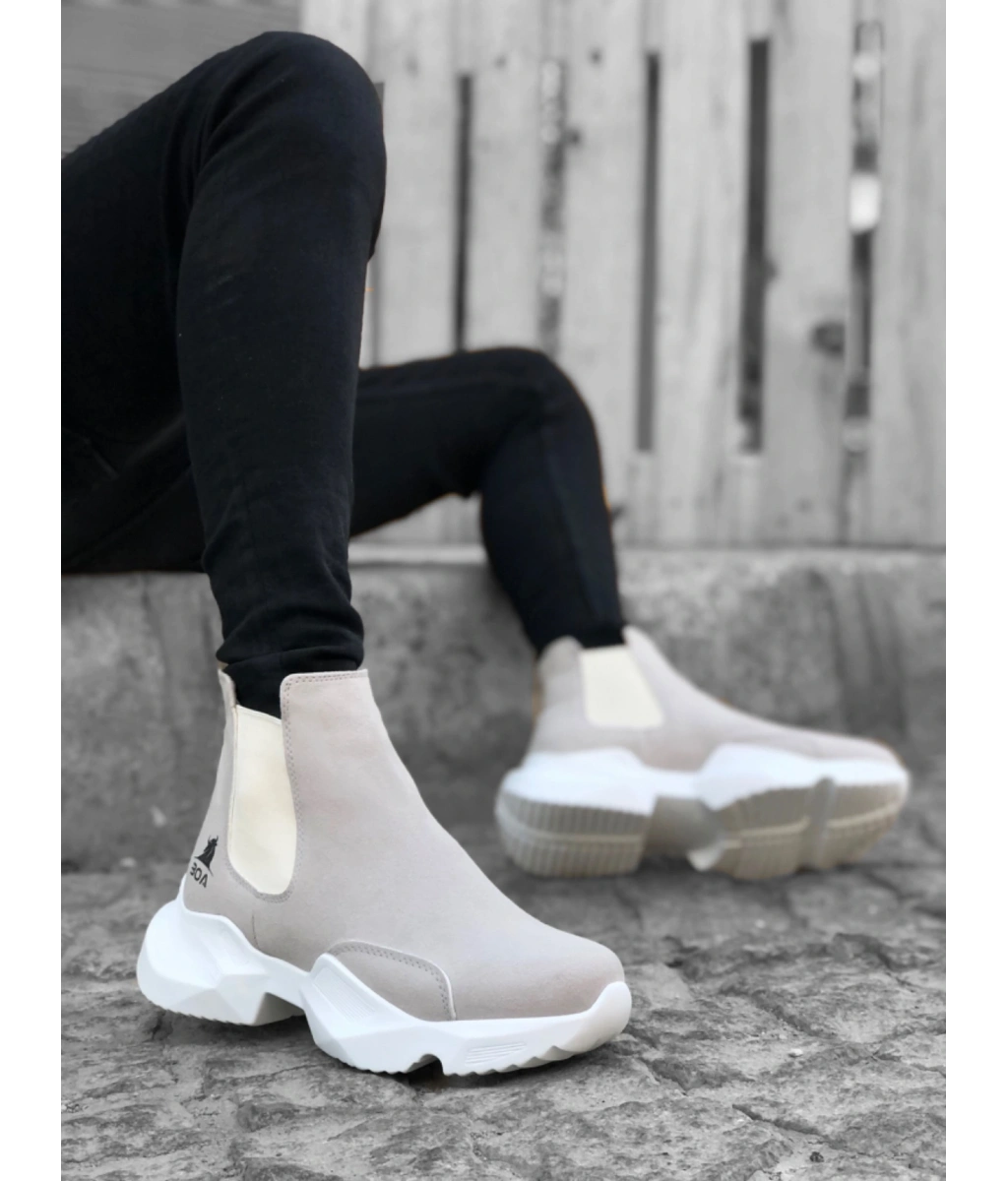 Shoecide Sb0713 Bağcıklı Süet Bej Yüksek Taban Erkek Tarz Spor Bot