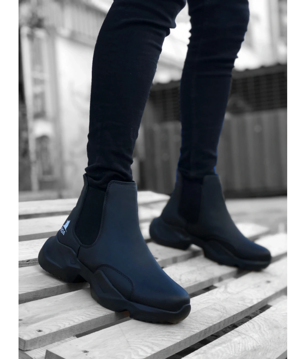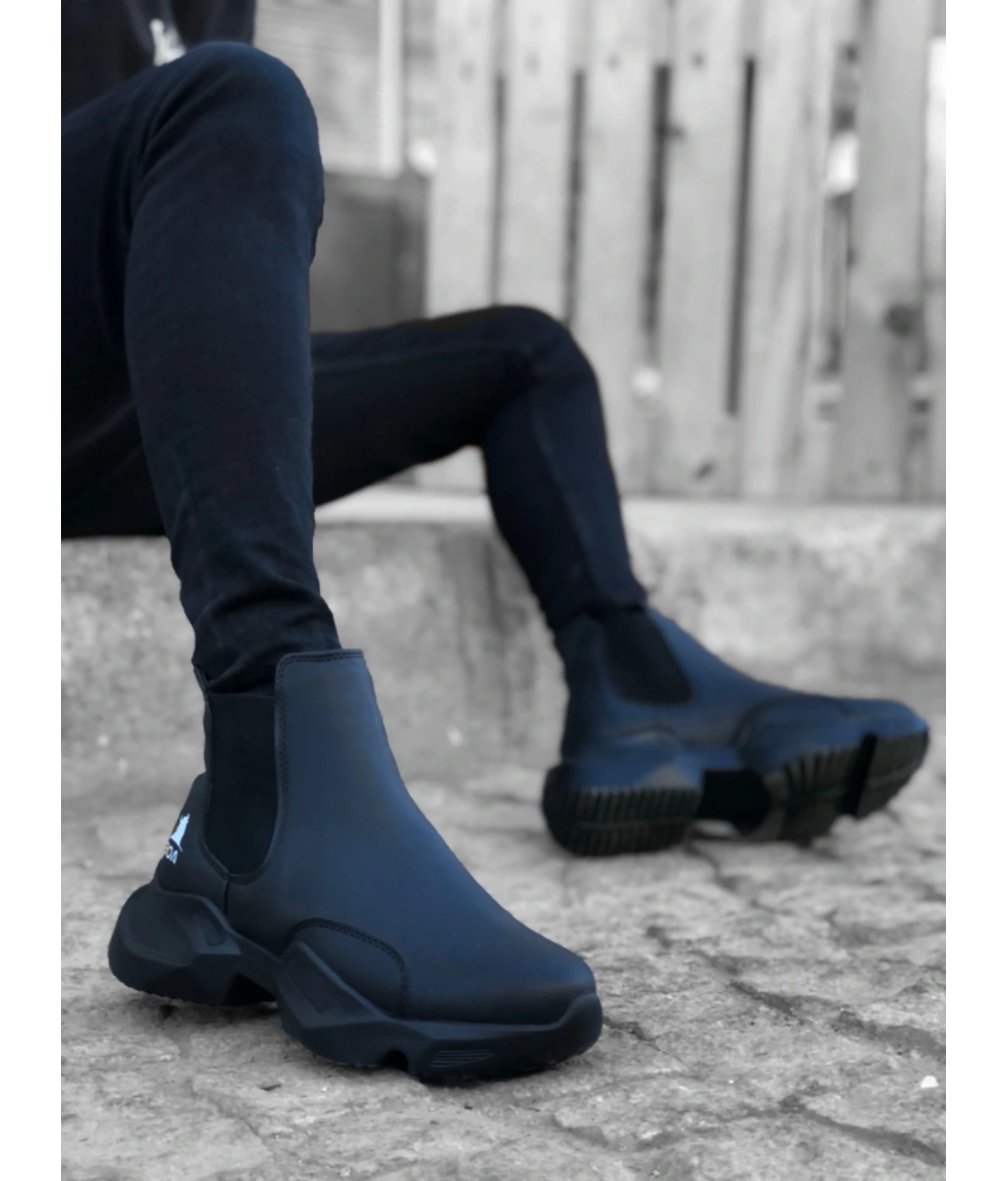 Shoecide Sb0444 Bağcıksız Rahat Yüksek Taban Siyah Erkek Spor Yarım Bilek Bot