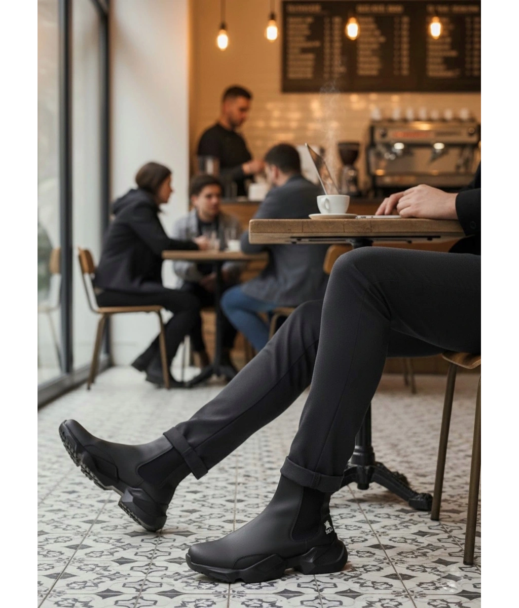 Shoecide Sb0401 Bağcıksız Rahat Yüksek Taban Siyah Erkek Spor Yarım Bilek Bot