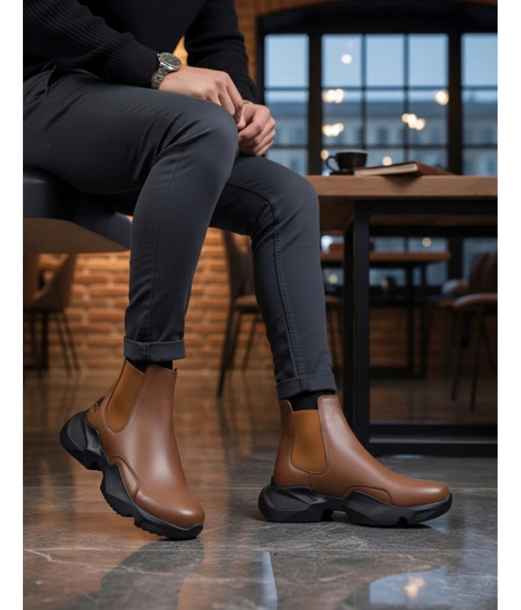 Shoecide Sb0550 İçi Kürklü Bağcıklı Taba Krem Taban Erkek Tarz Spor Bot
