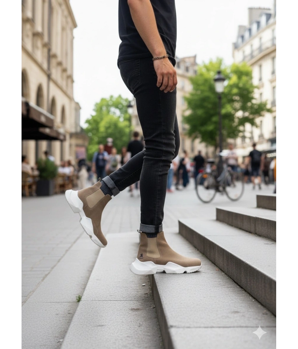 Shoecide Sb0444 Bağcıksız Rahat Yüksek Taban Vizon Erkek Spor Yarım Bilek Bot