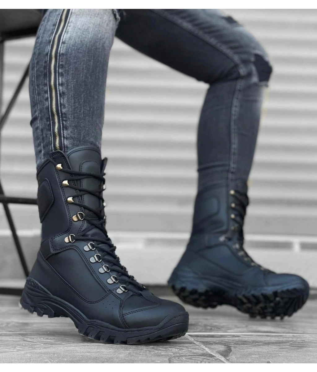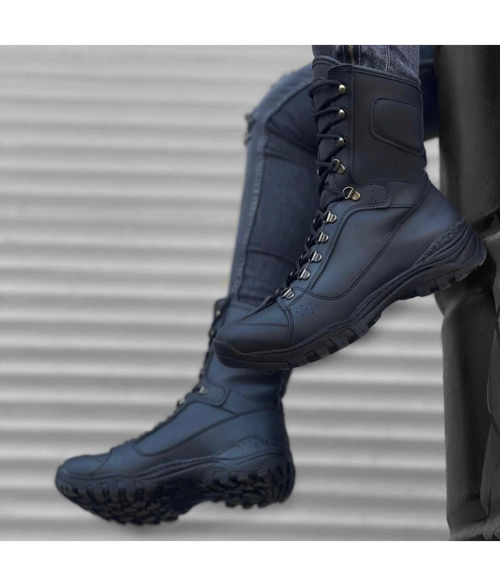 Shoecide Sb0605 Bağcıklı Siyah Cilt Askeri Postal Bot